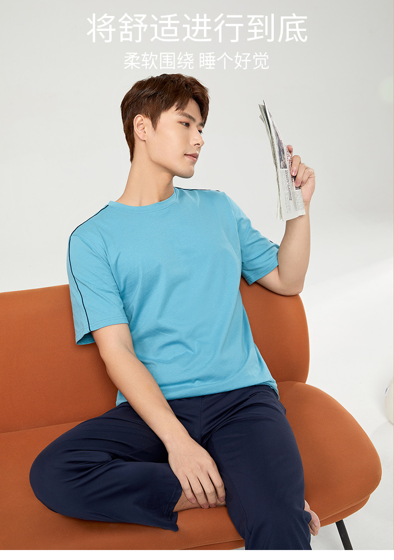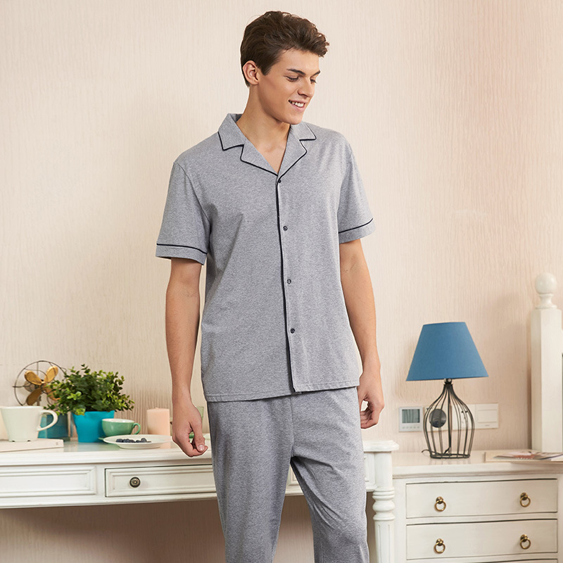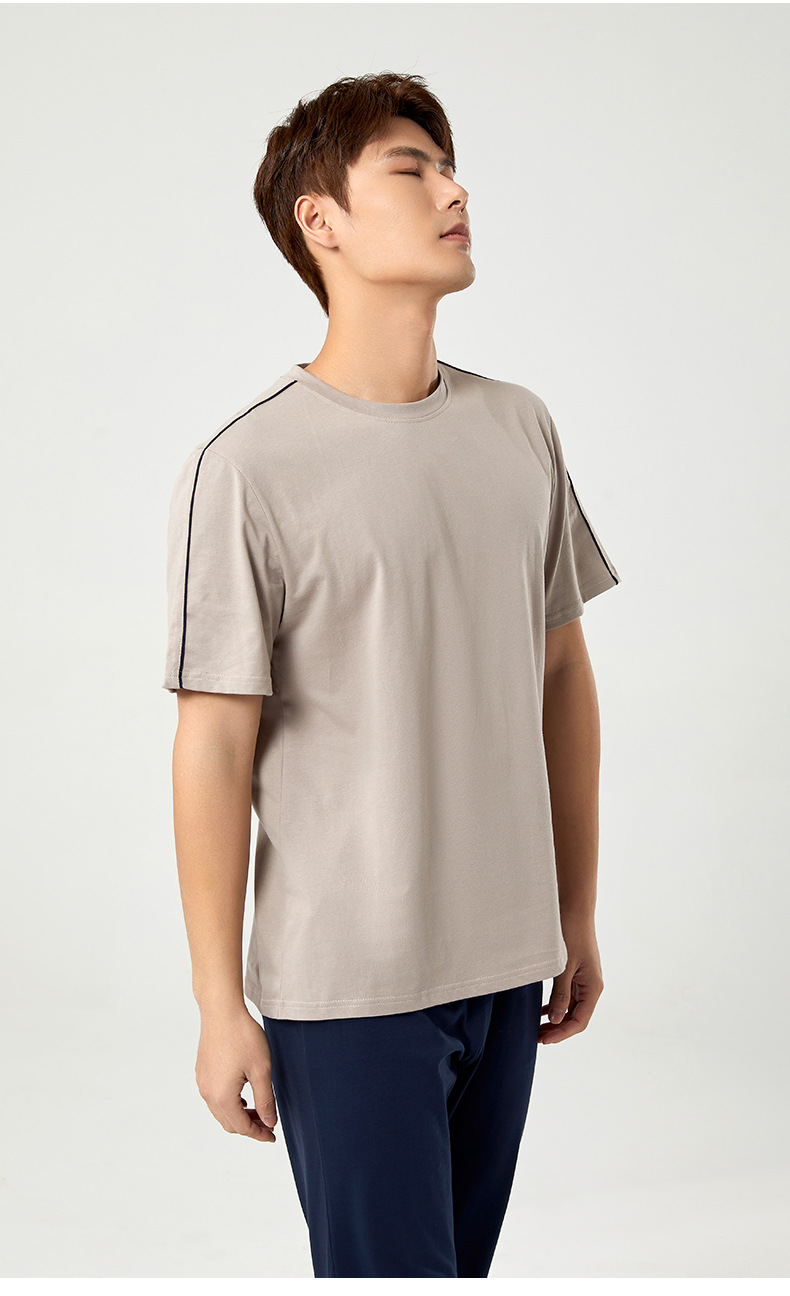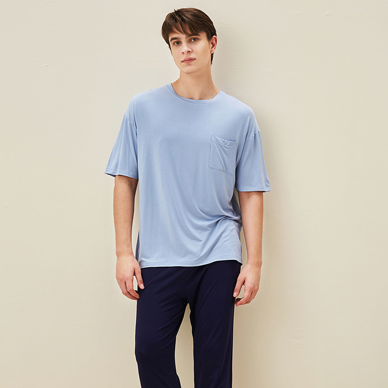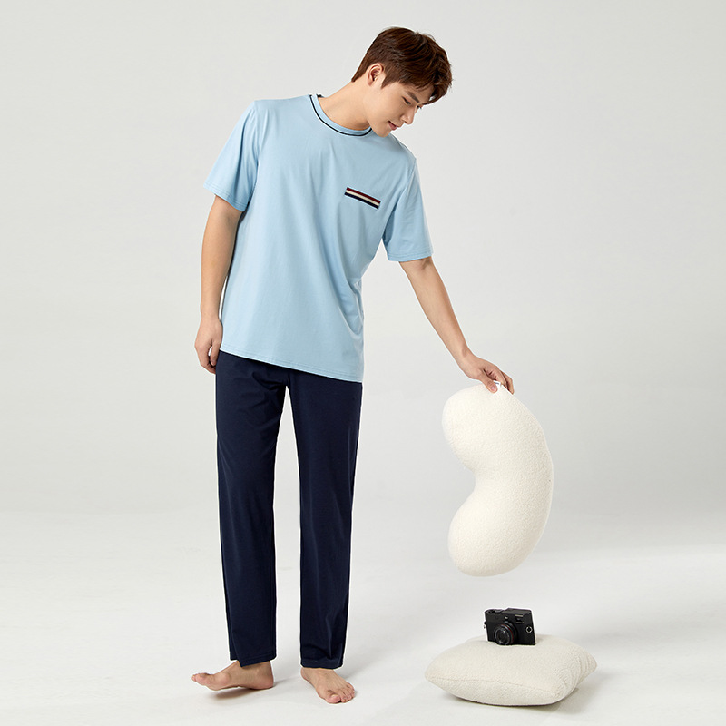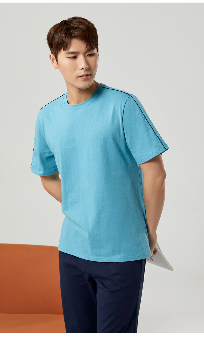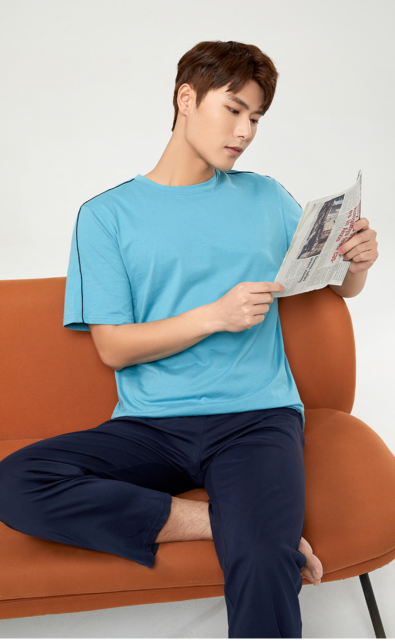 【다양한 스타일과 색상】남성용 잠옷 봄여름 반팔 긴바지 라운드넥 단색 홈웨어 세트(외출복으로도 가능)스토어 가기