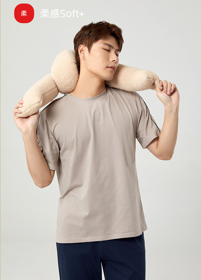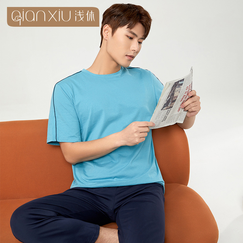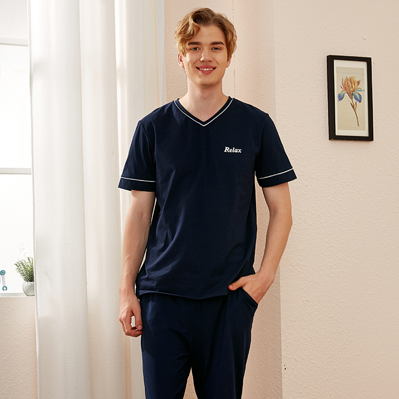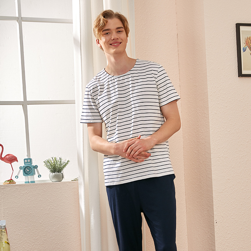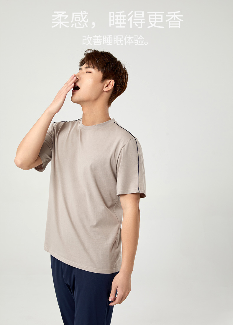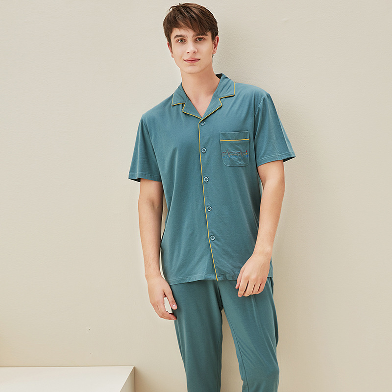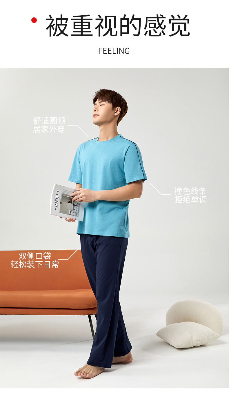 【다양한 스타일과 색상】남성용 잠옷 봄여름 반팔 긴바지 라운드넥 단색 홈웨어 세트(외출복으로도 가능)스토어 가기