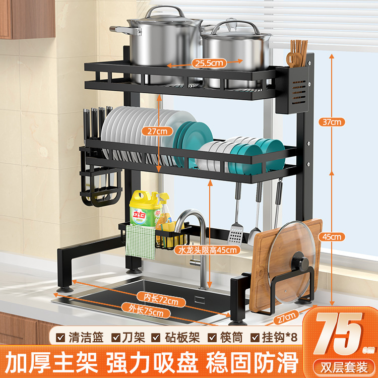 • [더블 레이어 75cm] 여분의 두꺼운 드레인 랙 + 후크 * 8 + 드레인 세트