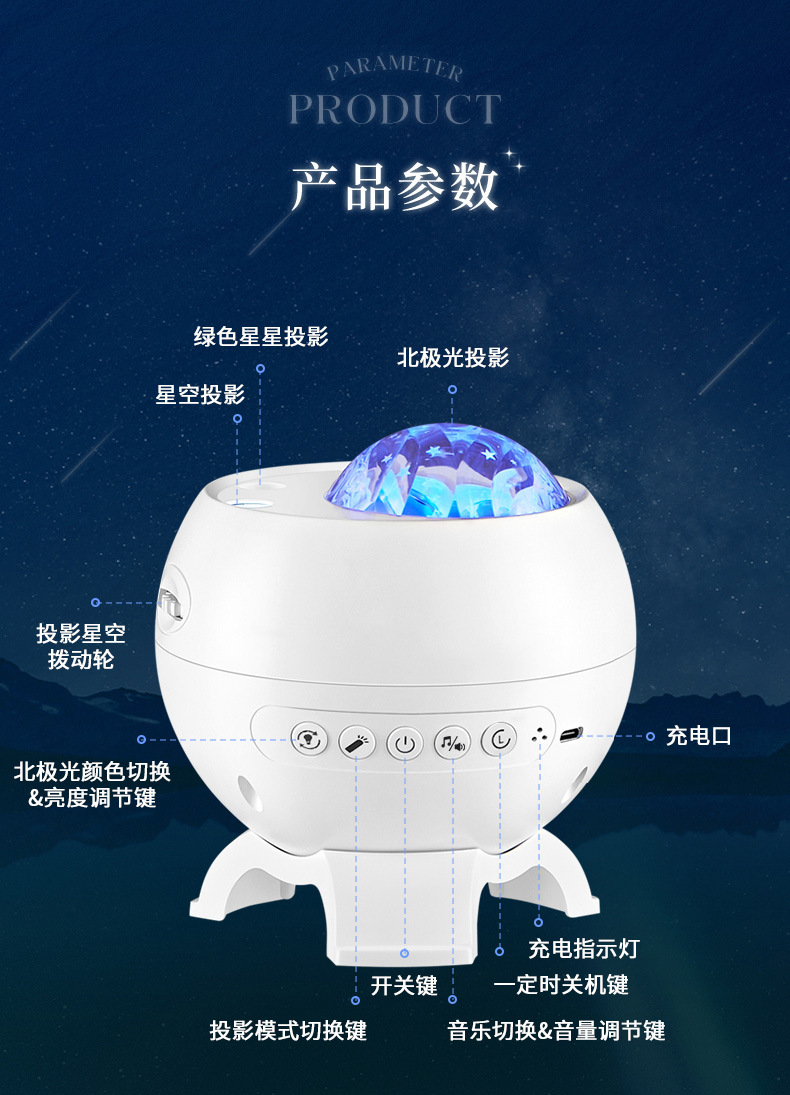오로라 라이트 물 리플 블루투스 스피커 침실 스타 프로젝션 라이트 분위기 조명 야간 조명 소녀 생일 선물
