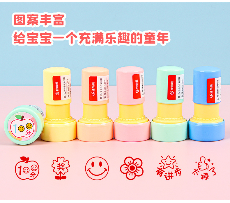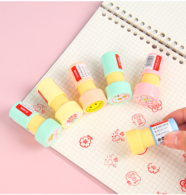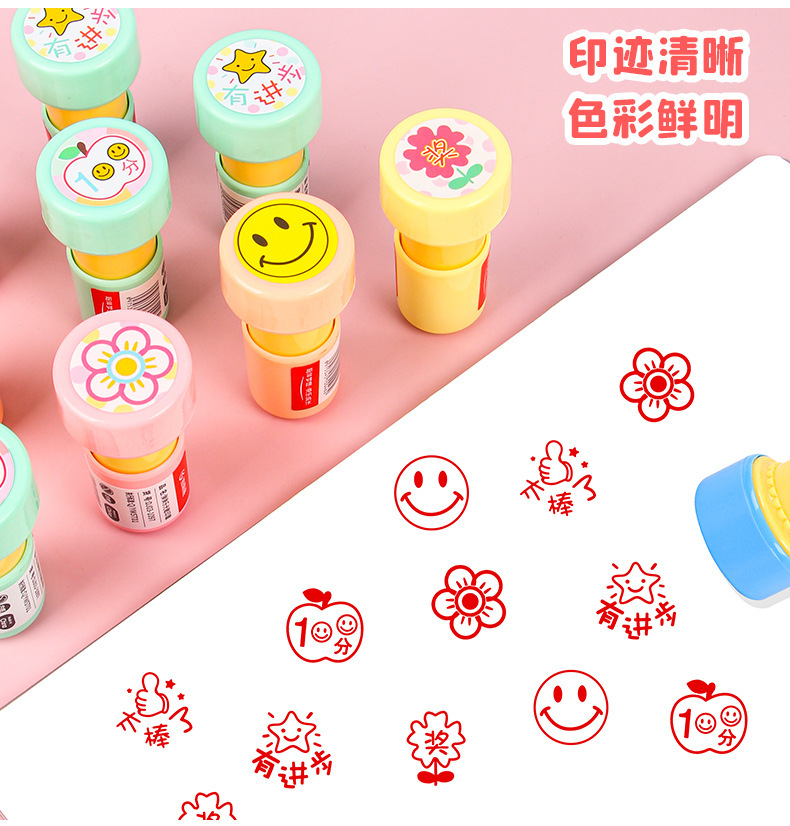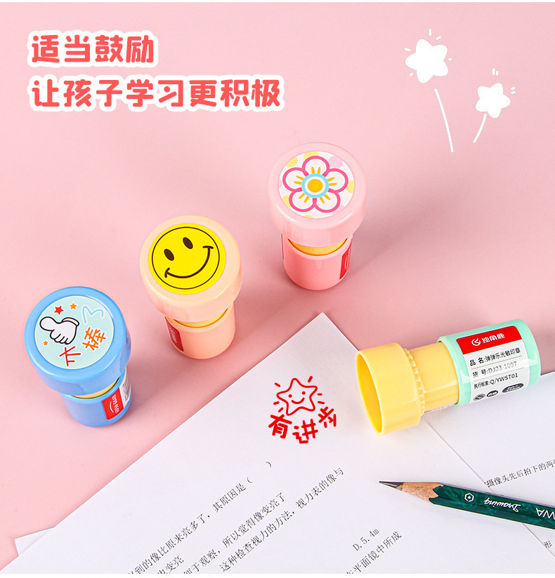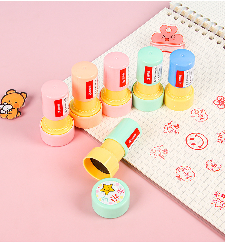 창의적인 초등학생 보상 스탬프, 유치원 교사가 아이들에게 작은 선물을 보내며 격려하는 스탬프, 교사가 교재에 코멘트를 달아주는 스탬프