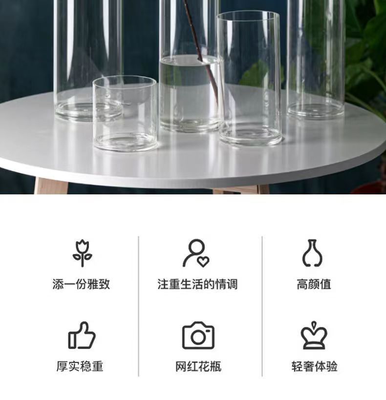 투명한 직선형 유리 꽃병, 고급스러운 데스크탑 거실 식탁 꽃꽂이 어항 유리섬유 수경재배 용기스토어 가기