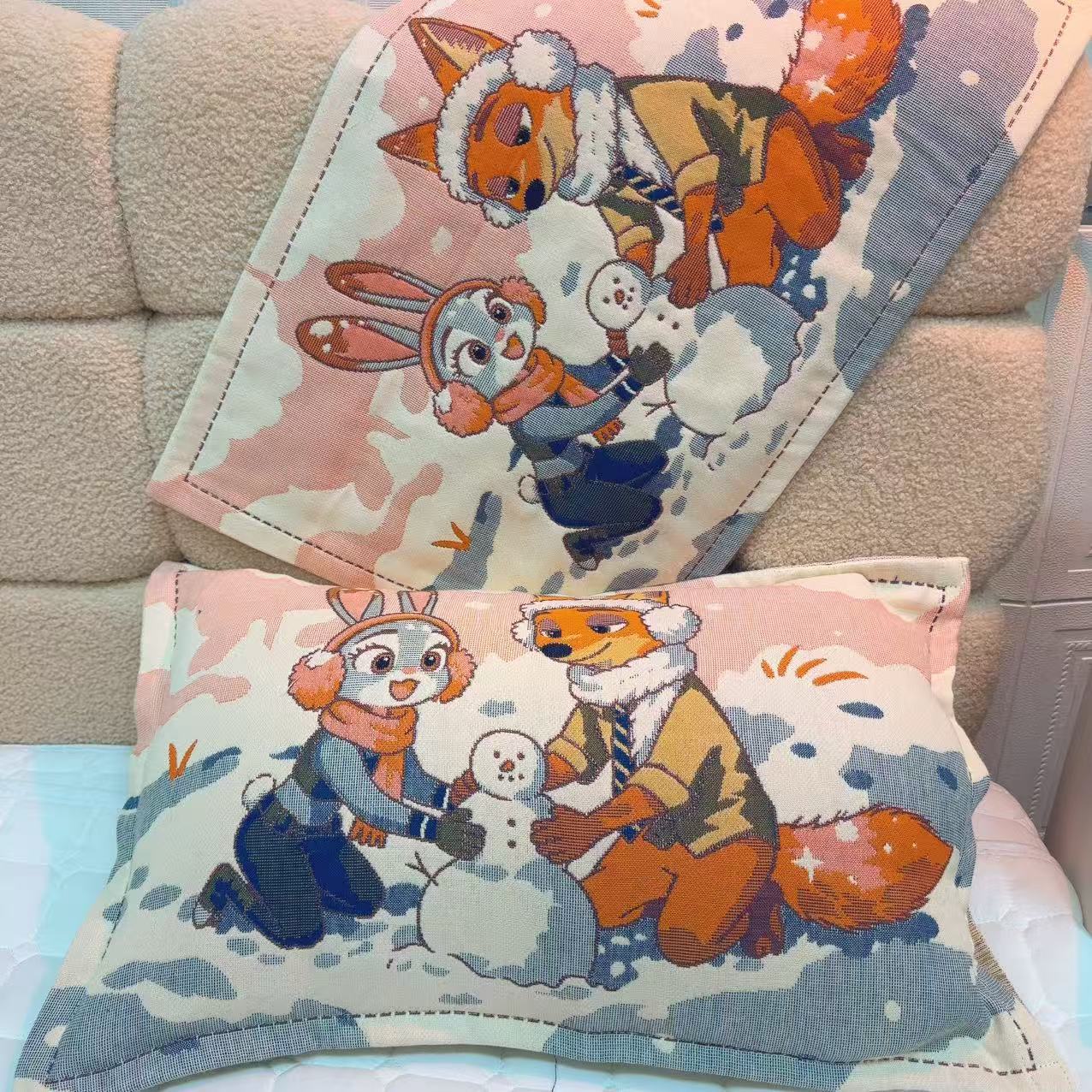 면 거즈 5 층 어린이 베갯잇 40 × 60 한 쌍의 만화 애니메이션 증가 기계 빨 사계절 유니버설