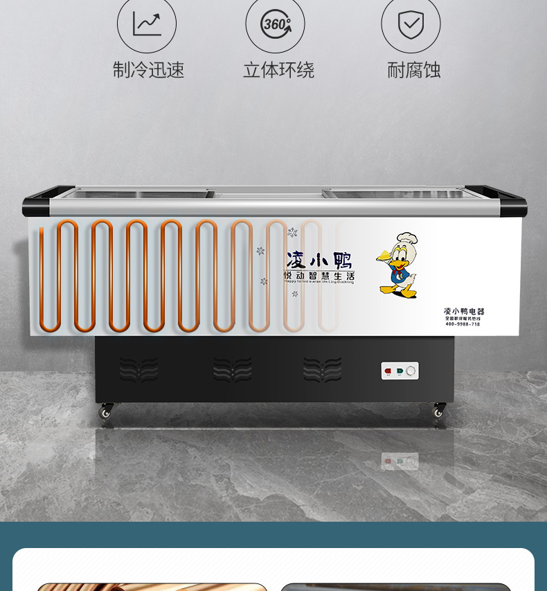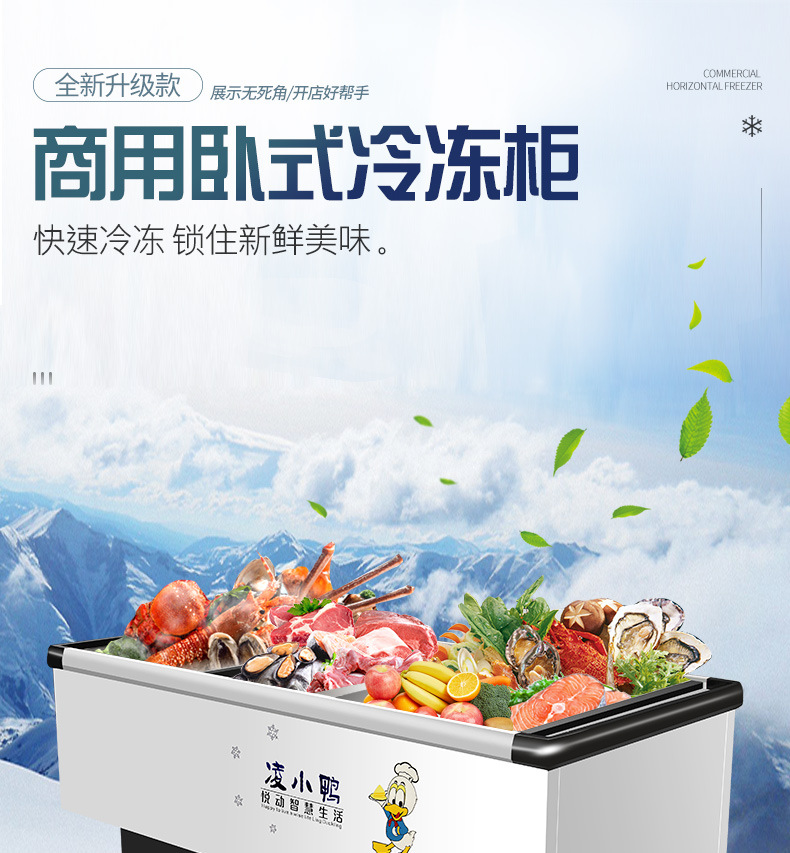 대외 무역 평면 섬 캐비닛 디스플레이 냉동고 상업용 대용량 냉동 수평 투명 유리 슈퍼마켓 냉장 디스플레이 캐비닛