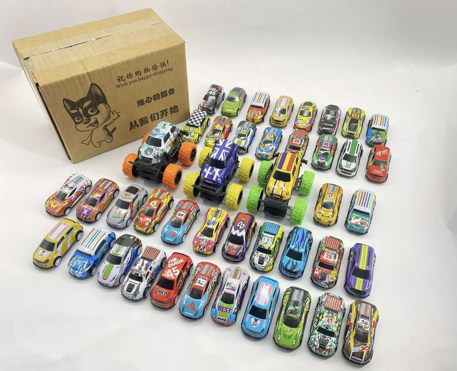 回力车5.5cm随机单款12色混装,装箱2000只,单只OPP袋装箱1500只。