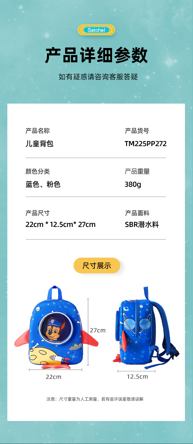 Paw Patrol 어린이 학교 가방 배낭 소년과 소녀 유치원 학교 배낭 초경량 척추 보호 학교 가방 만화 귀여운스토어 가기