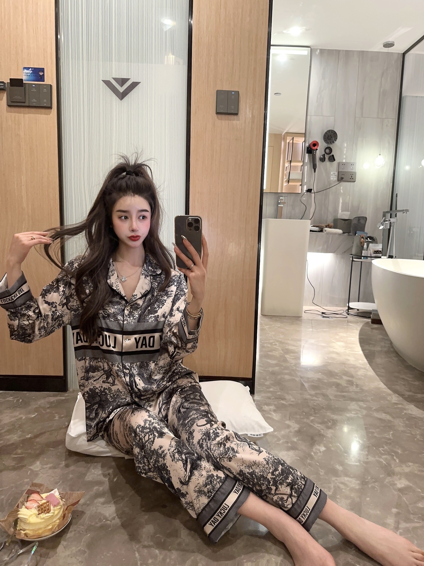 YASE [정글 시크릿] 커플 잠옷 25 신작 봄, 가을 D 홈 라이트 럭셔리 수묵화 홈웨어 세트스토어 가기