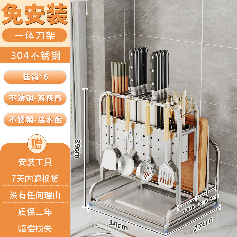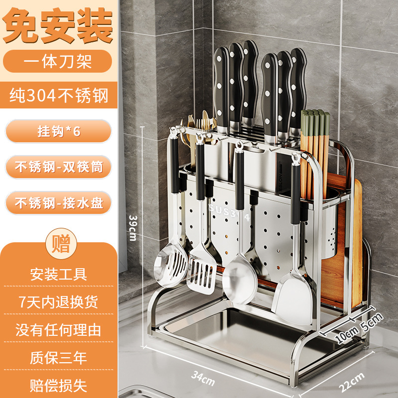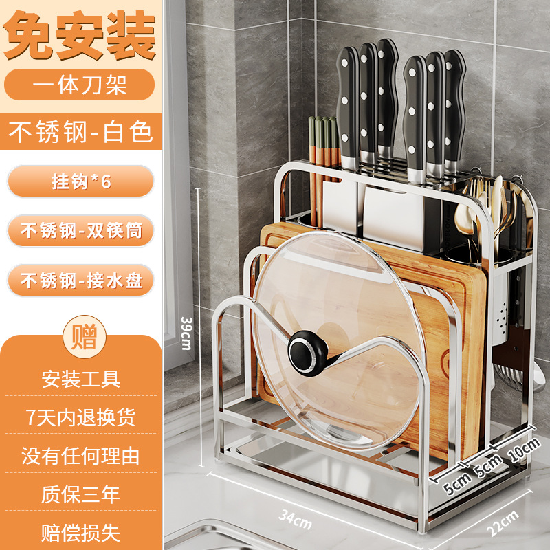 304 스테인레스 스틸 나이프 홀더 주방 수납 랙 냄비 커버 랙 다기능 스토리지 랙 도마 젓가락 나이프 홀더 통합스토어 가기