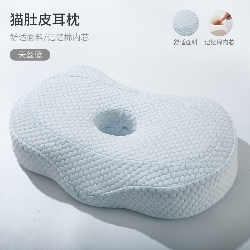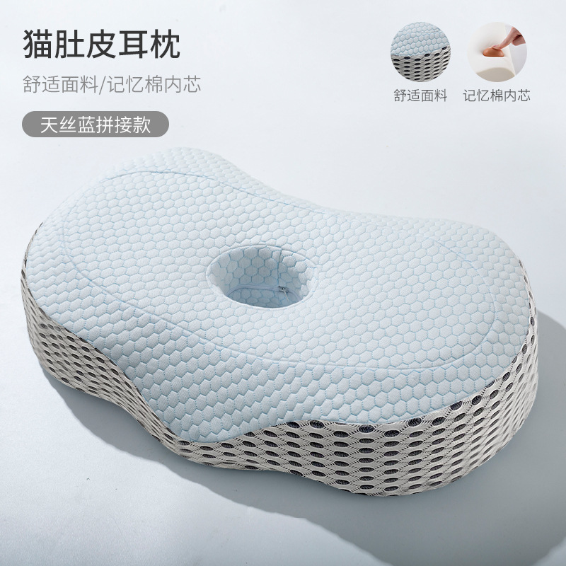 구멍이있는 메모리 폼 베개 단일 구멍 귀 베개 없음 압력 귀 경추 베개 가정용 측면 수면 메모리 베개 귀와 목 보호 베개 여름스토어 가기