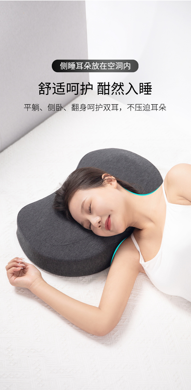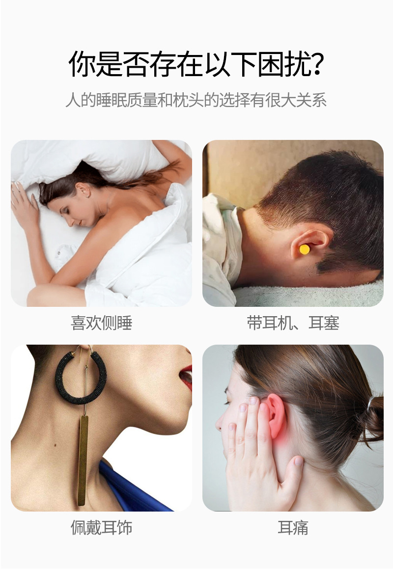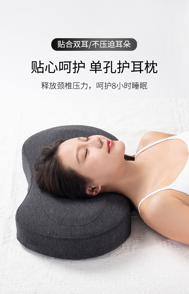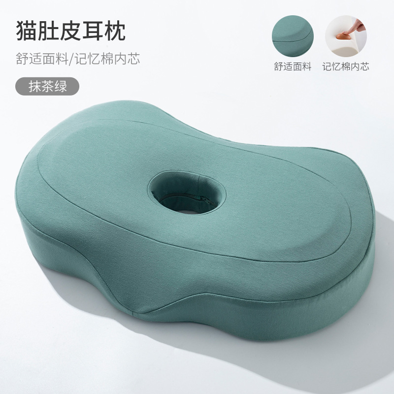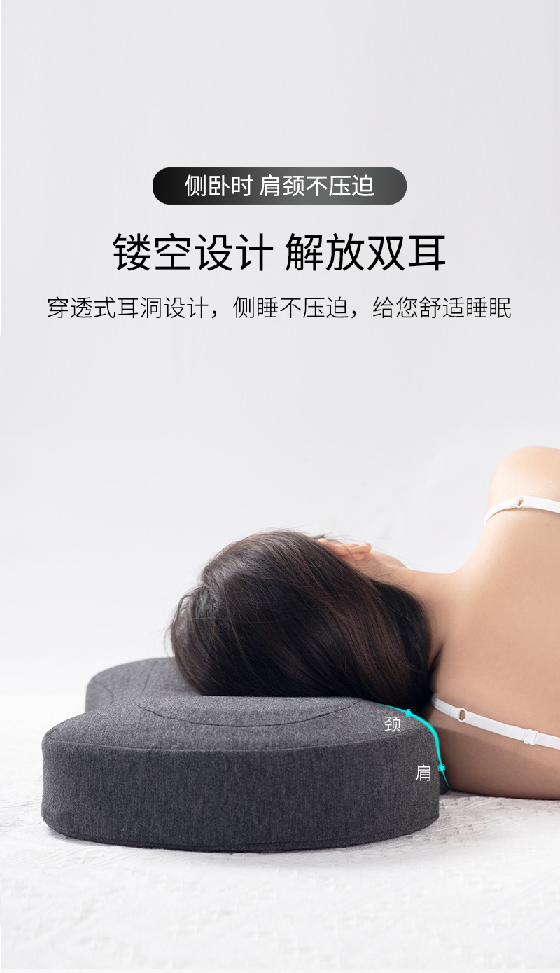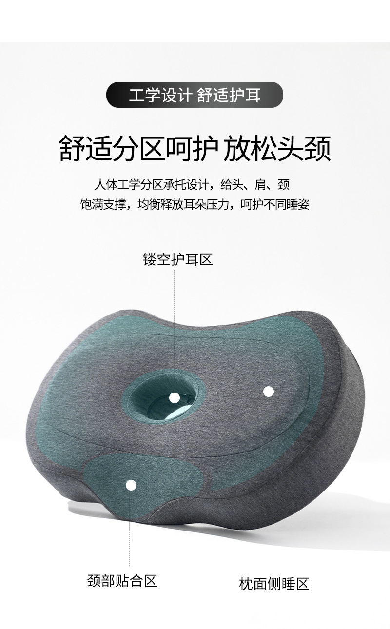 구멍이있는 메모리 폼 베개 단일 구멍 귀 베개 없음 압력 귀 경추 베개 가정용 측면 수면 메모리 베개 귀와 목 보호 베개 여름