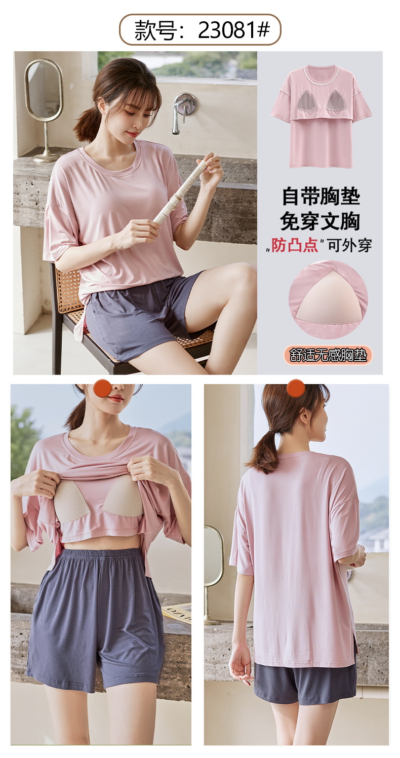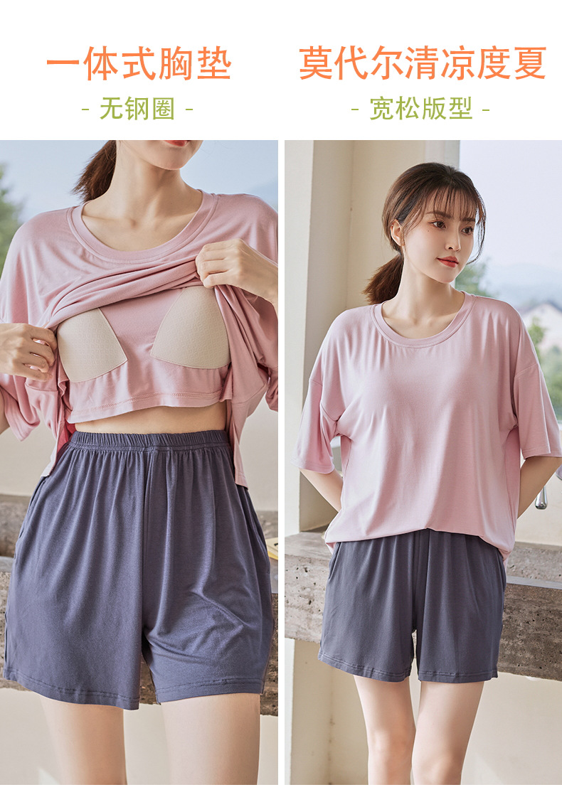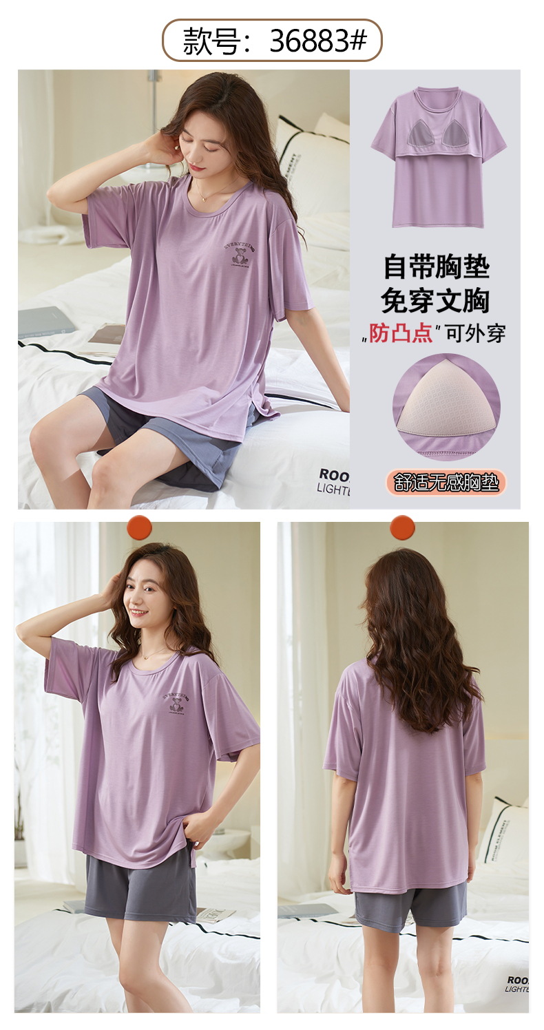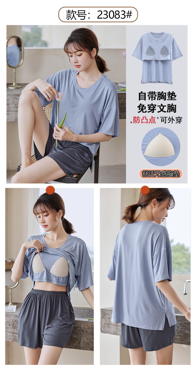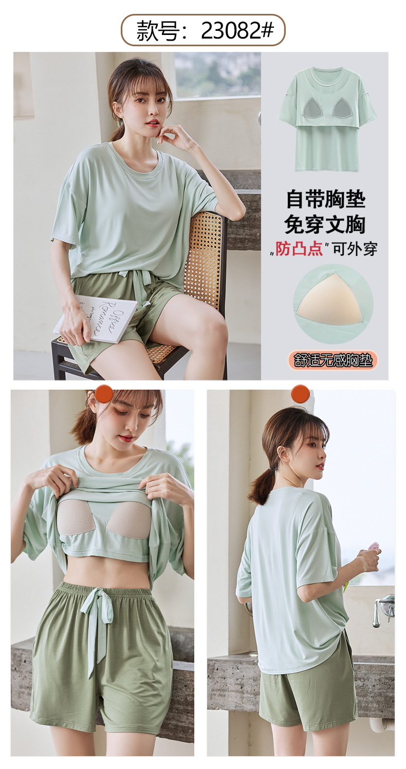 가슴 패드 짧은 소매와 얇은 잠옷 여성의 여름 모달 외부 편안함 플러스 사이즈 가정 의류 세트 도매 착용 할 수 있습니다스토어 가기
