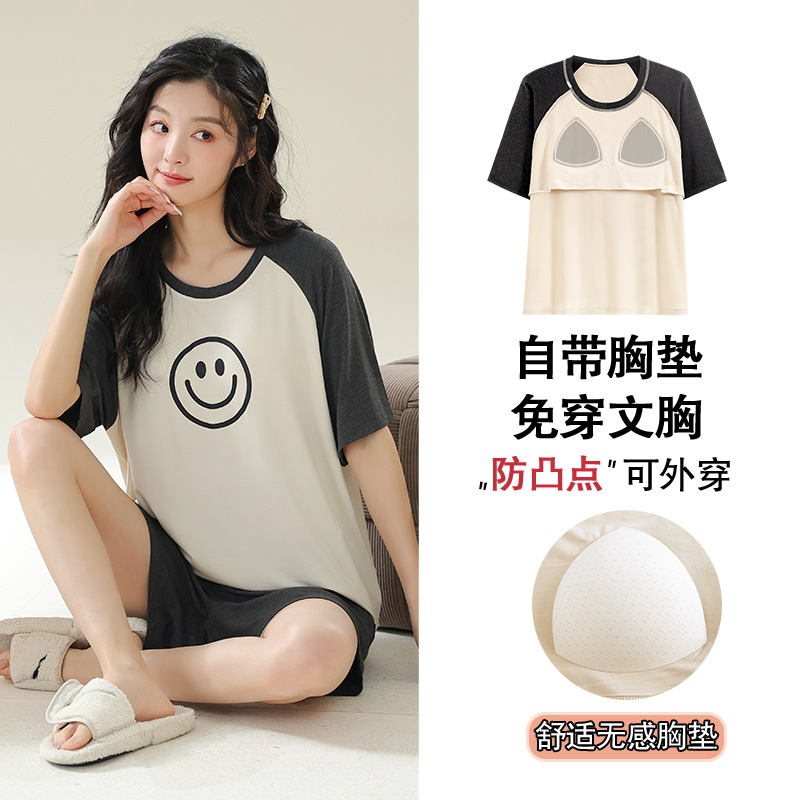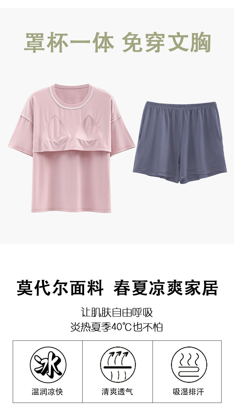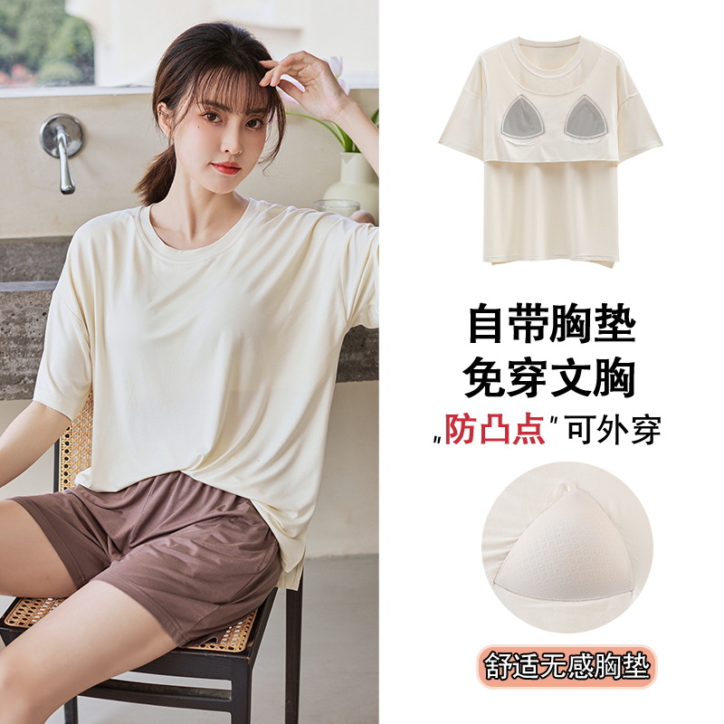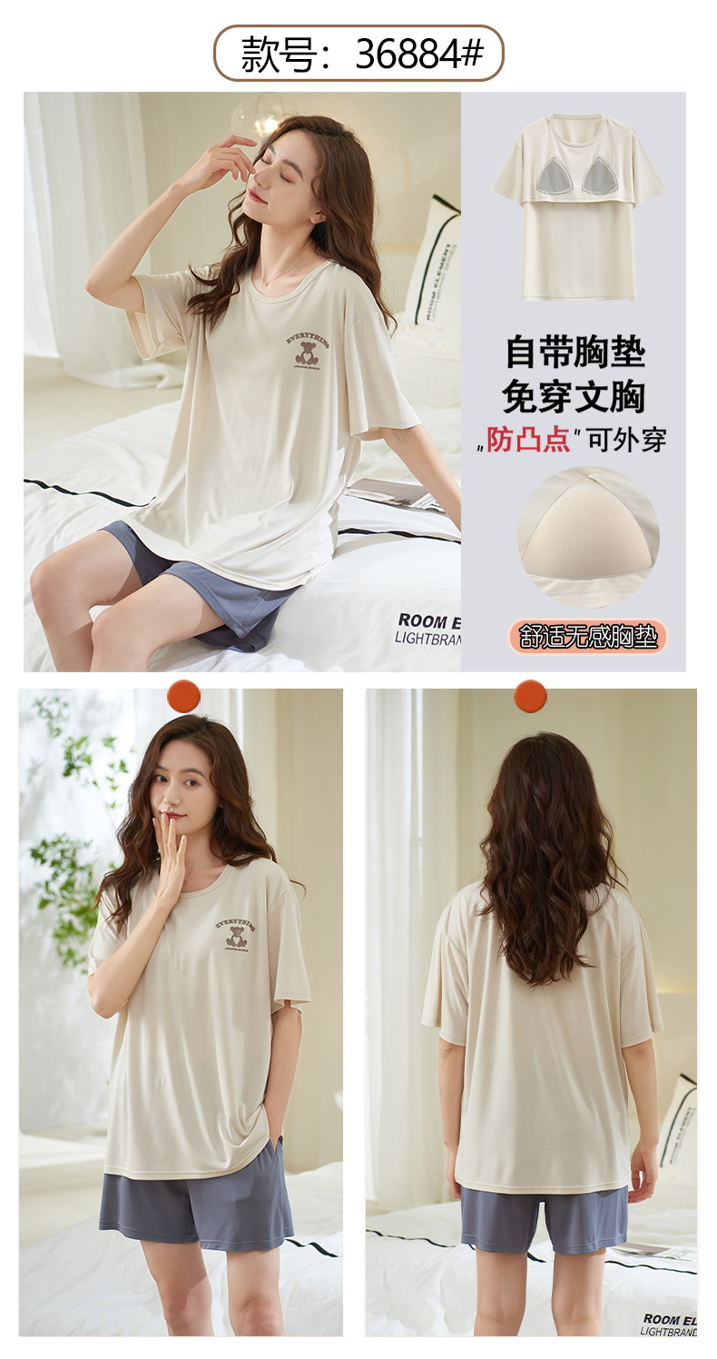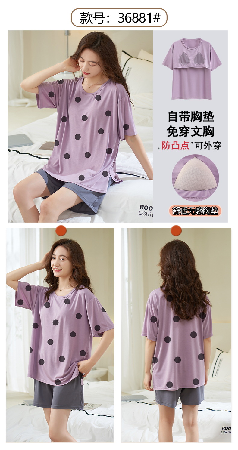 가슴 패드 짧은 소매와 얇은 잠옷 여성의 여름 모달 외부 편안함 플러스 사이즈 가정 의류 세트 도매 착용 할 수 있습니다스토어 가기
