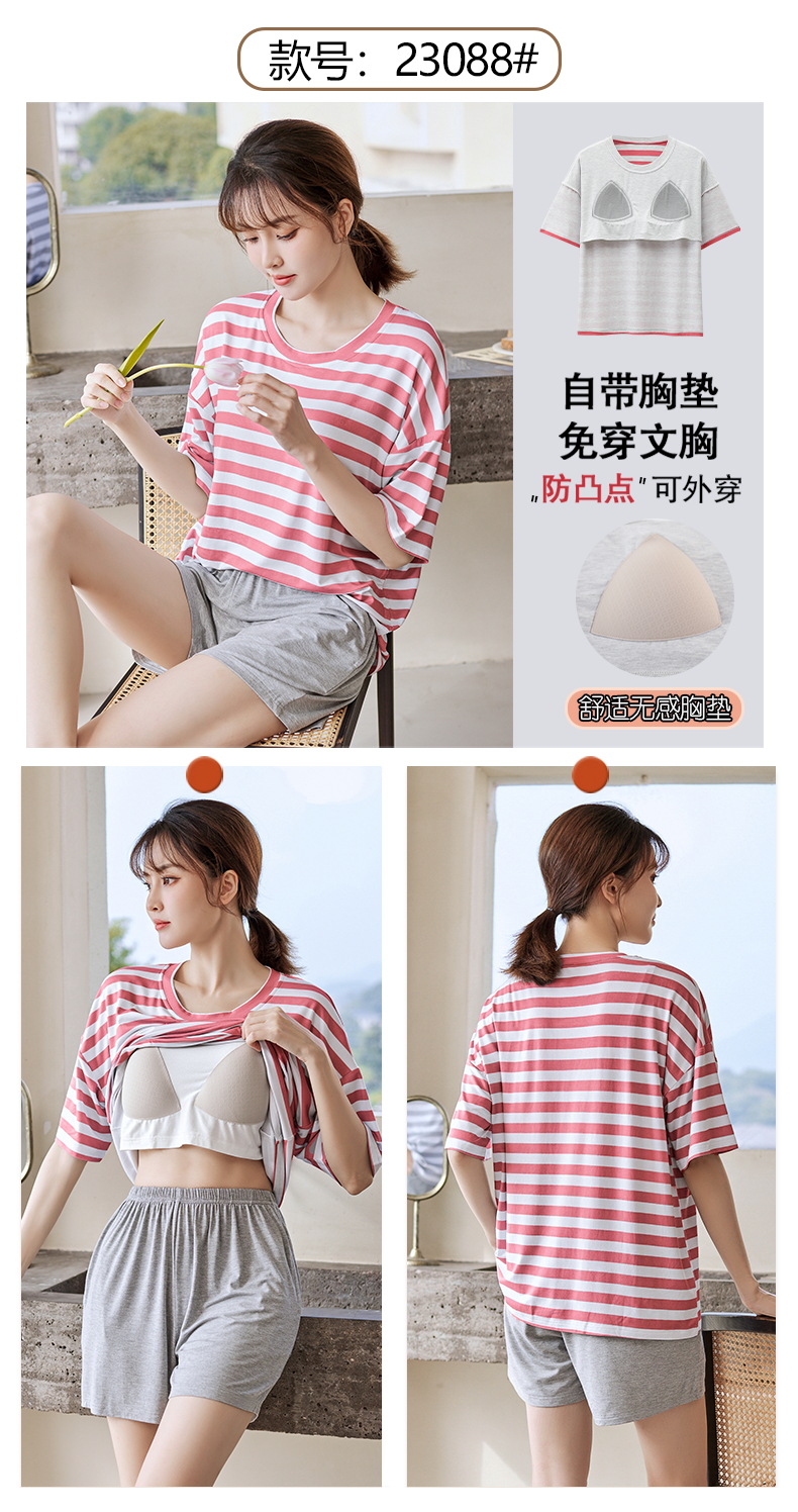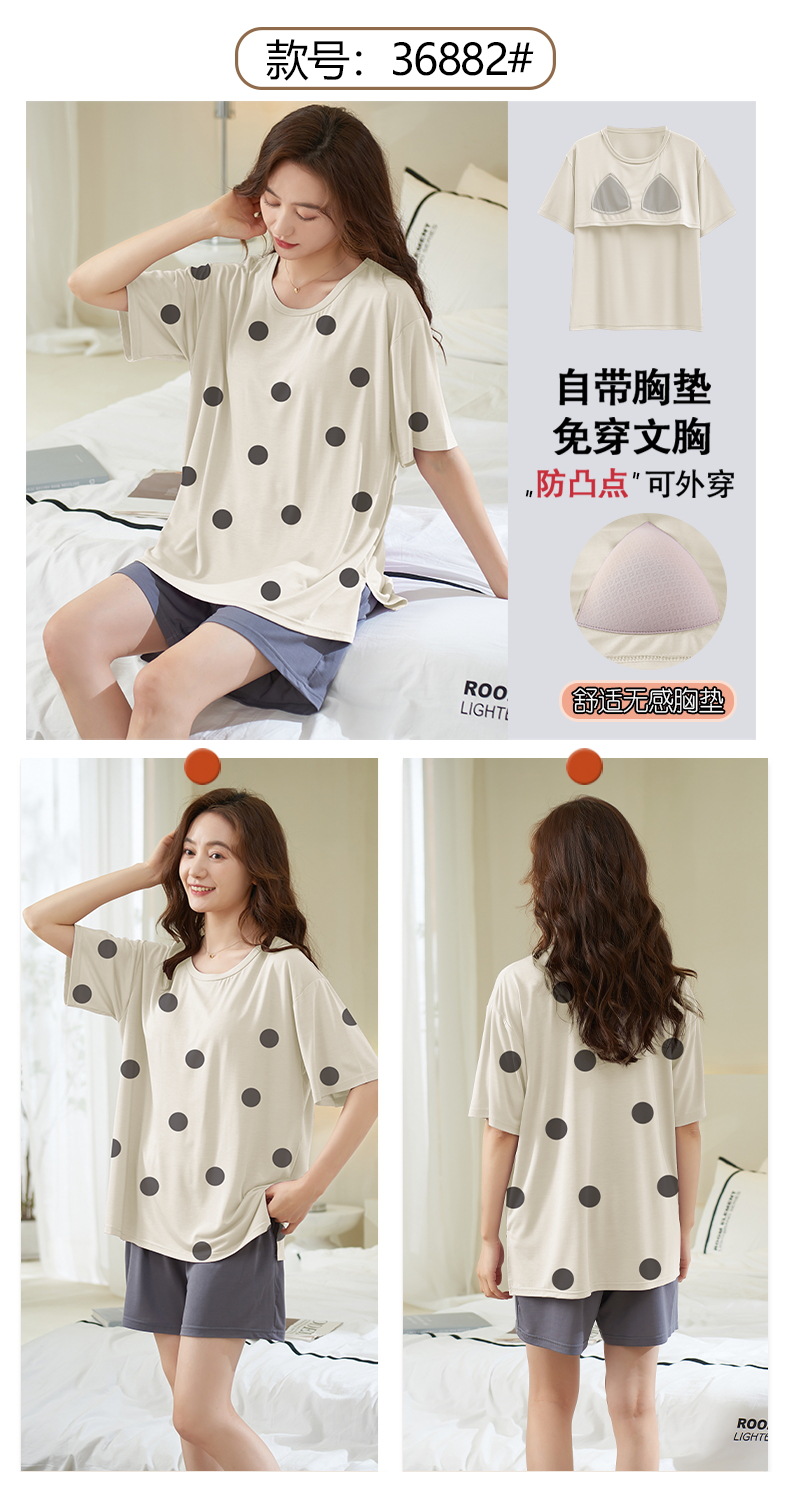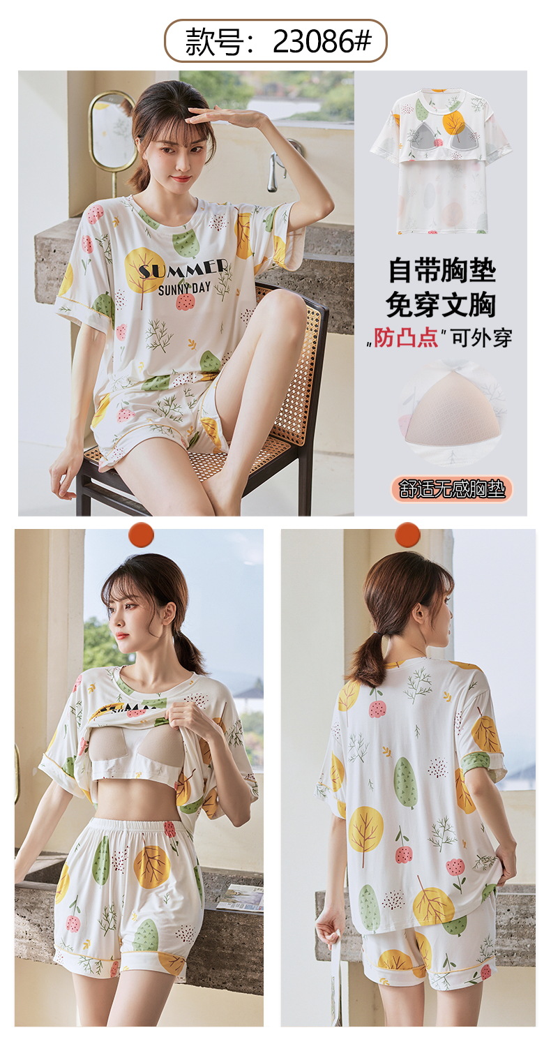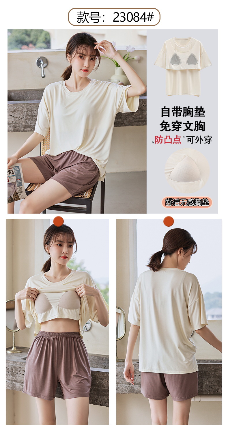 가슴 패드 짧은 소매와 얇은 잠옷 여성의 여름 모달 외부 편안함 플러스 사이즈 가정 의류 세트 도매 착용 할 수 있습니다스토어 가기