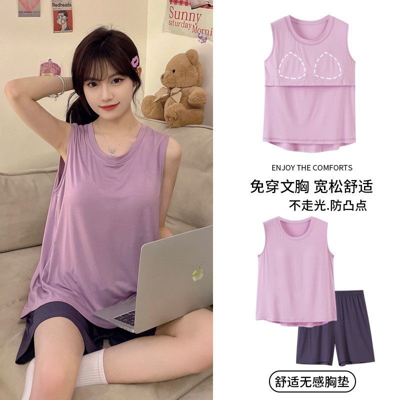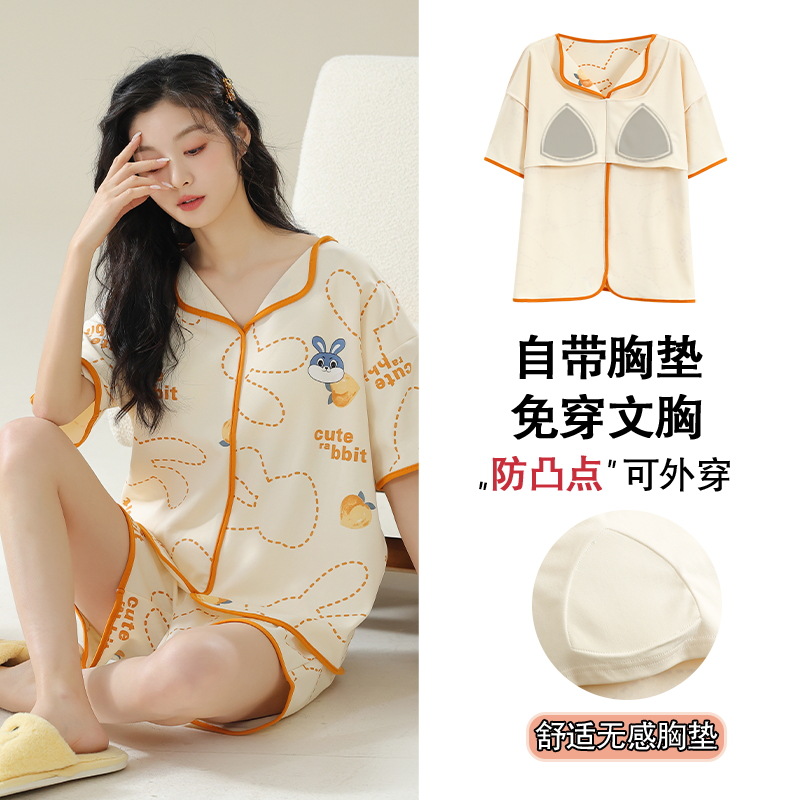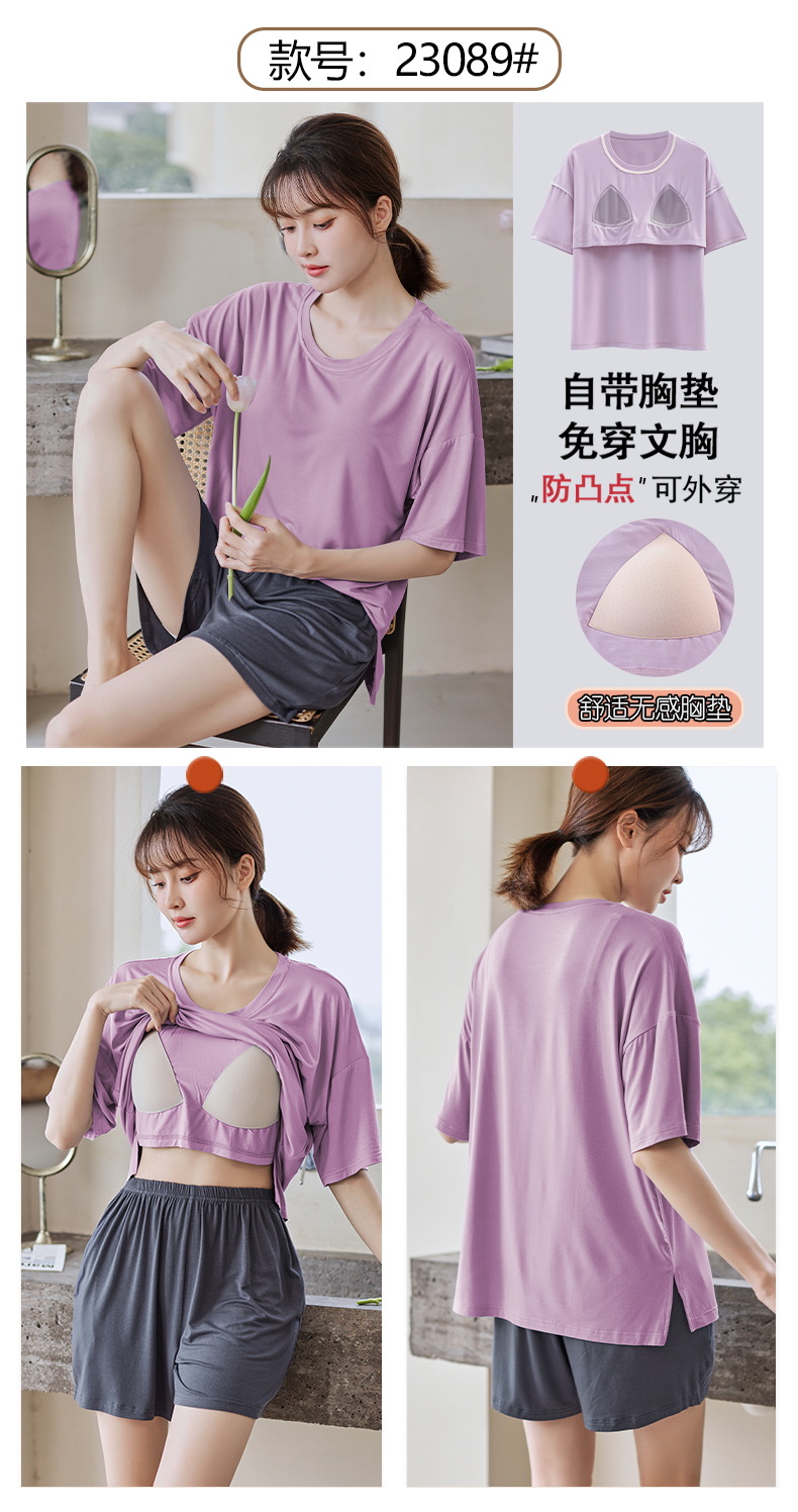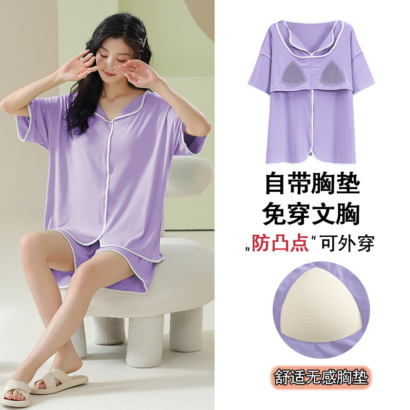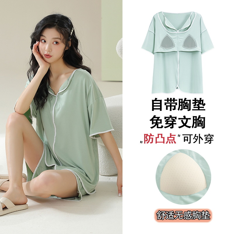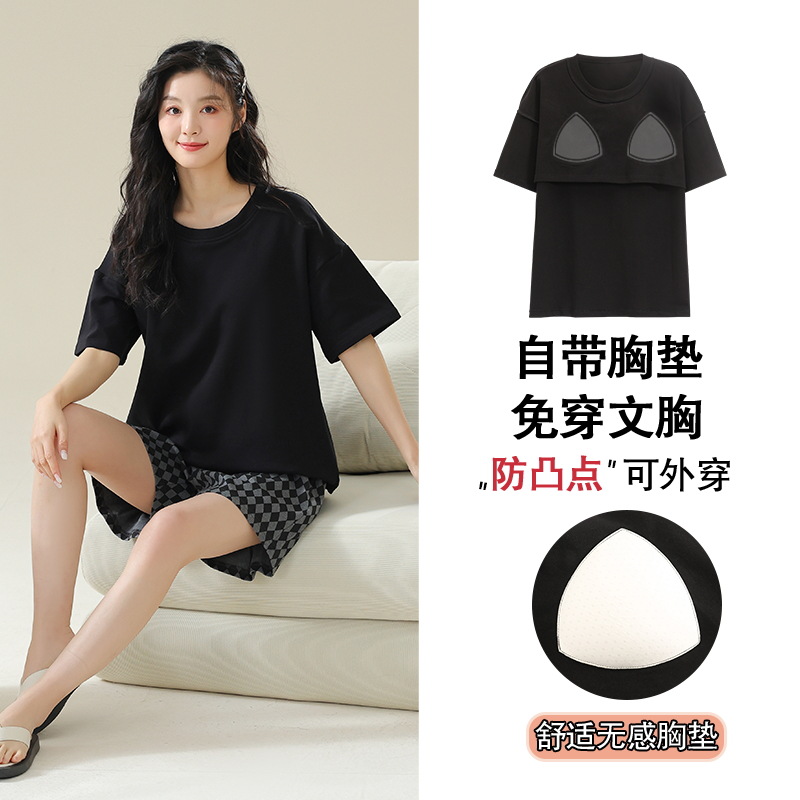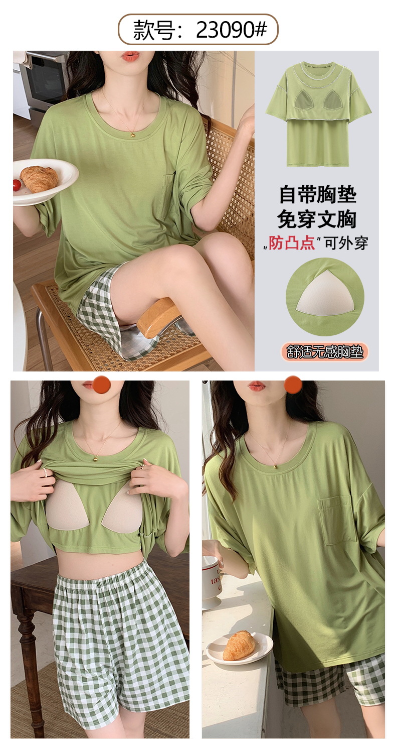 가슴 패드 짧은 소매와 얇은 잠옷 여성의 여름 모달 외부 편안함 플러스 사이즈 가정 의류 세트 도매 착용 할 수 있습니다스토어 가기
