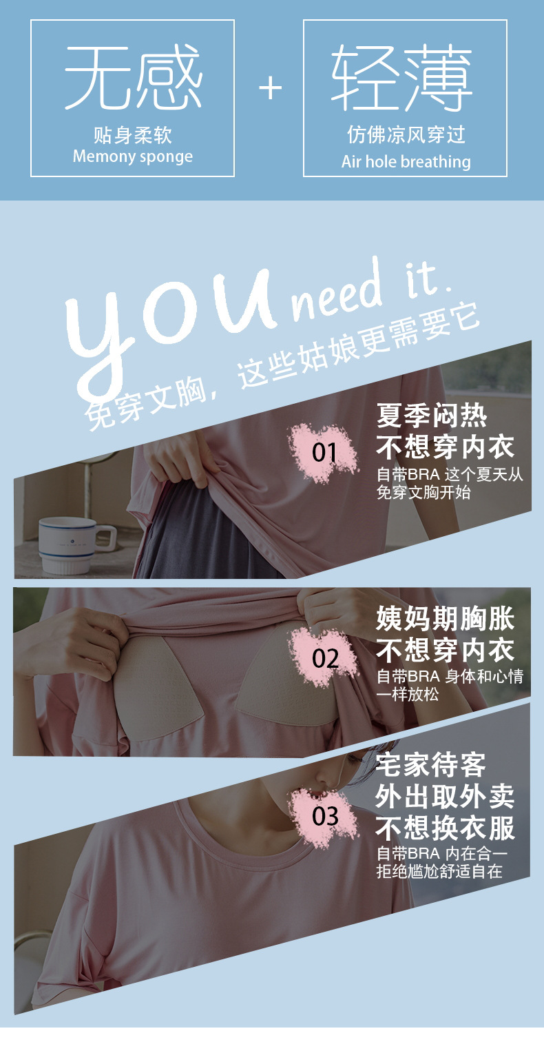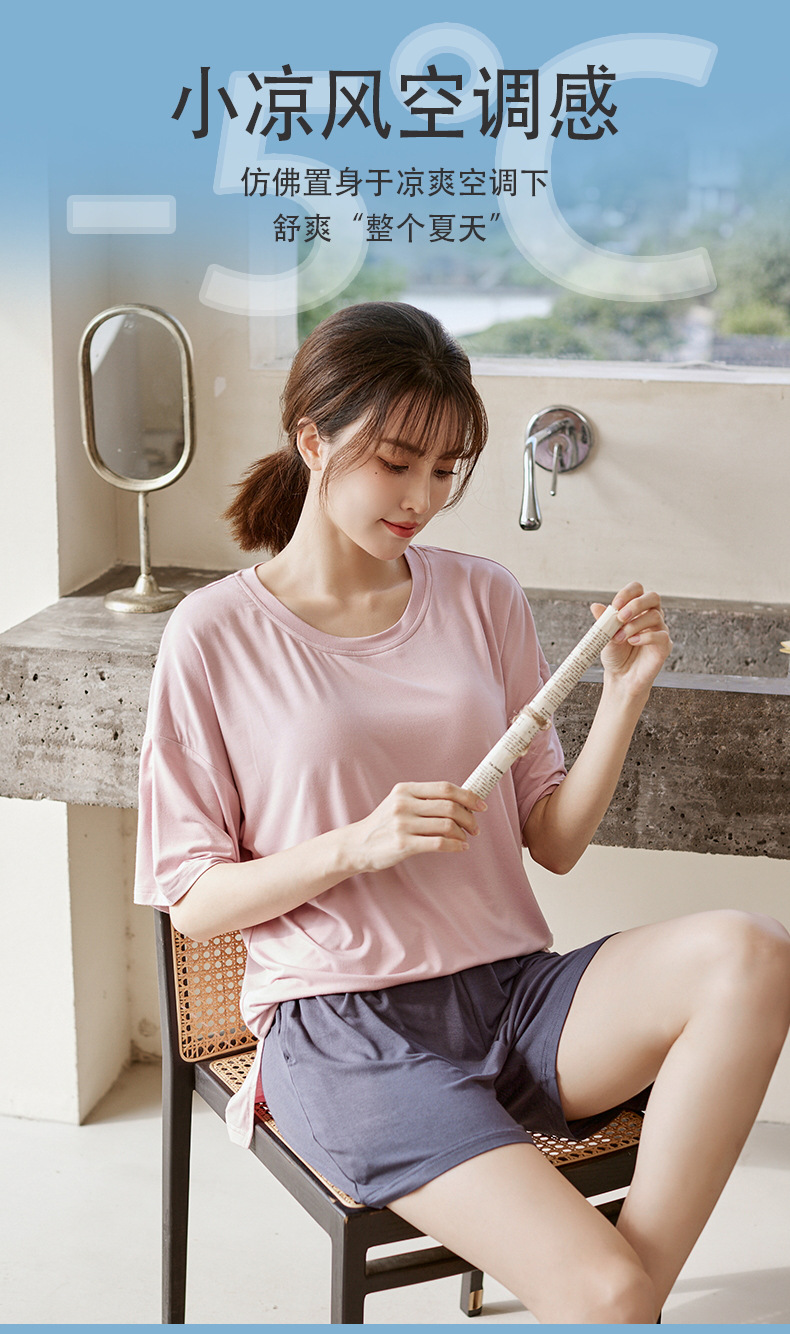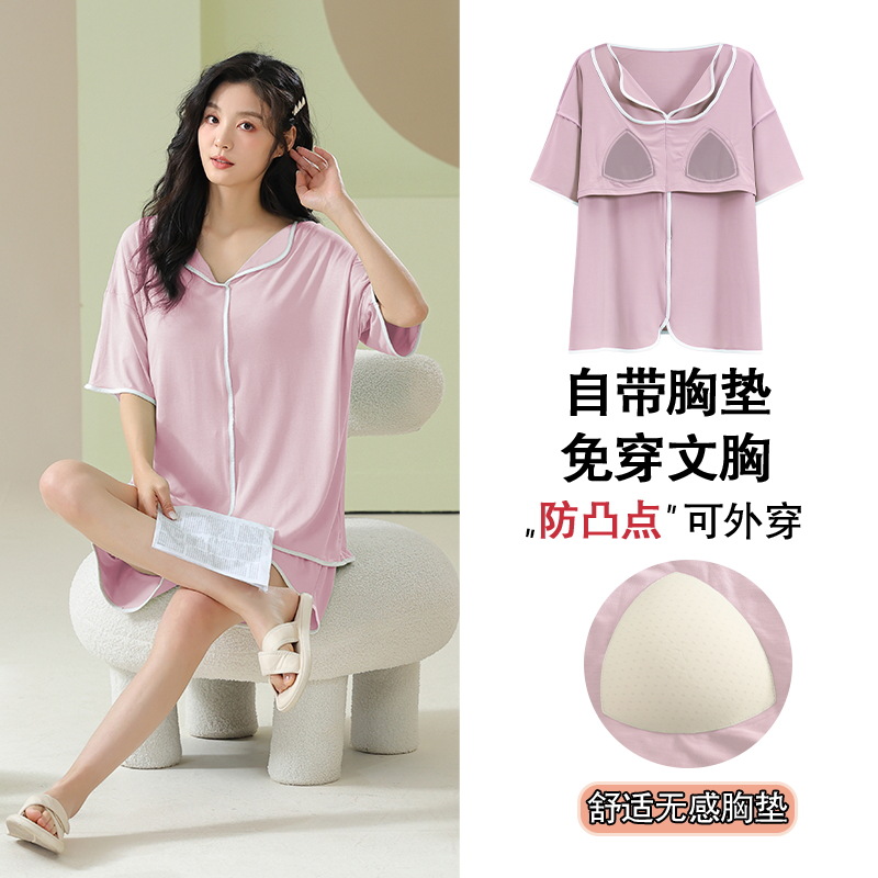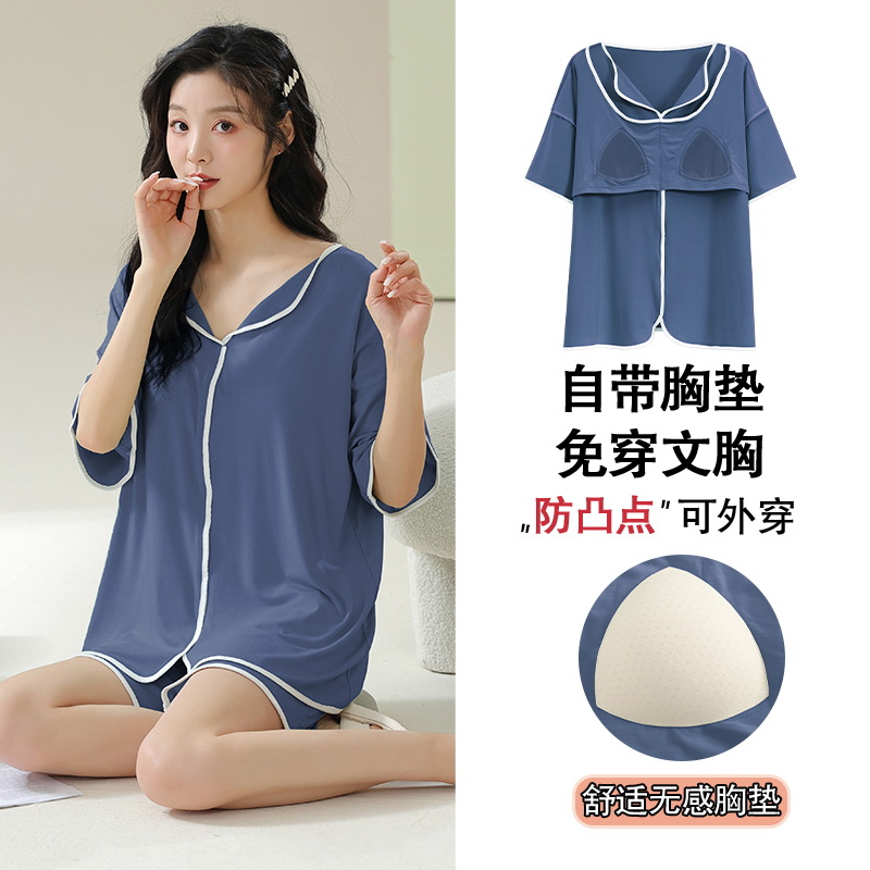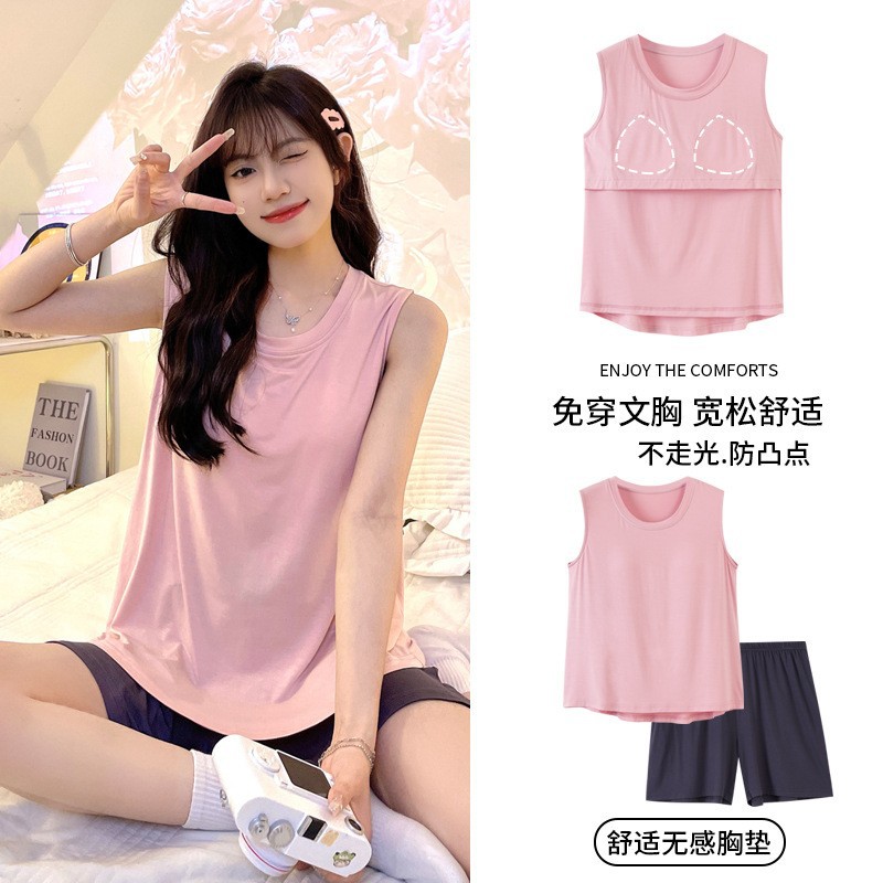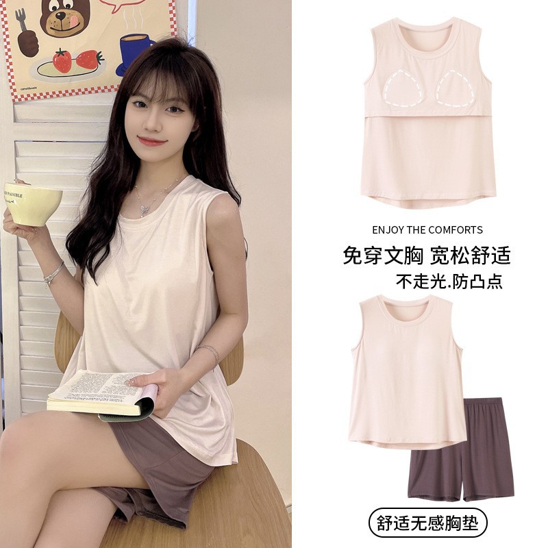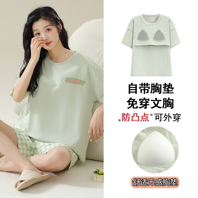 가슴 패드 짧은 소매와 얇은 잠옷 여성의 여름 모달 외부 편안함 플러스 사이즈 가정 의류 세트 도매 착용 할 수 있습니다스토어 가기
