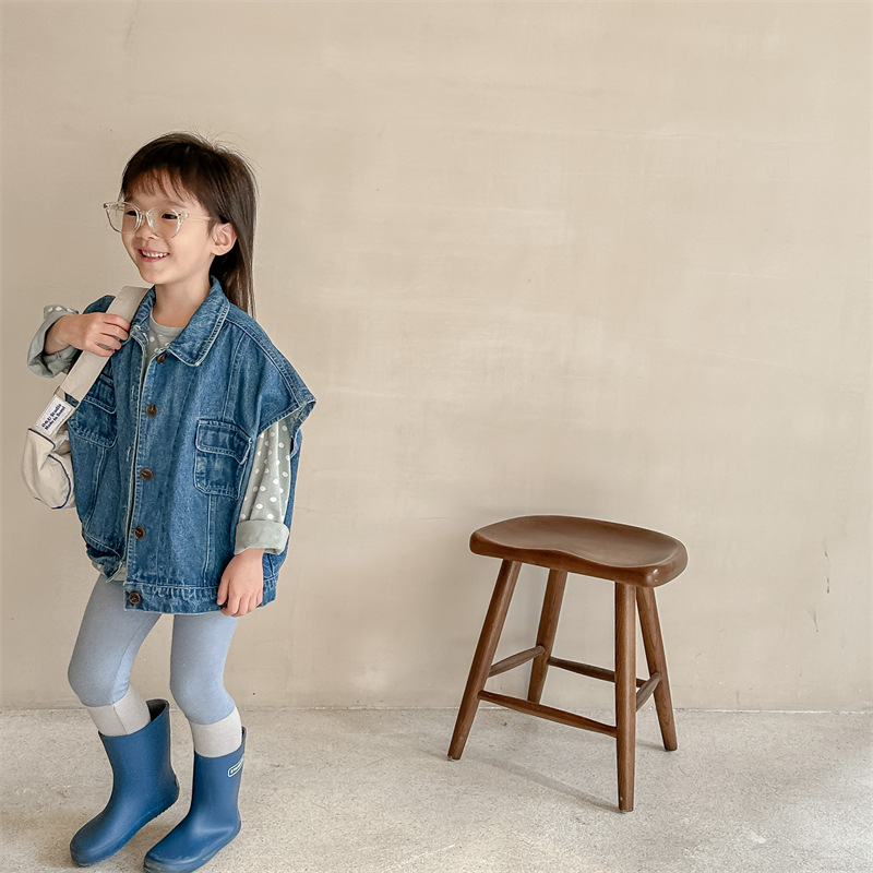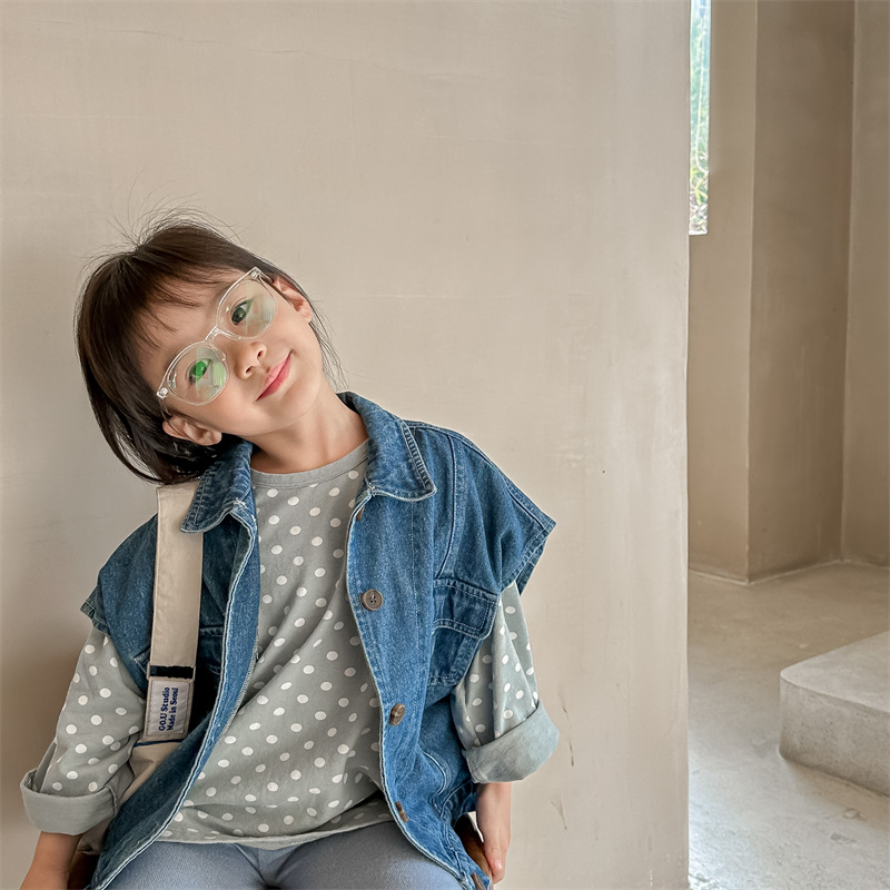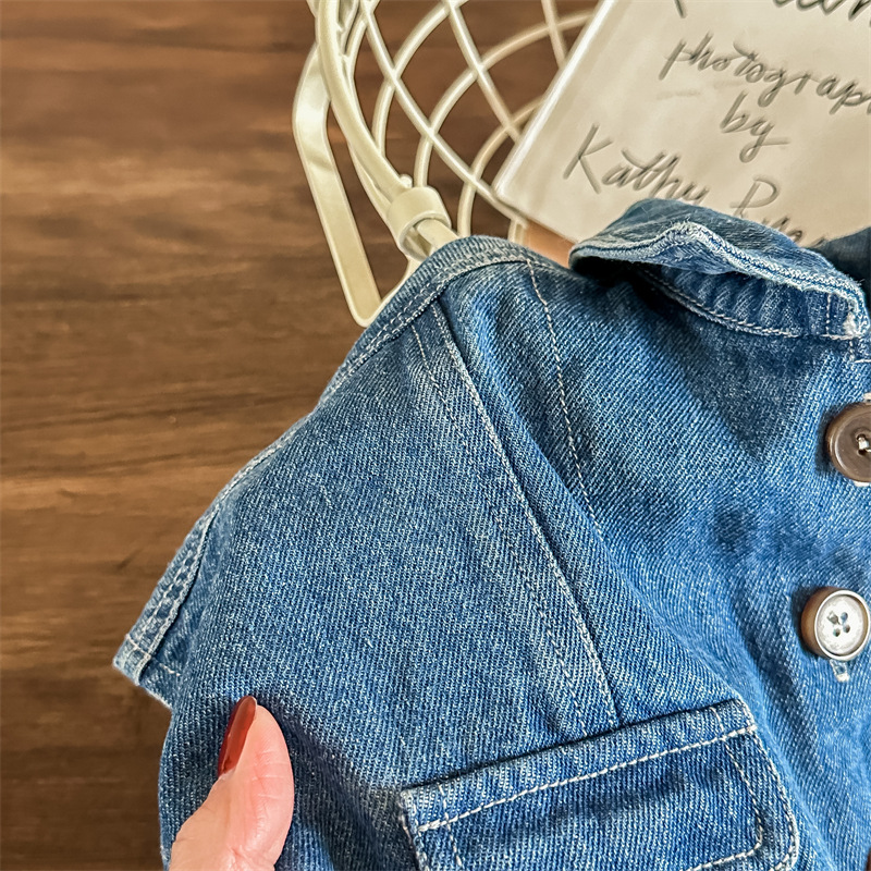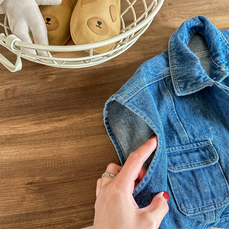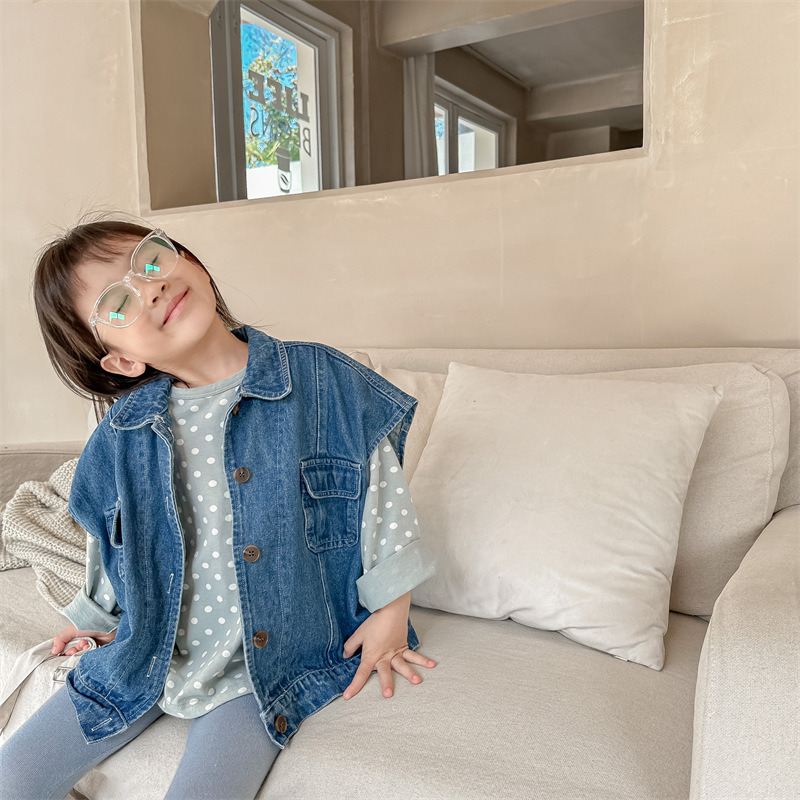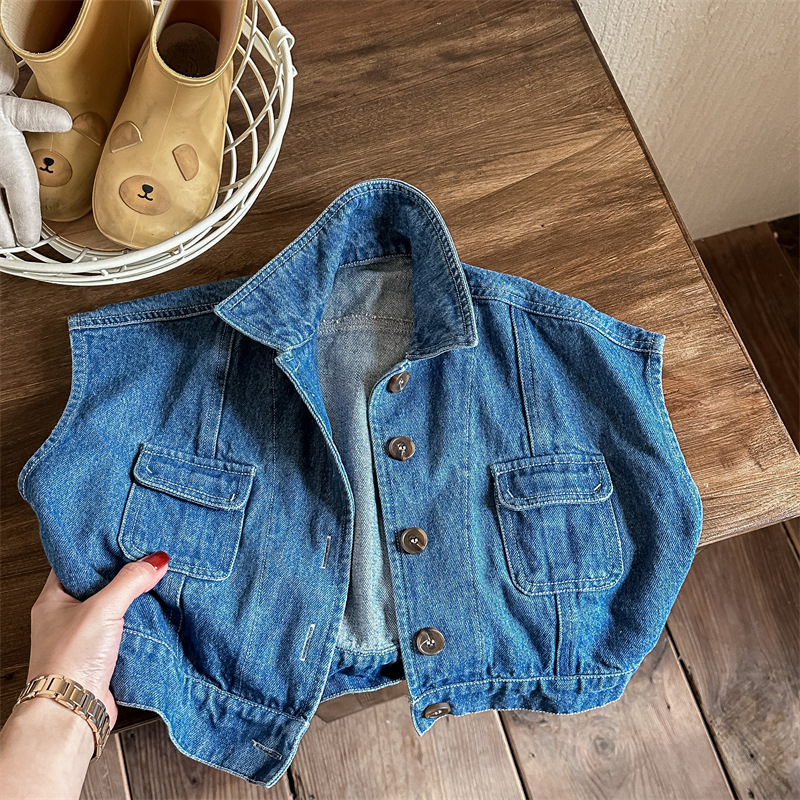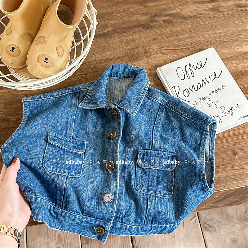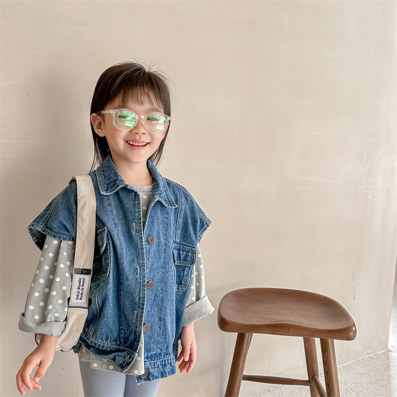 2026 봄 아동복 신상품 아동 한국 스타일 데님 조끼 여아 봄 조끼 소형 재킷 123005