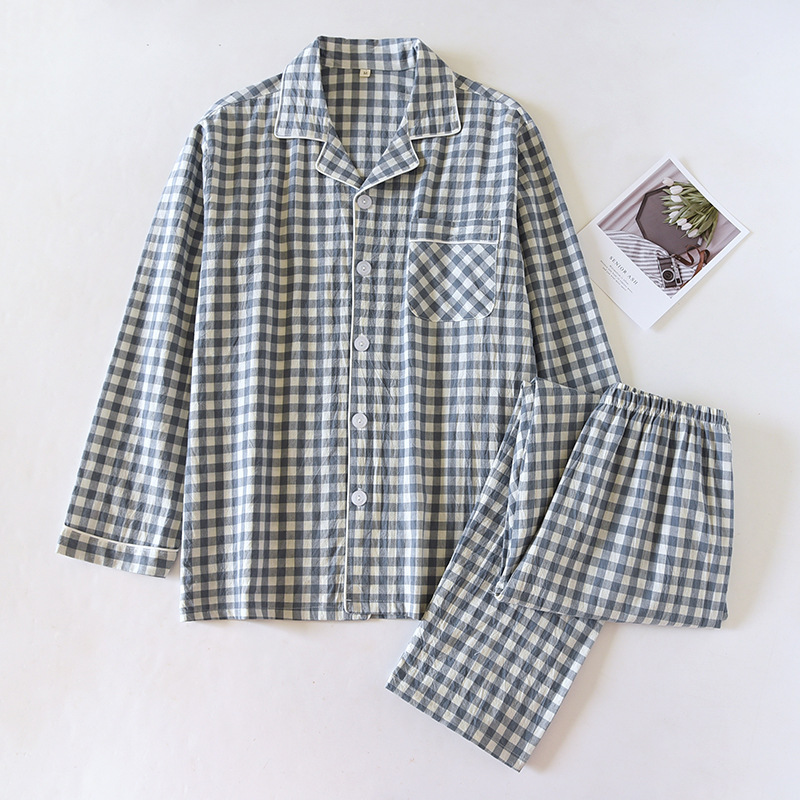 봄과 가을면 일본 격자 무늬 커플 잠옷 여성 면 얇은 여름 남자 가을과 겨울 긴 소매 홈 세트스토어 가기
