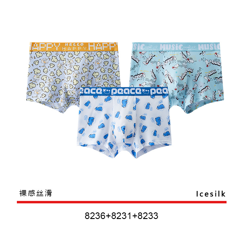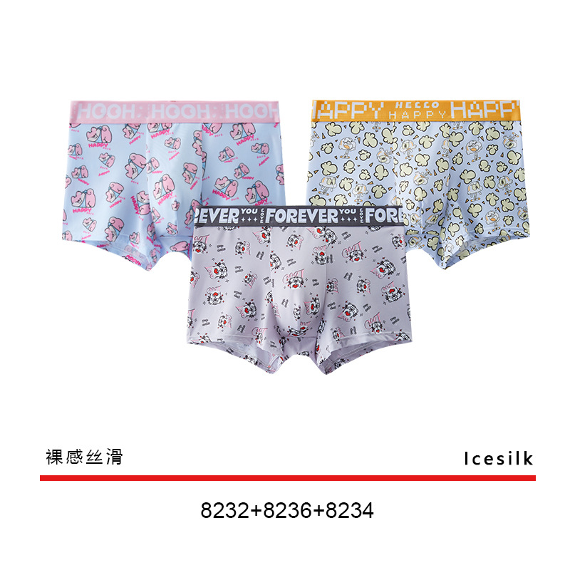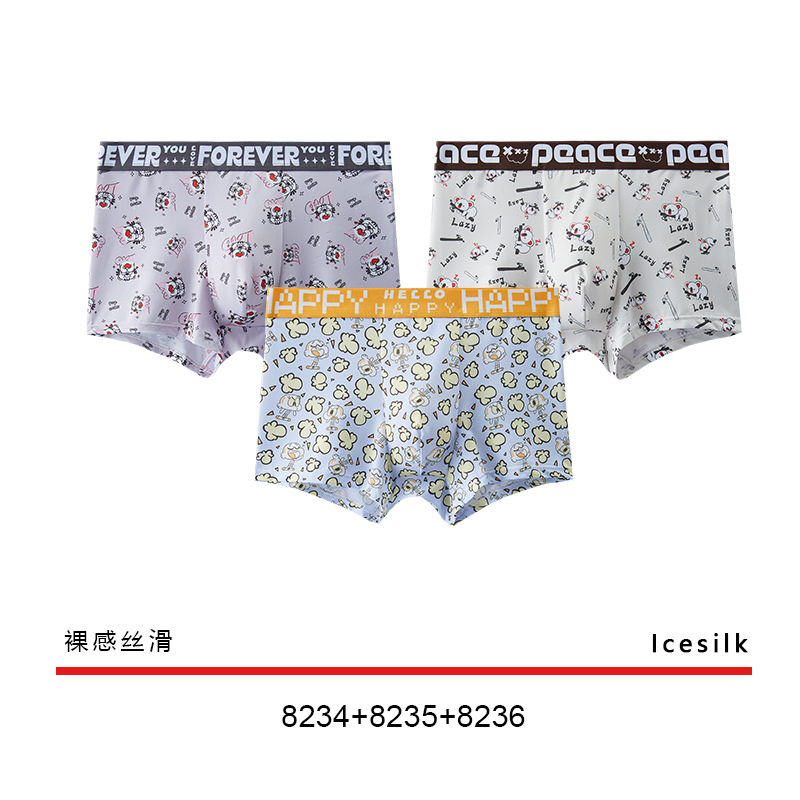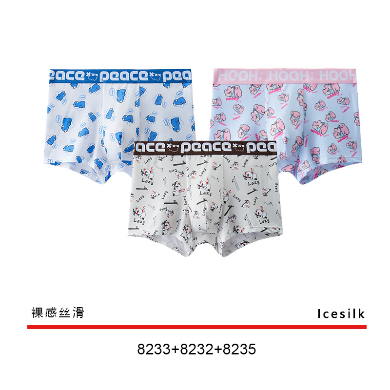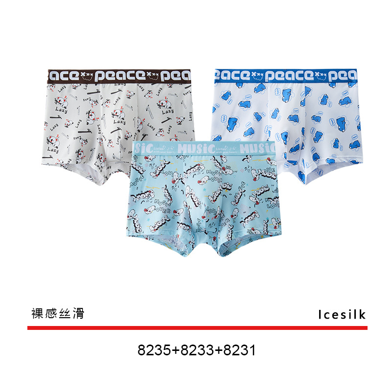 여름 편안한 남성 속옷 아이스 실크 울트라 씬 통기성 4 코너 항균 인쇄 청소년 복서 남성 속옷 도매스토어 가기