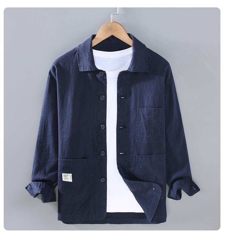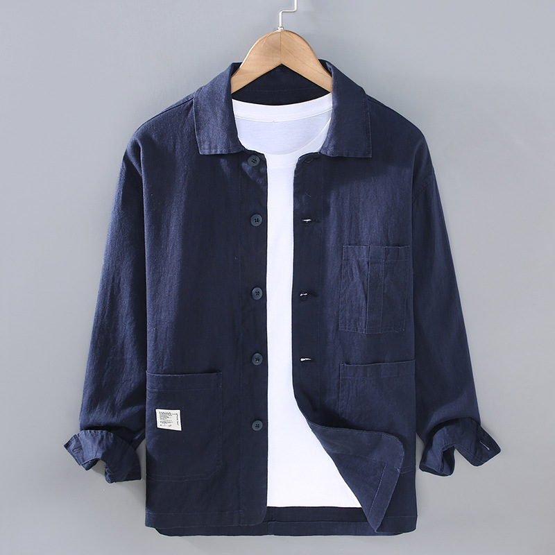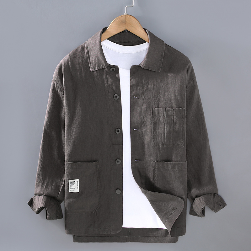 G089 일본 남성 청소년 레저 린넨 재킷 레트로 심플 조커 얇은 재킷 봄 새로운 원피스 헤어스토어 가기