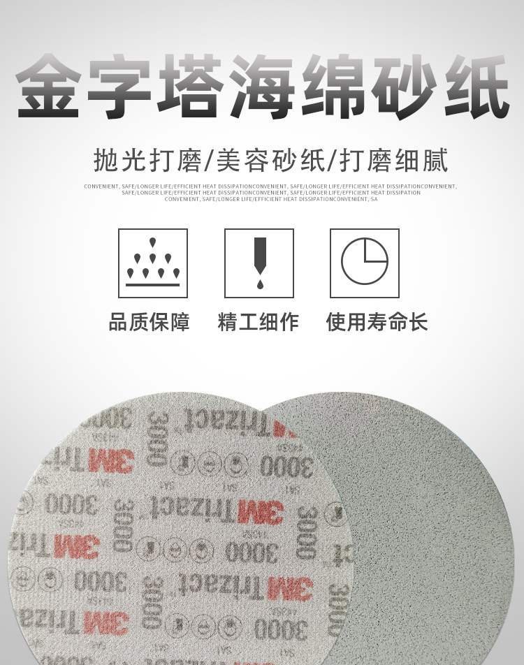 3M 피라미드 스폰지 사포 6 인치 3000 메쉬 광택 모래 피부 자동차 페인트 초미세 연삭 아름다움 5000스토어 가기