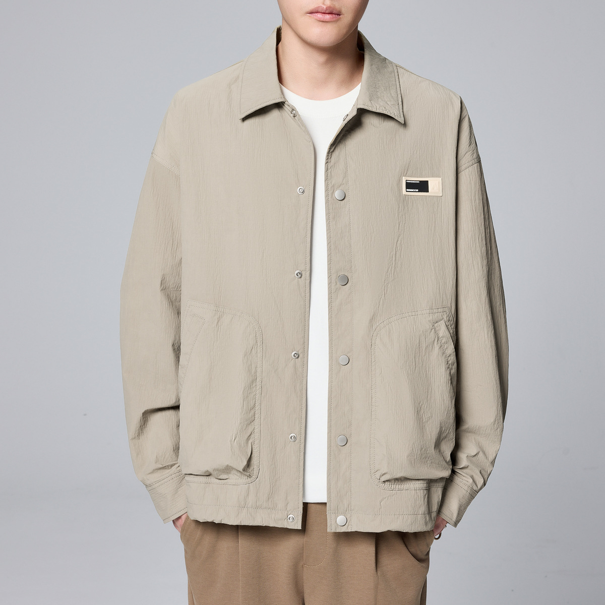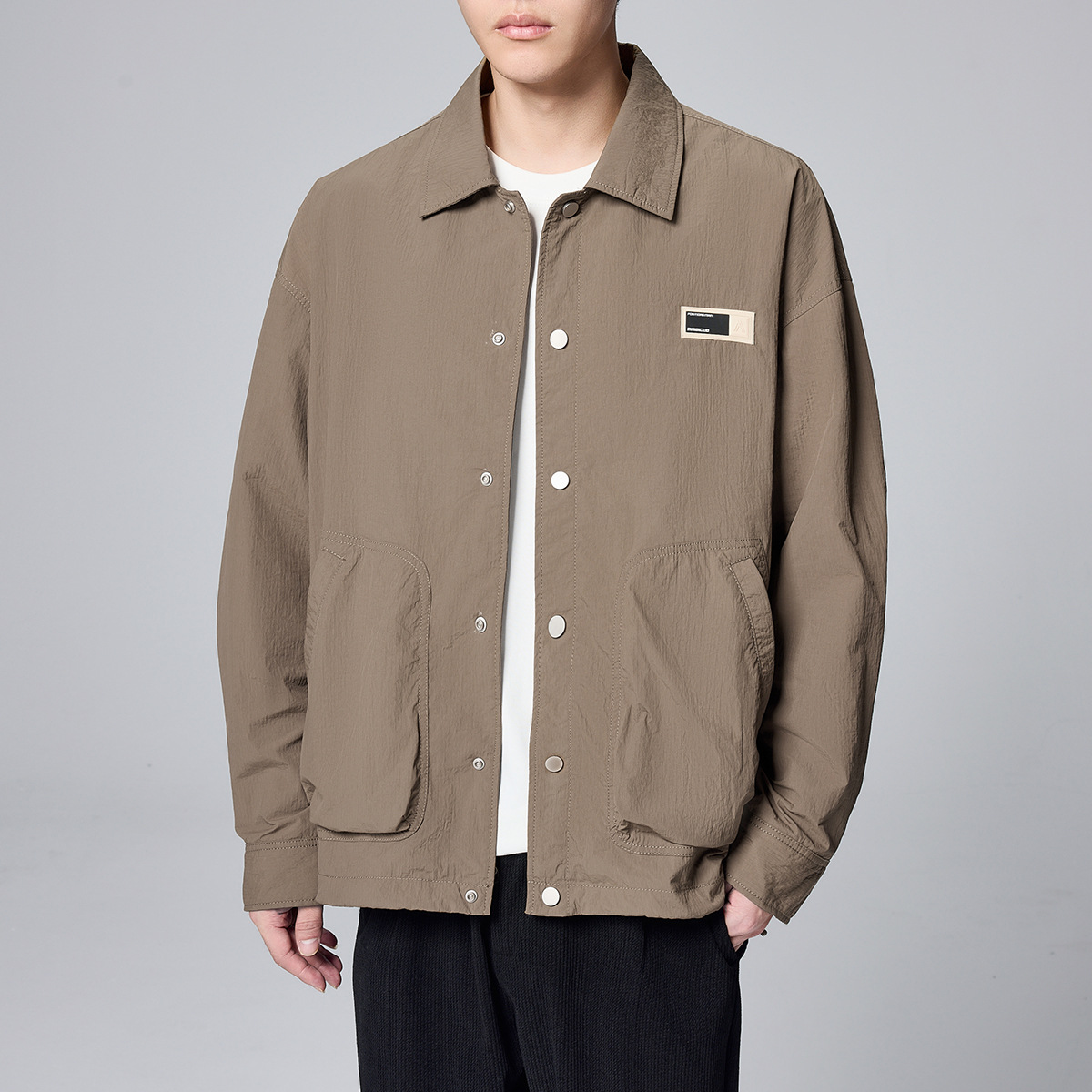 모마이크 남성 심플 라펠 캐주얼 재킷 남성 2026 봄 신상 라벨 장식 남성 재킷 80693스토어 가기