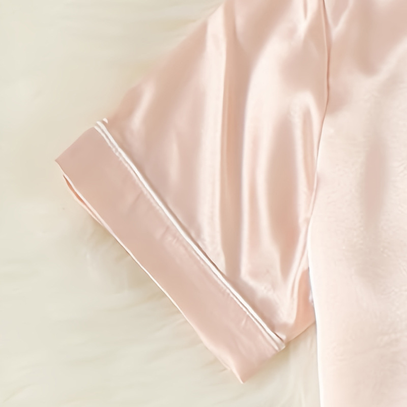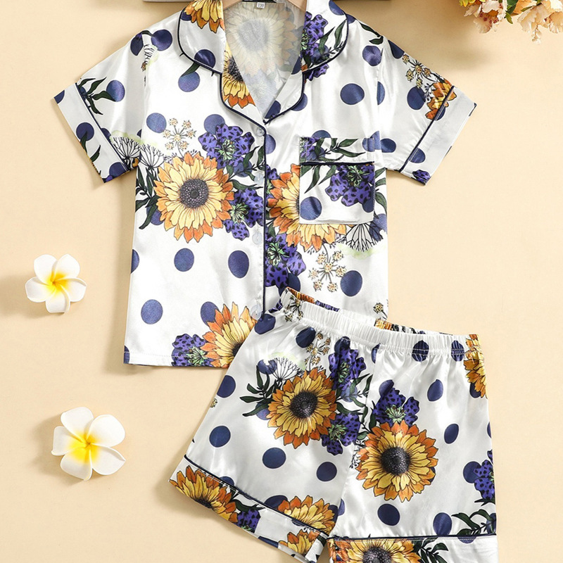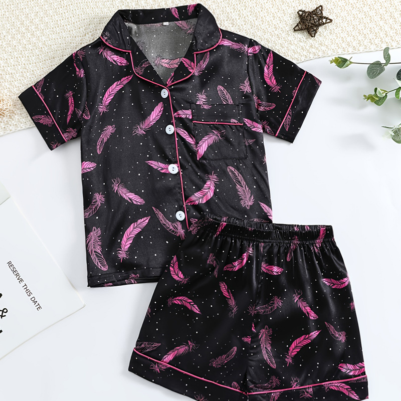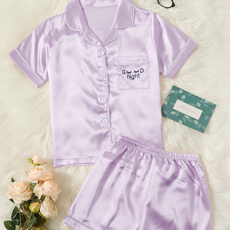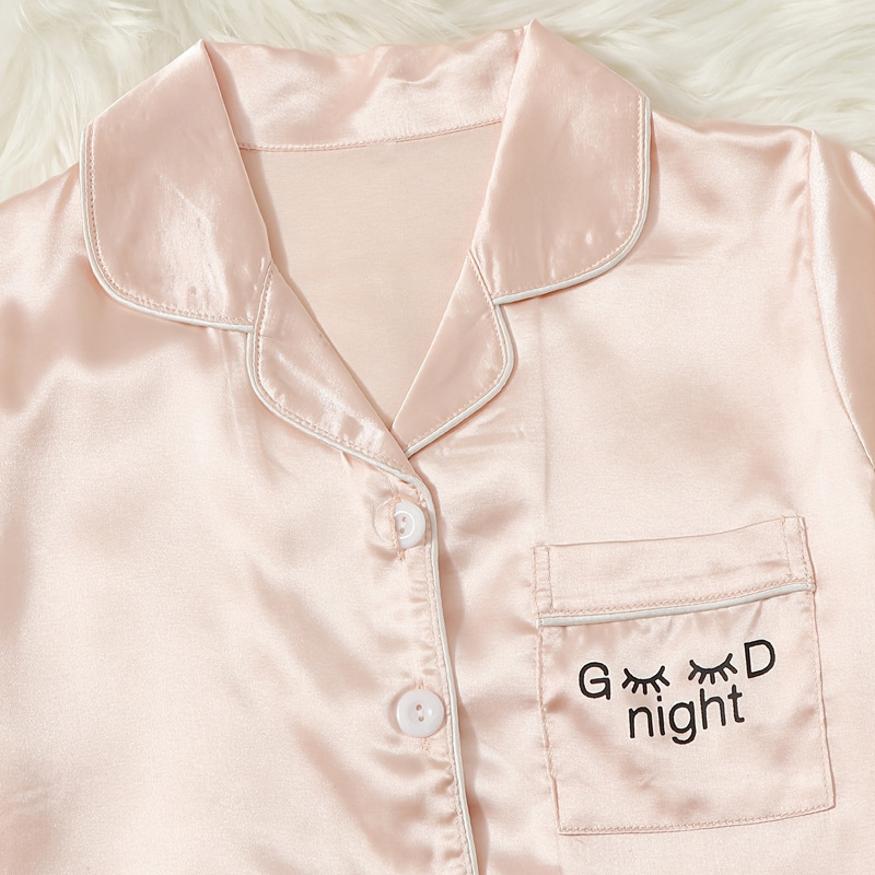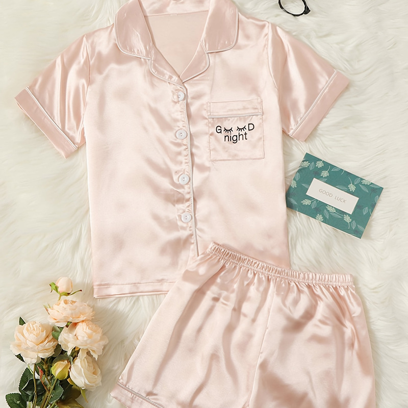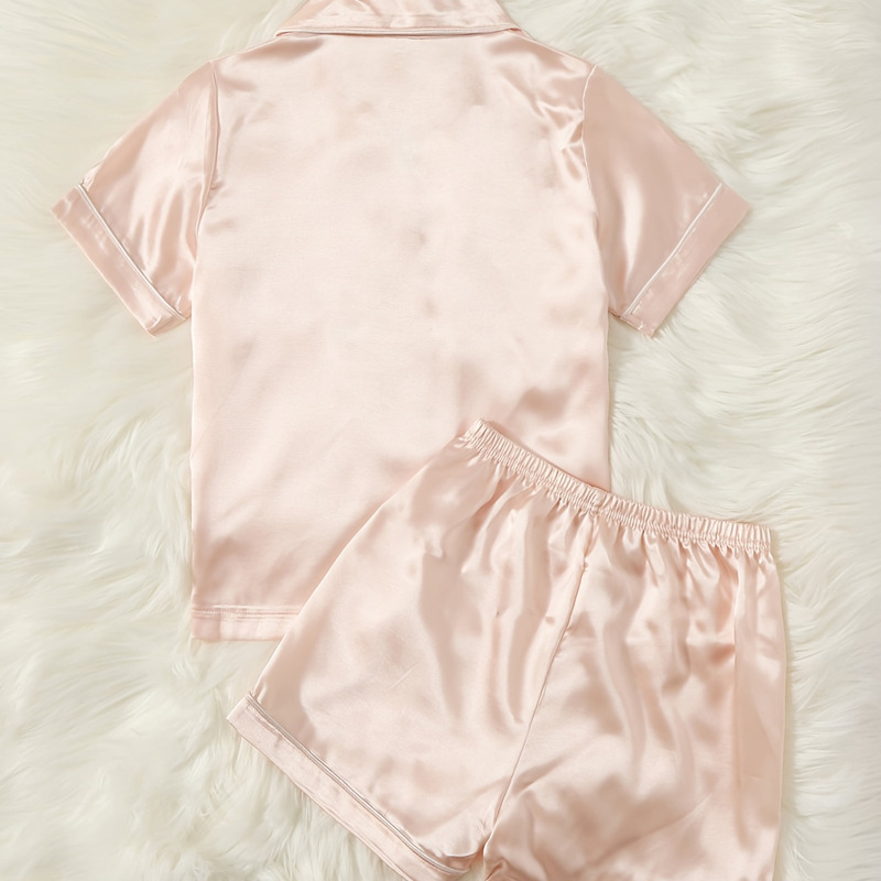 크로스 보더 어린이 잠옷 여름 단색 세이드 세트 반팔 반바지 여아 캐주얼 편안한 모조 실크 가정 옷