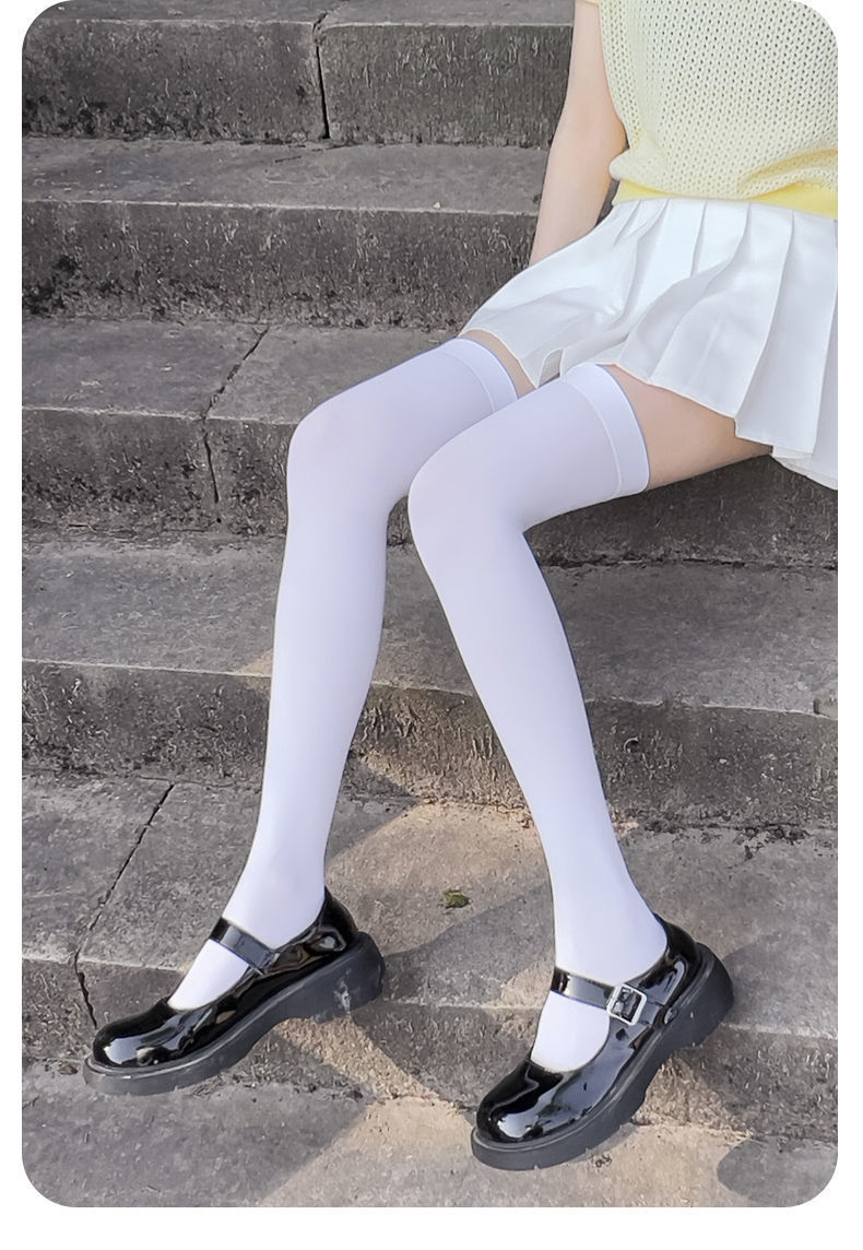 공장 직접 판매 아름다운 다리 봄과 여름 무릎 위 양말 얇은 벨벳 작은 jk 양말 여성 단색 흰색 실크 스타킹스토어 가기