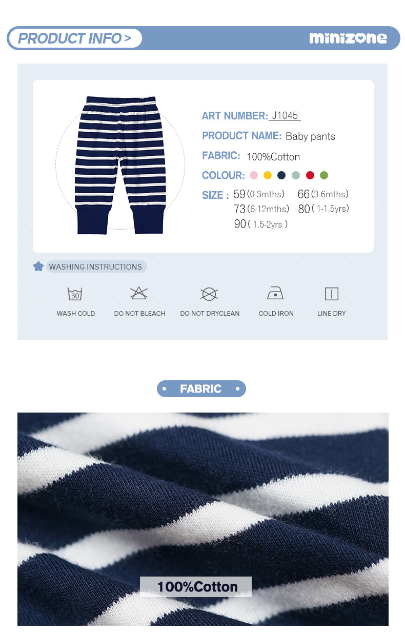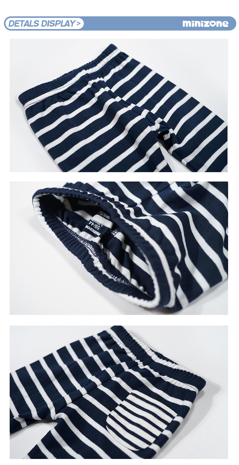 Minizone 아동 의류 아기 바지 줄무늬 이른 봄 새로운 바닥 바지 남성과 여성의 아기 면화 캐주얼 바지스토어 가기