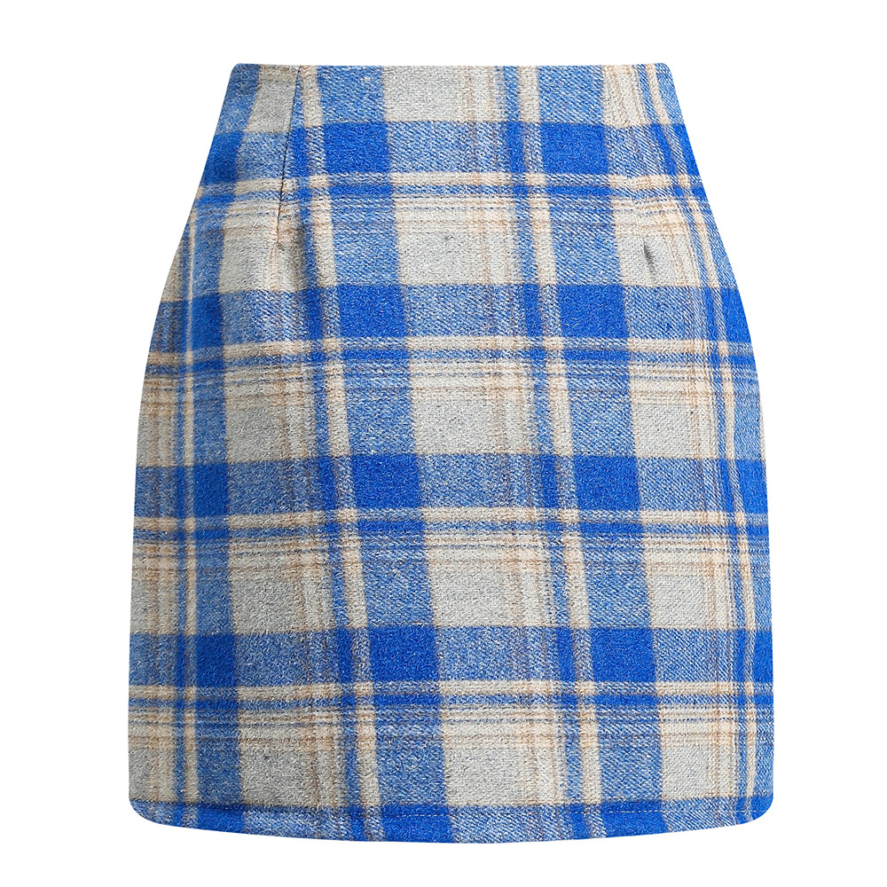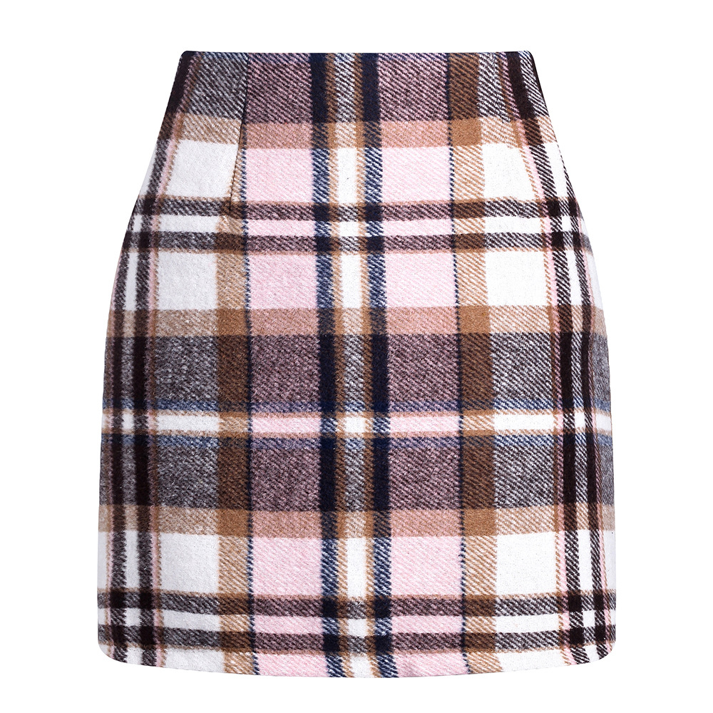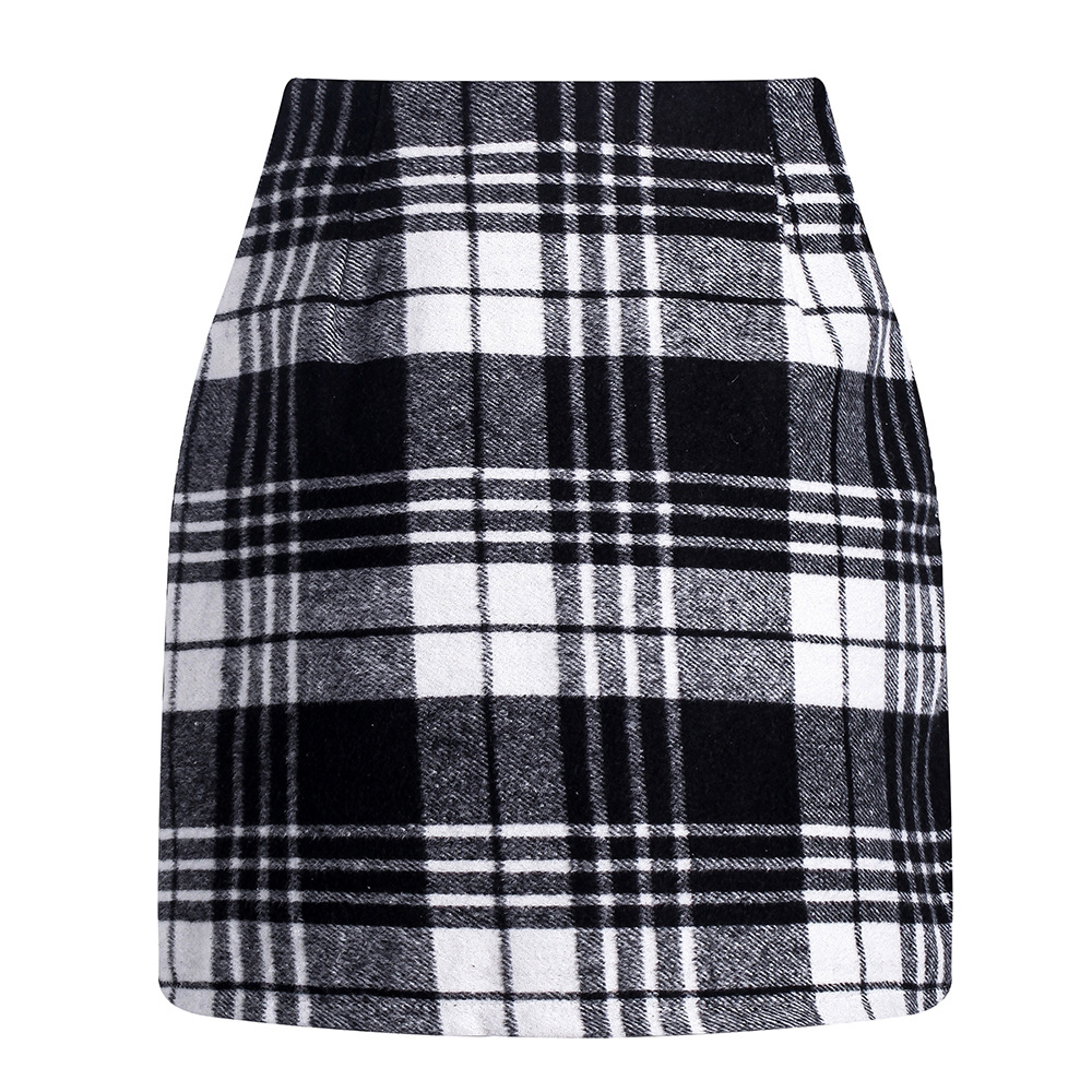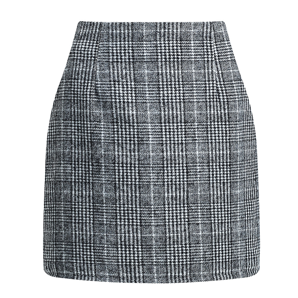 아마존 독립 역 핫 크로스 보더 여성용 하이 웨이스트 격자 무늬 스커트 꽉 연필 울 미니 스커트스토어 가기