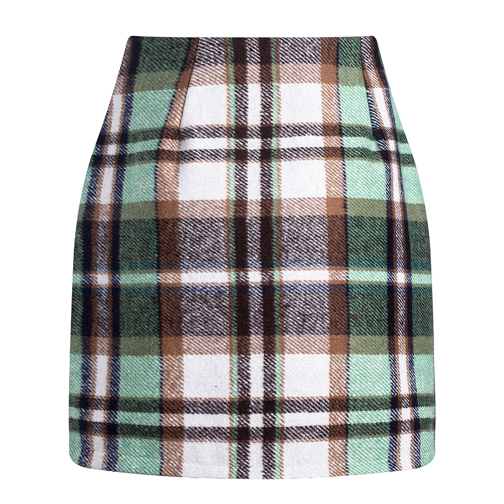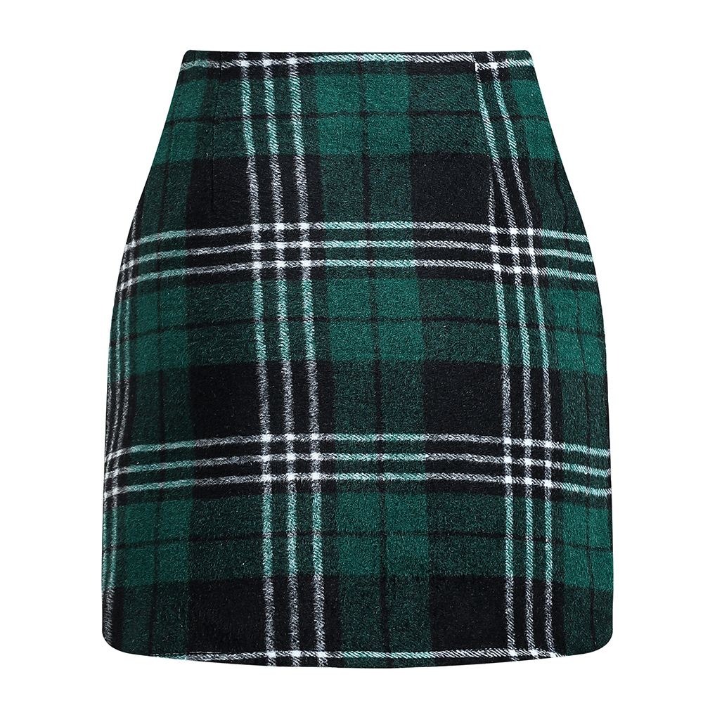 아마존 독립 역 핫 크로스 보더 여성용 하이 웨이스트 격자 무늬 스커트 꽉 연필 울 미니 스커트