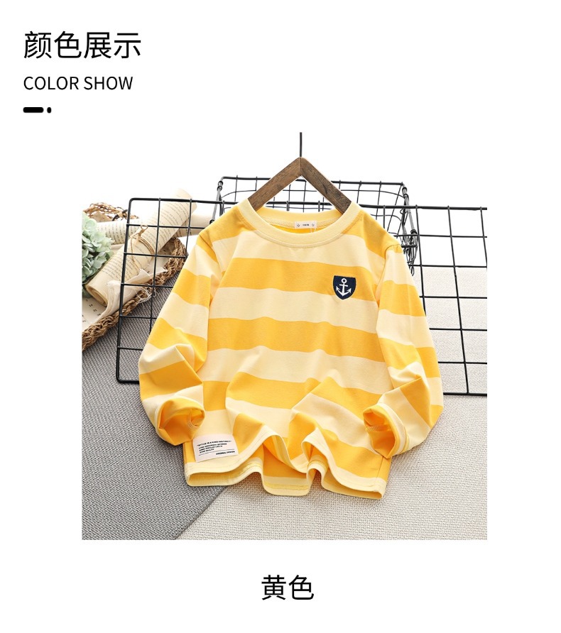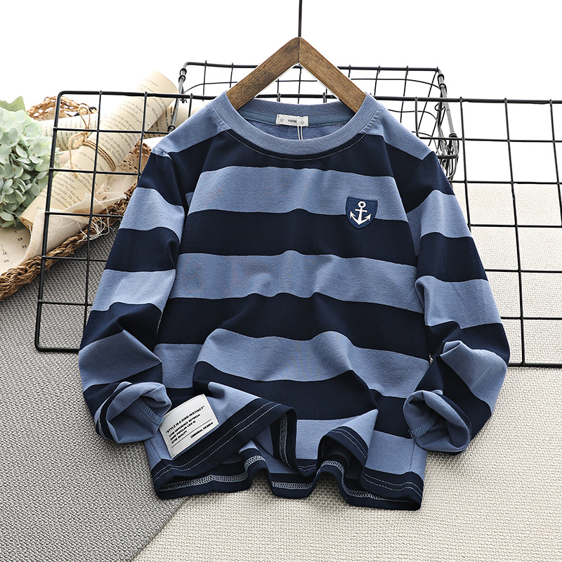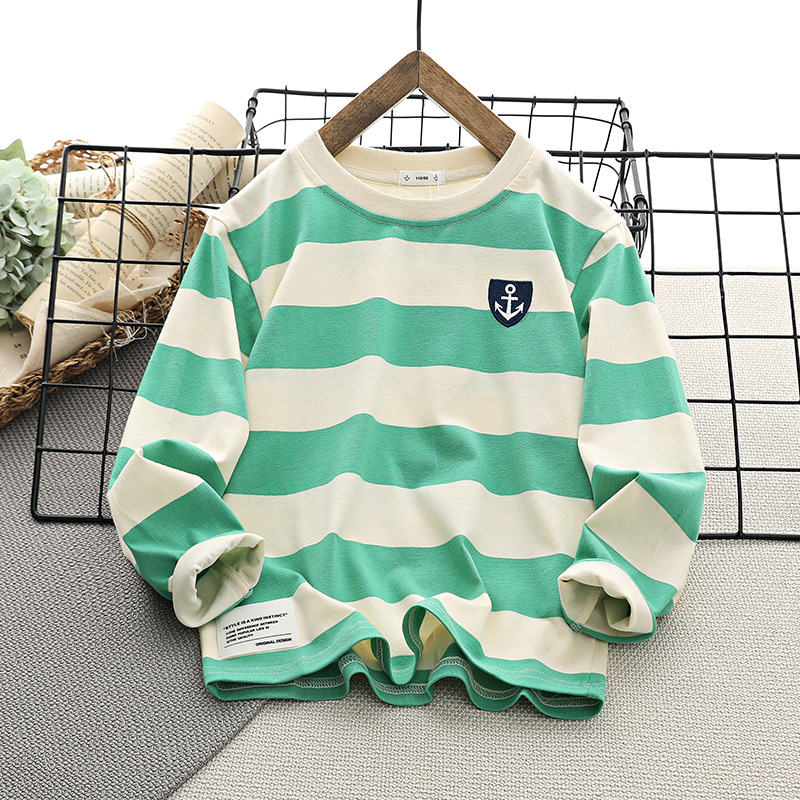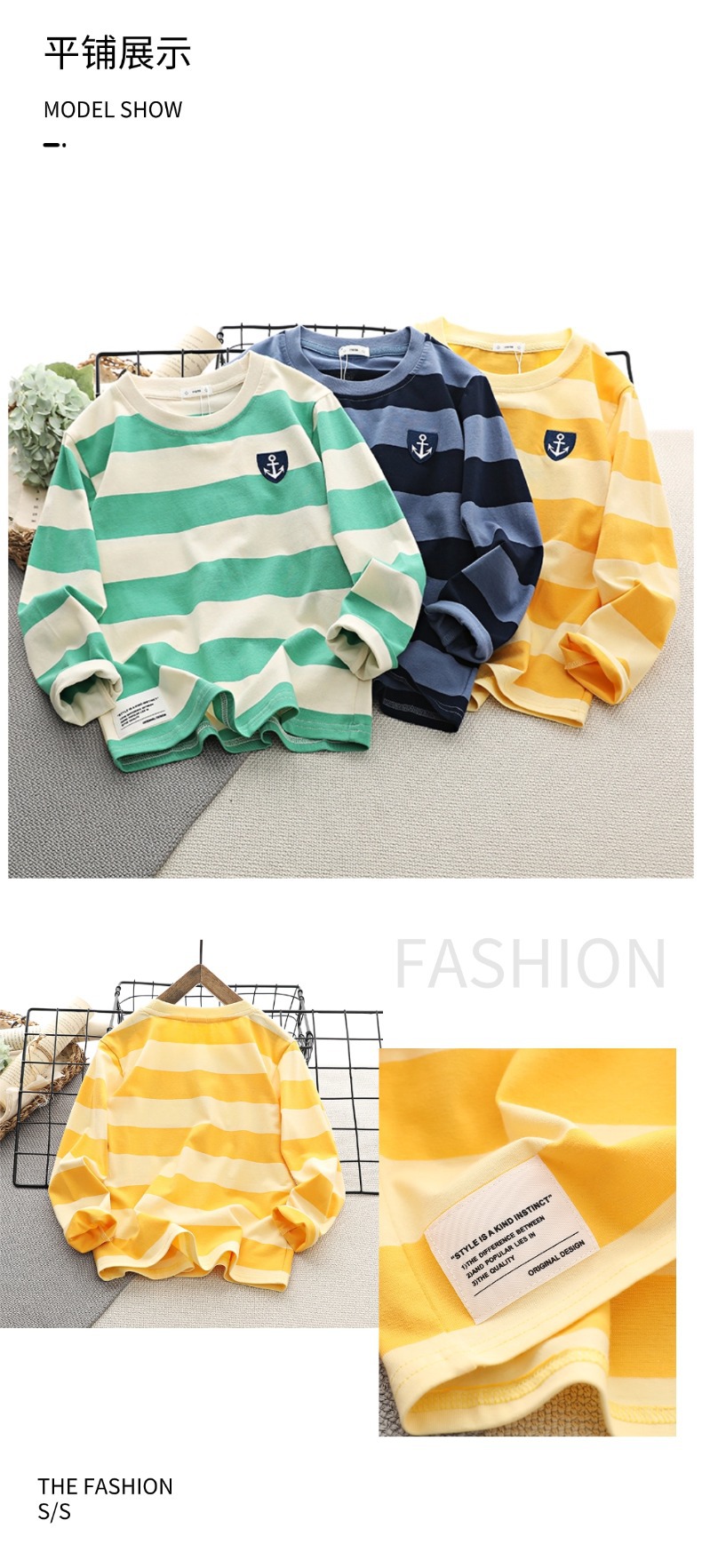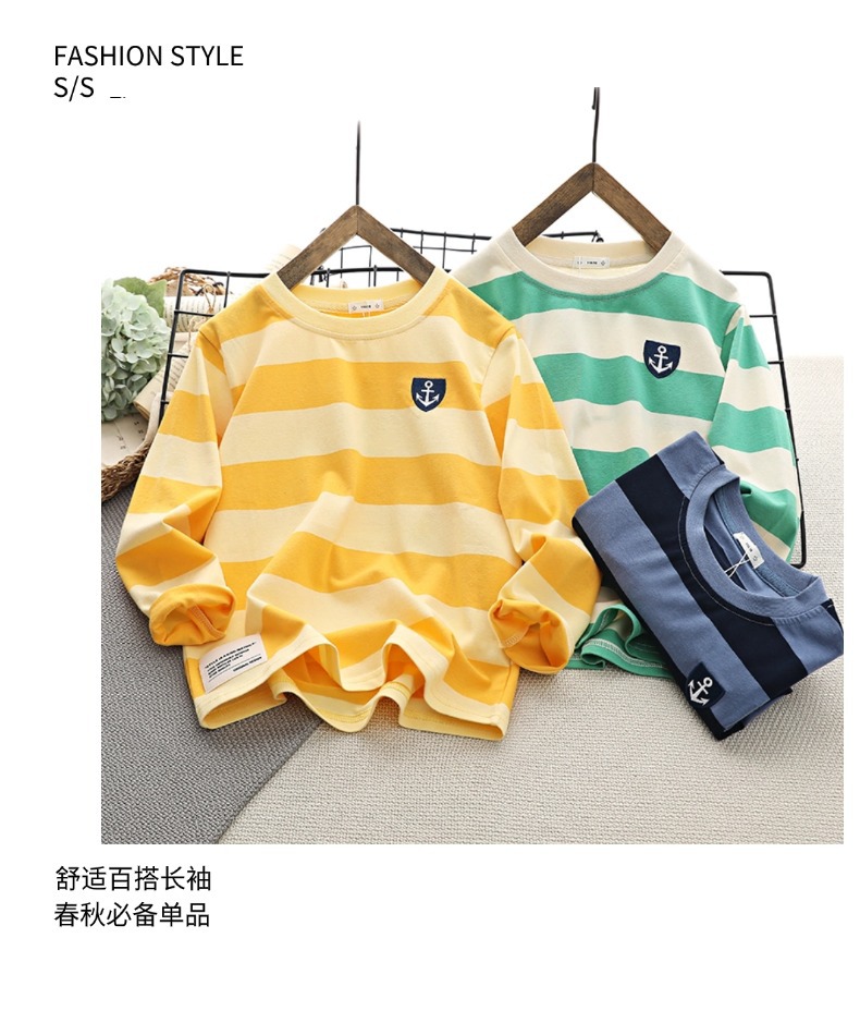 소년 긴팔 티셔츠 순수 코튼 스트라이프 2025 새로운 봄, 가을 중대형 어린이 라운드 넥 바닥 셔츠 소프트 탑스토어 가기