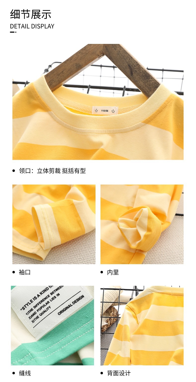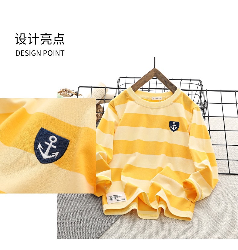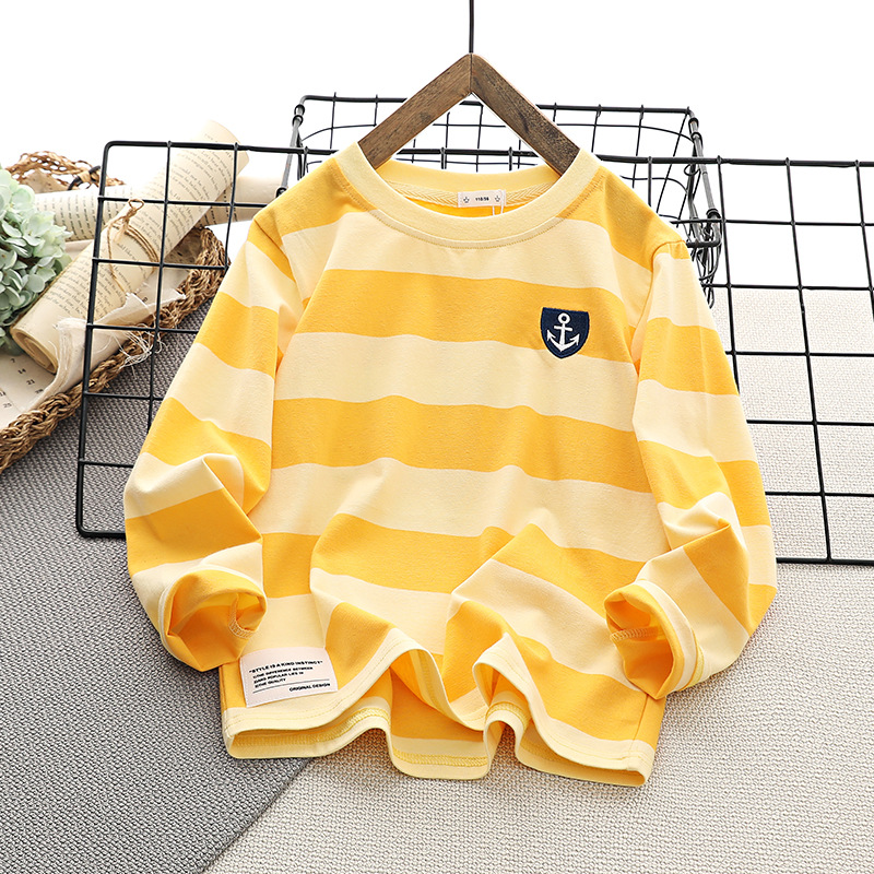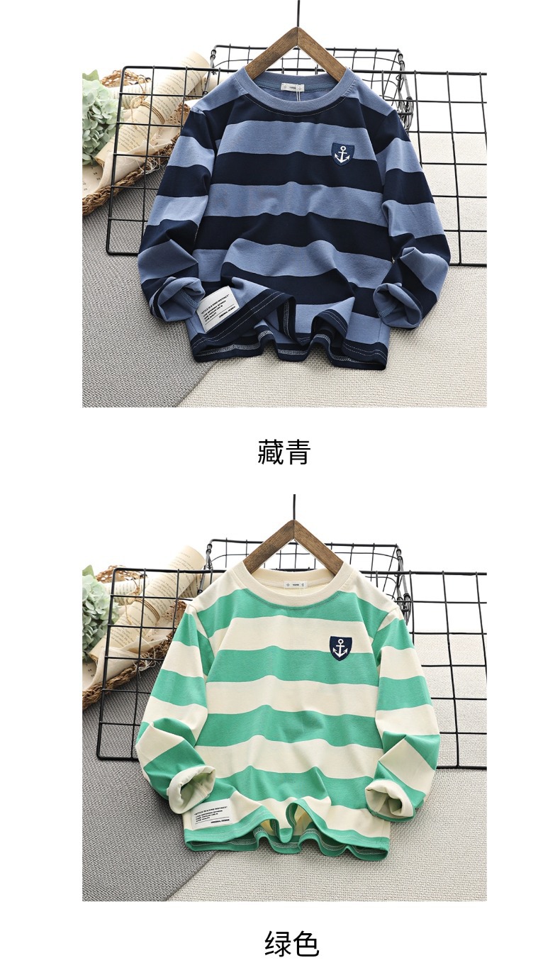 소년 긴팔 티셔츠 순수 코튼 스트라이프 2025 새로운 봄, 가을 중대형 어린이 라운드 넥 바닥 셔츠 소프트 탑스토어 가기