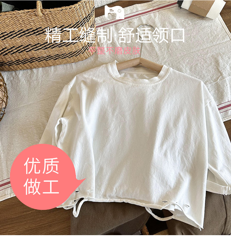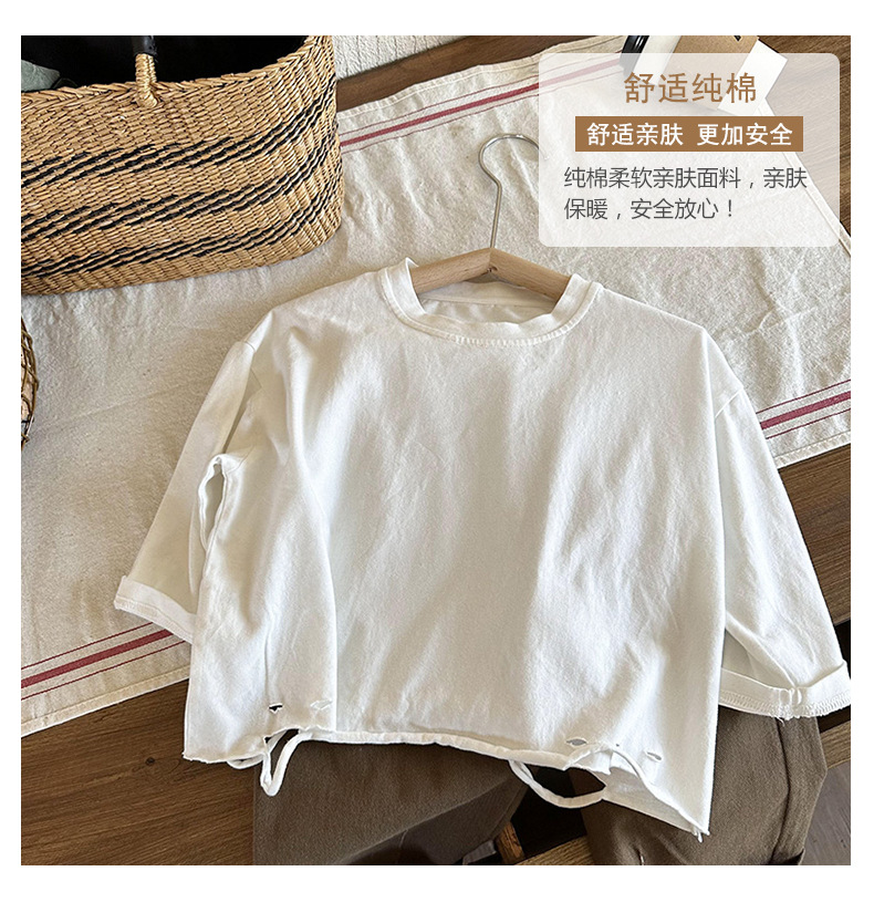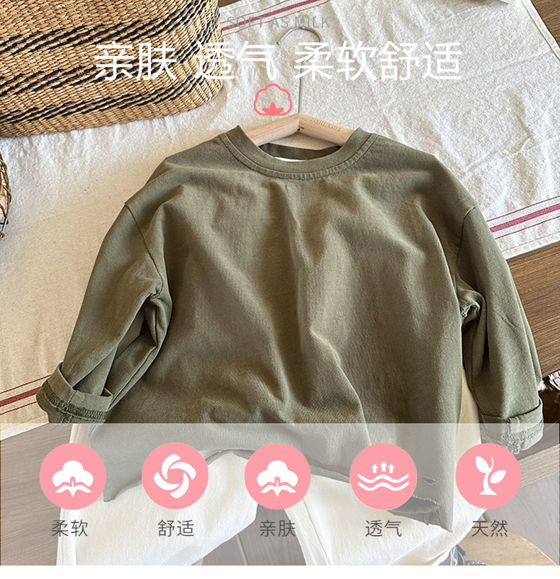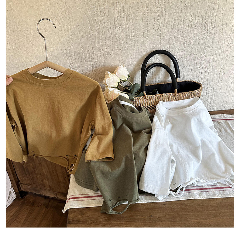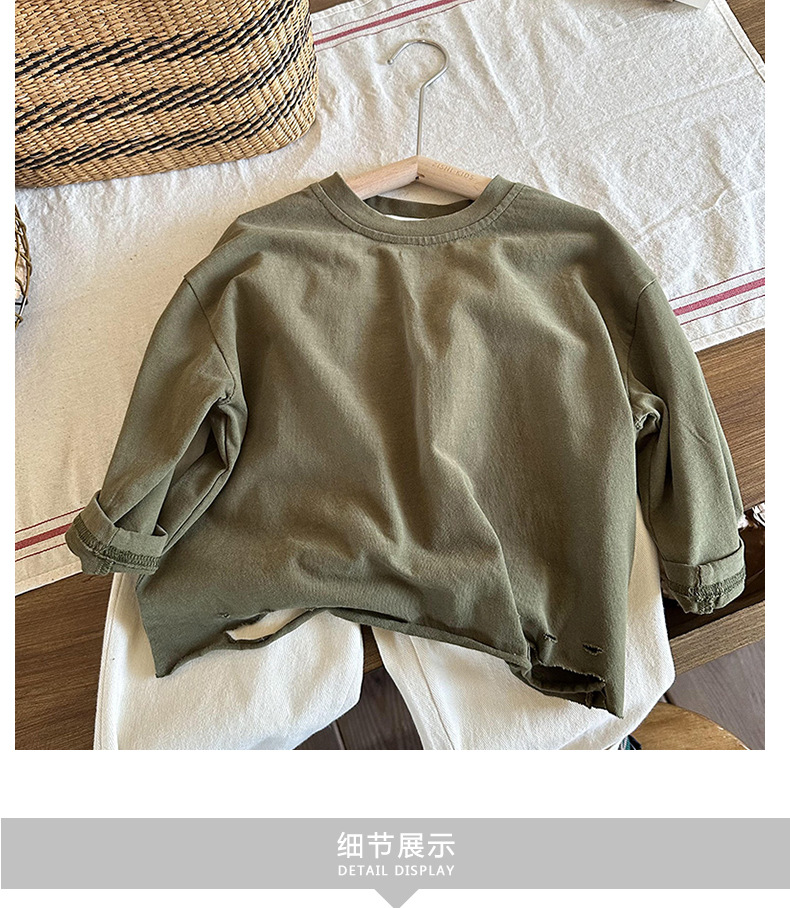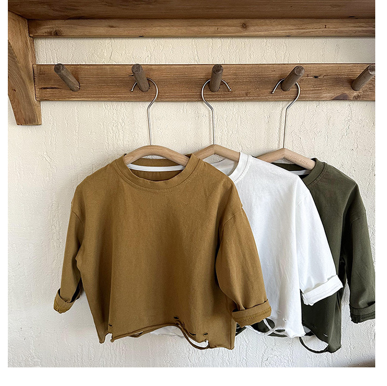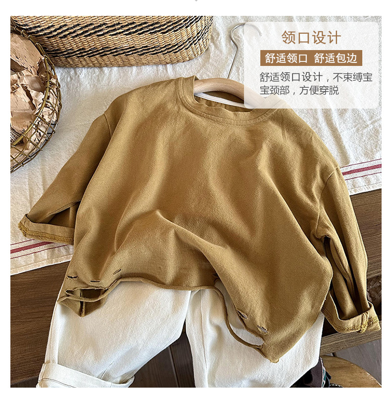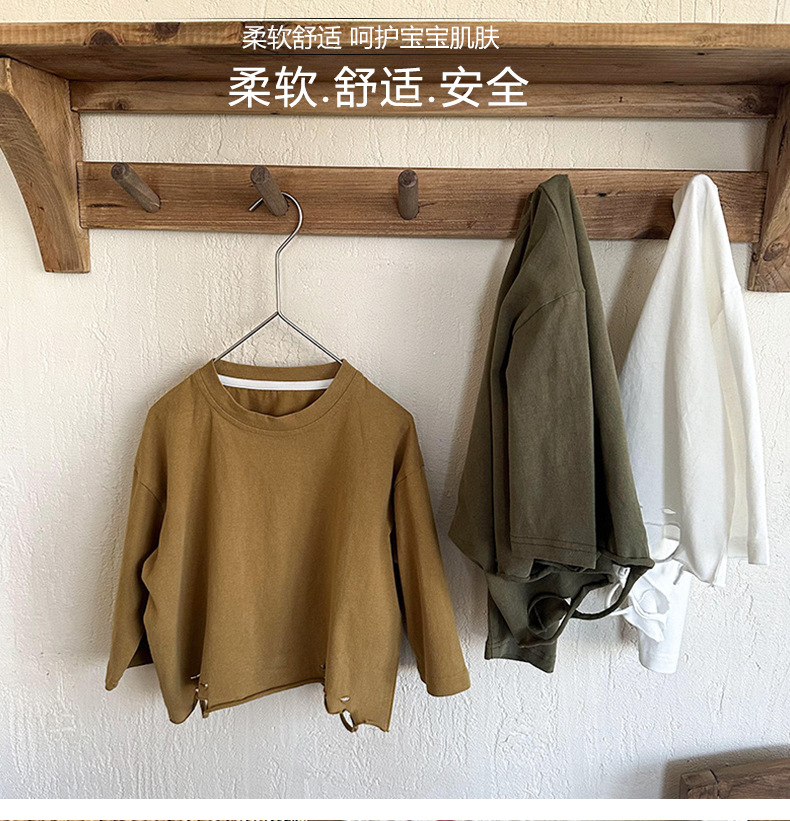 남아용 긴팔 하의 셔츠, 2023년 봄, 가을 여아용 한국식 단색 상의, 아동용 찢어진 티셔츠, 봄, 가을 신상품스토어 가기