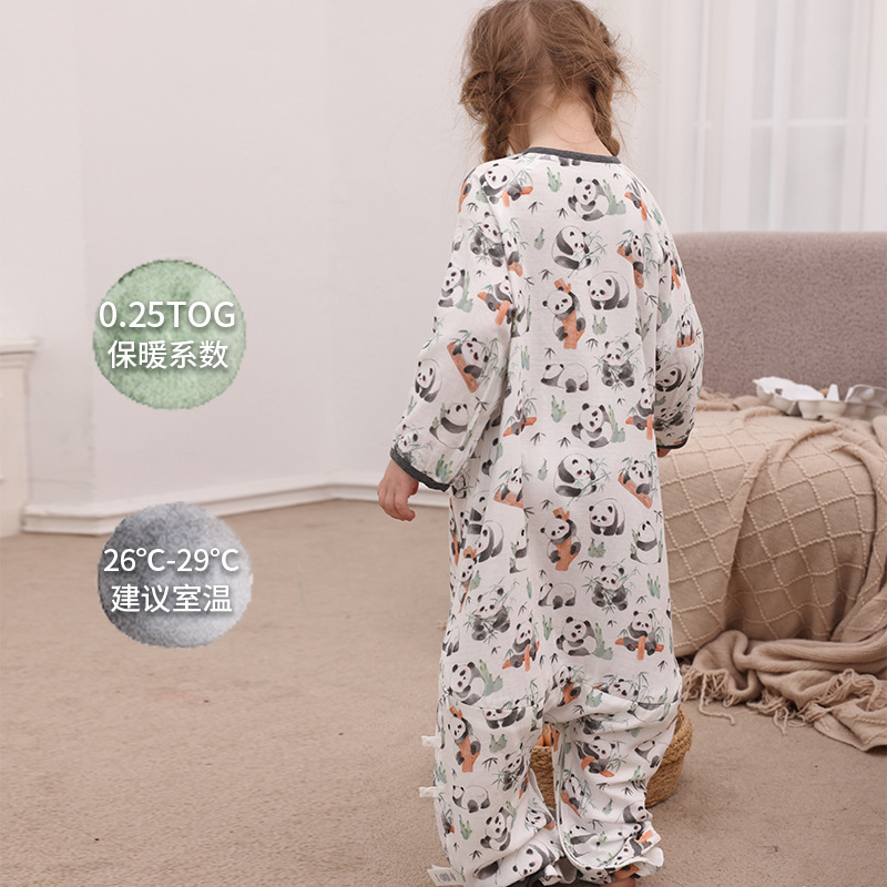 아기 침낭 이중층 대나무 면 거즈 어린이 봄, 가을, 여름 스타일 7부 소매 아기 다리 분리형 통기성 및 땀 흡수성