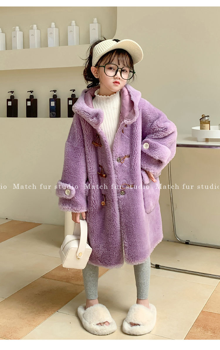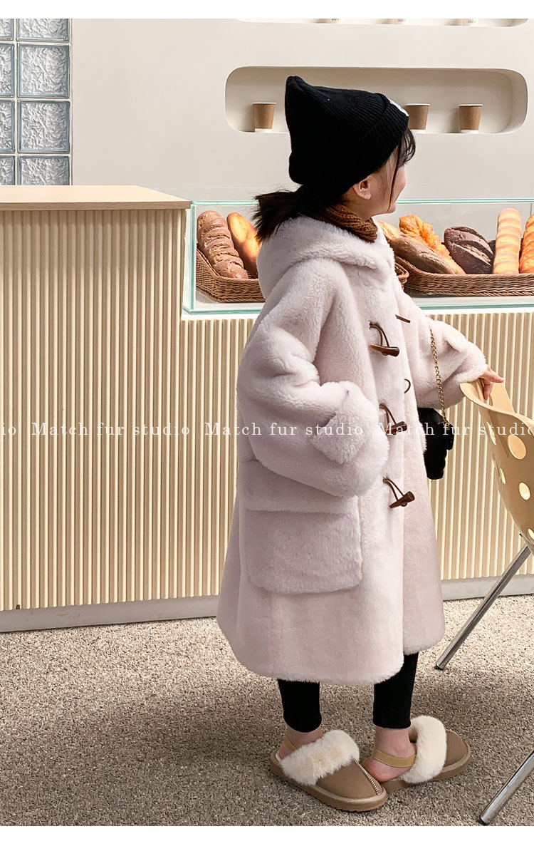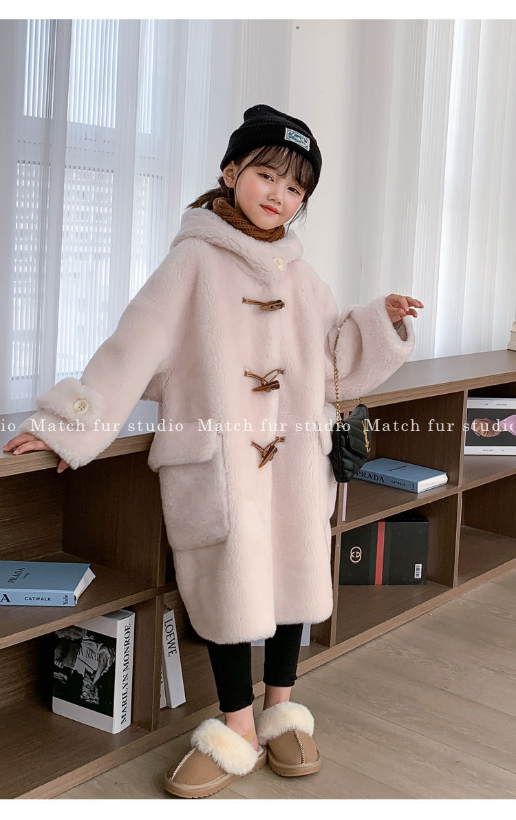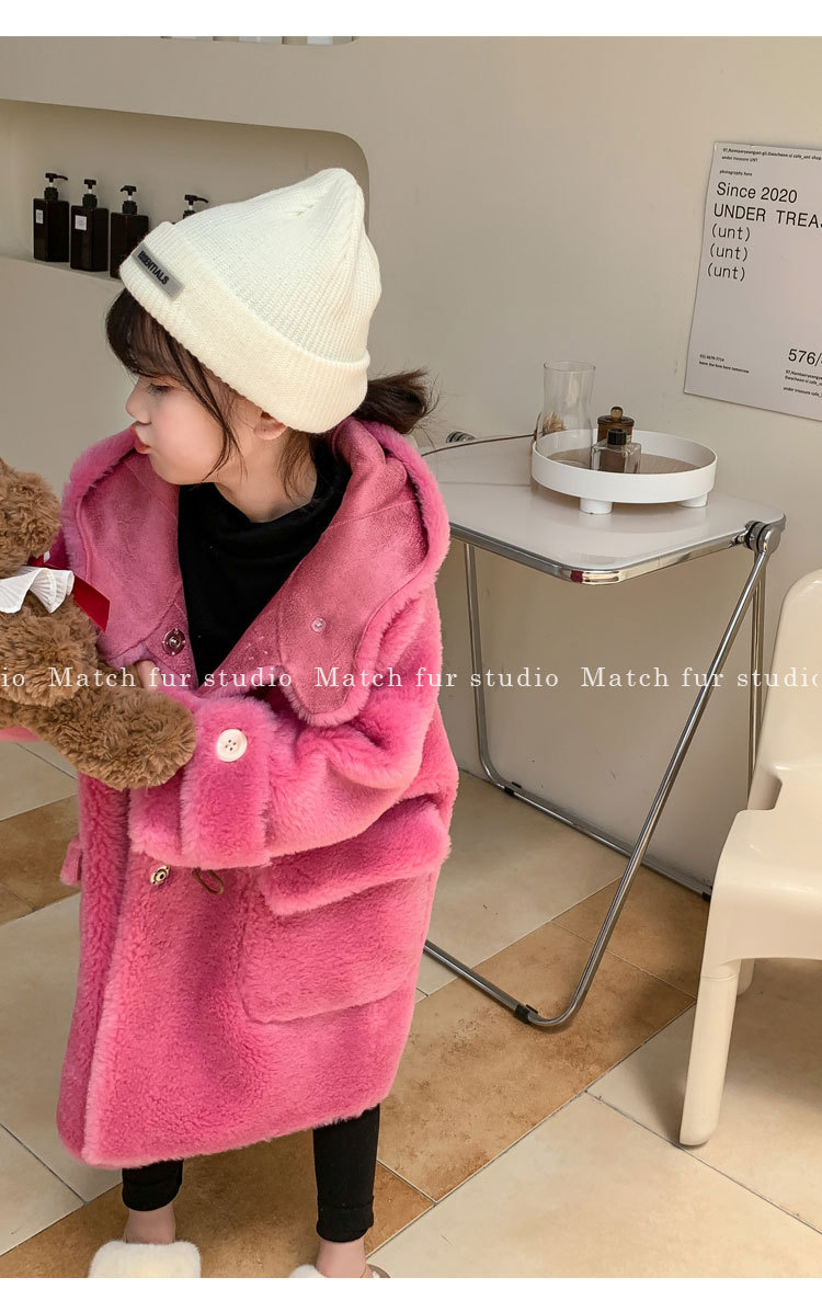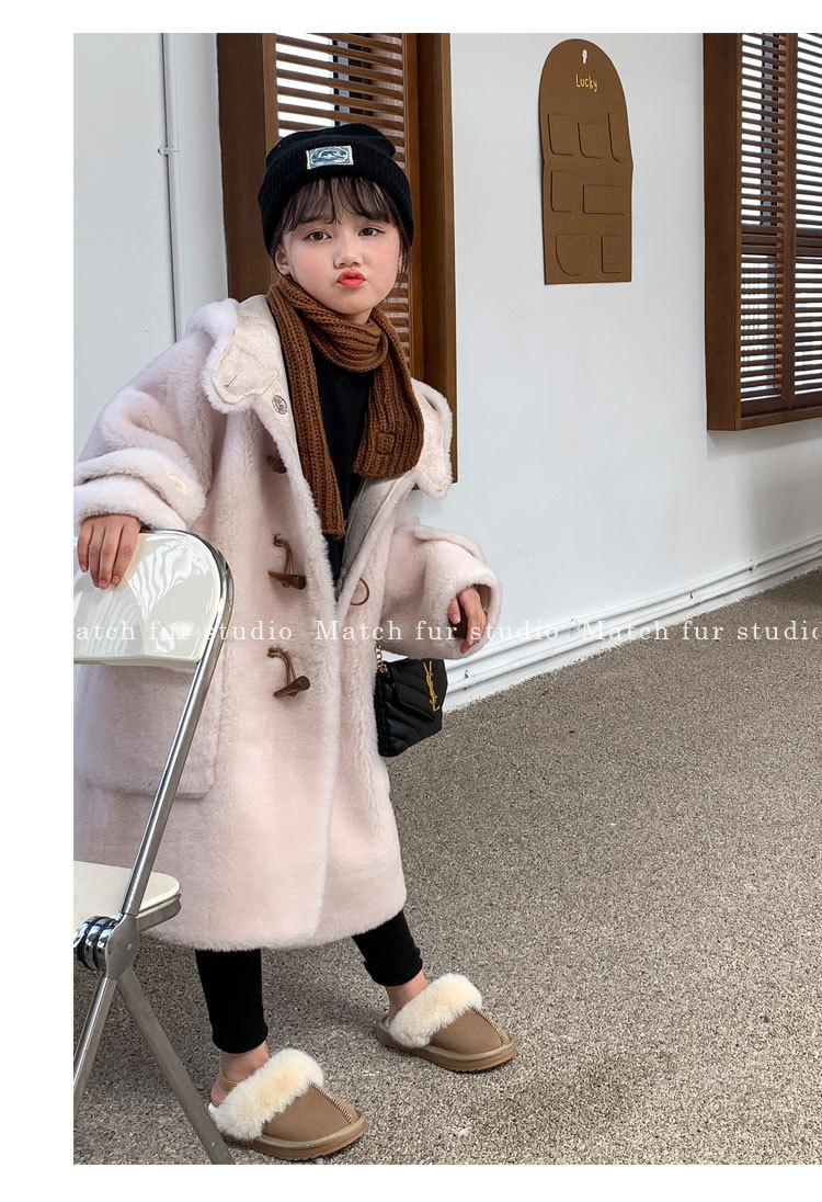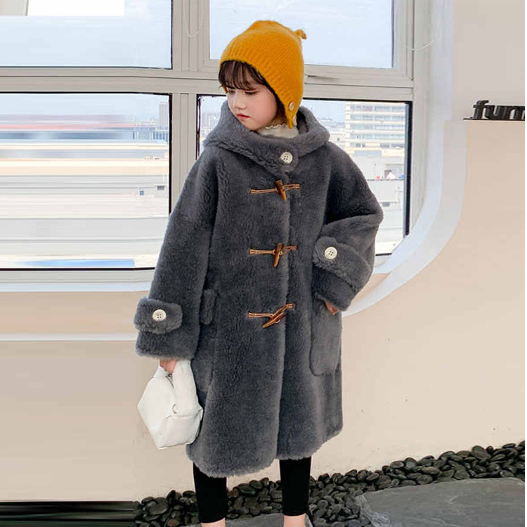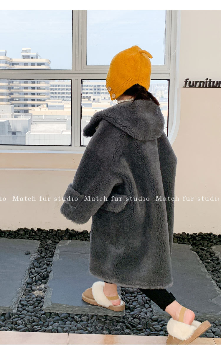 울 아동 모피 코트 모피 원피스 롱 여아 남성용 램 울 전단 코트 트렌디스토어 가기