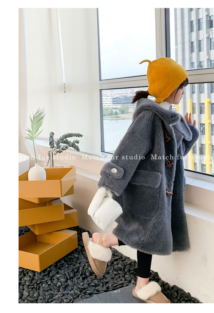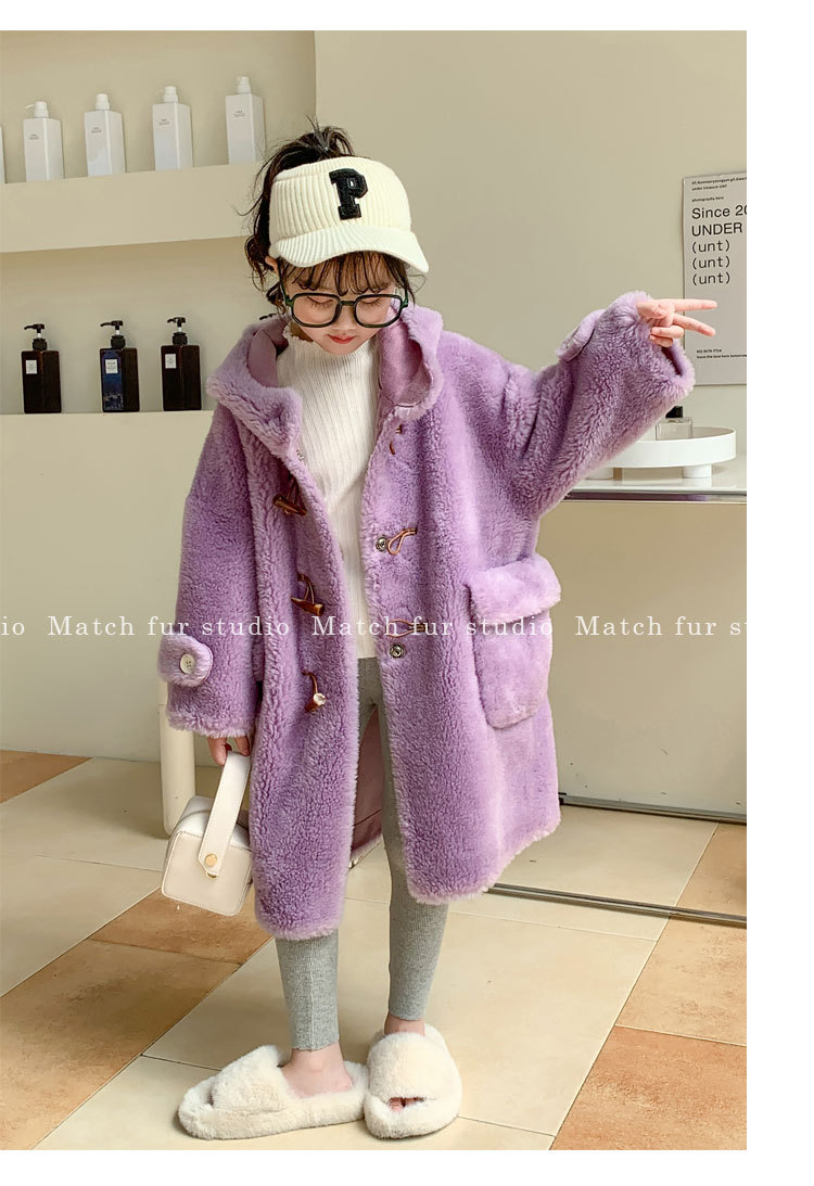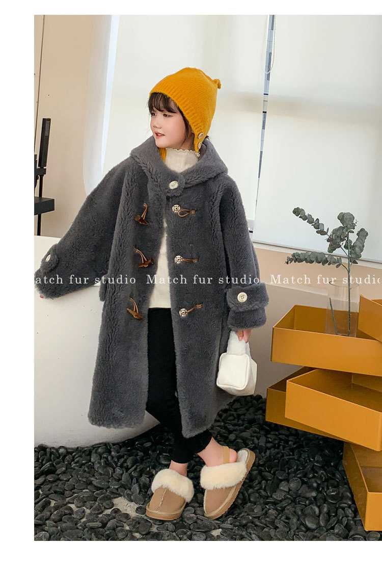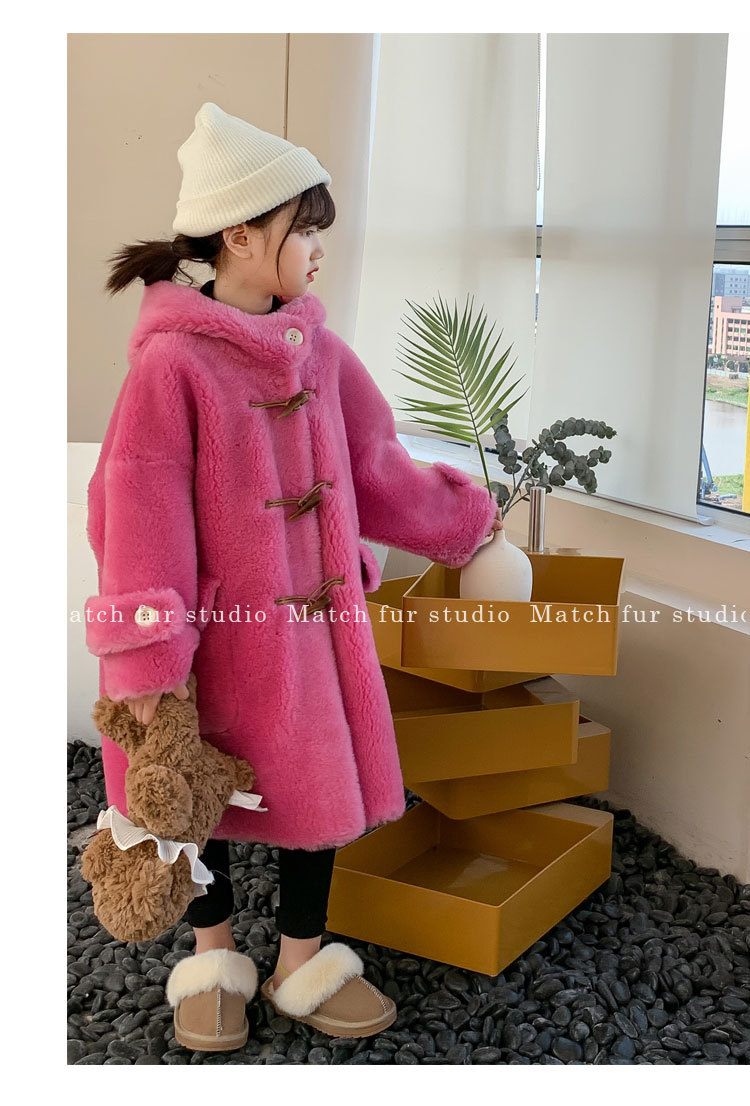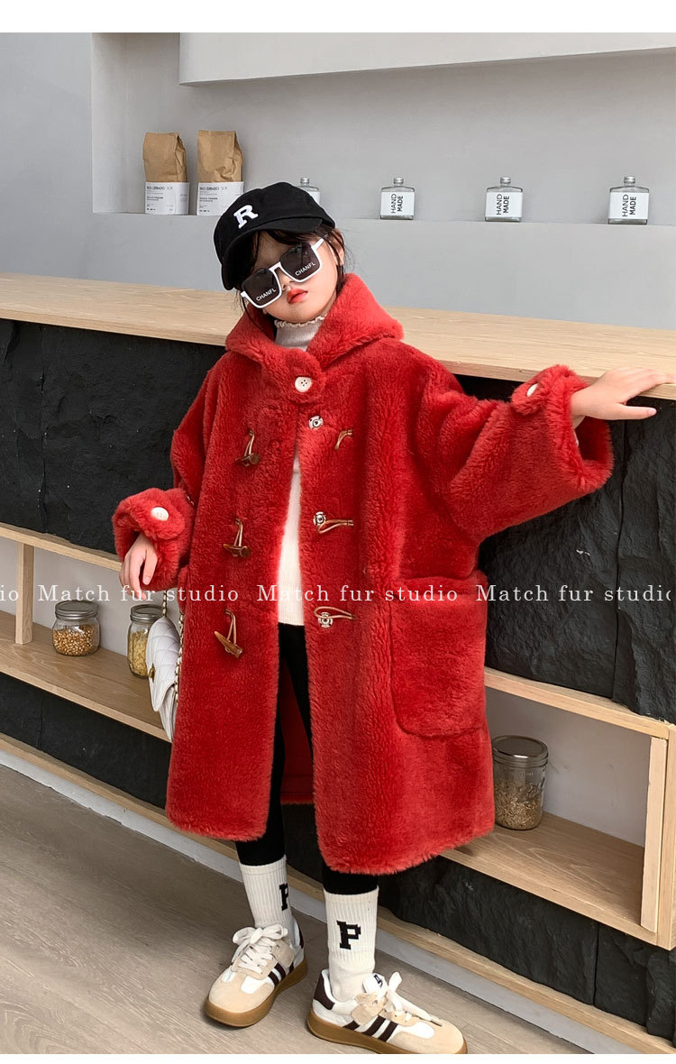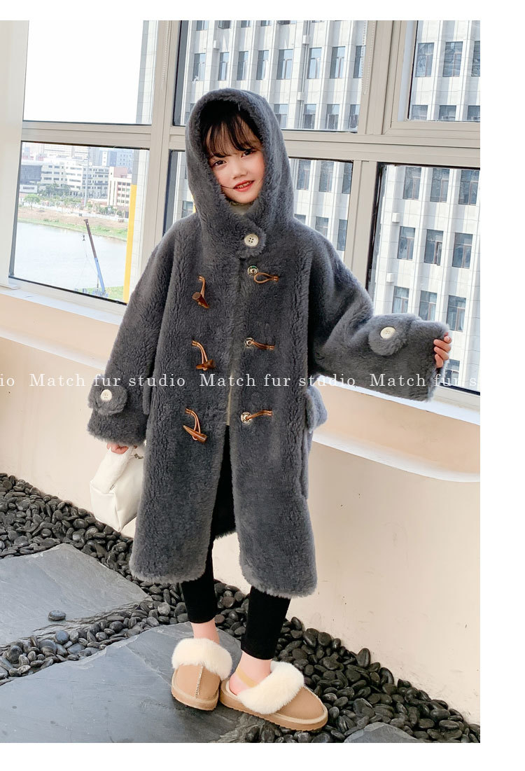 울 아동 모피 코트 모피 원피스 롱 여아 남성용 램 울 전단 코트 트렌디스토어 가기