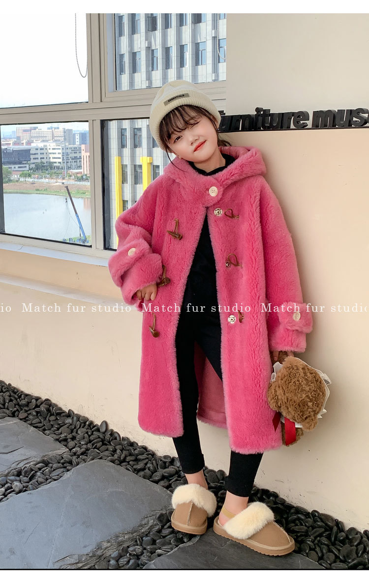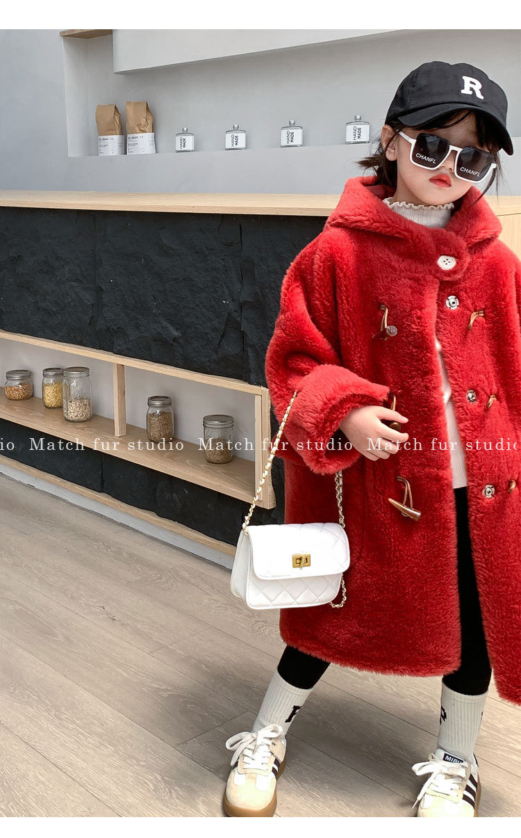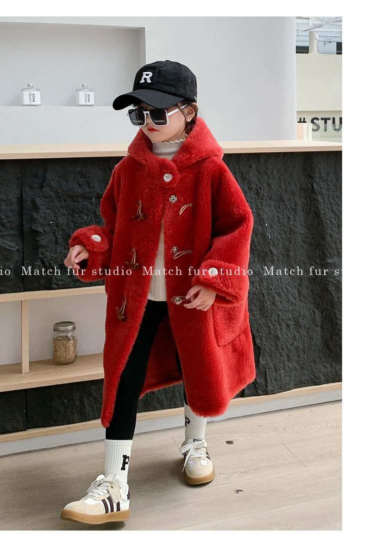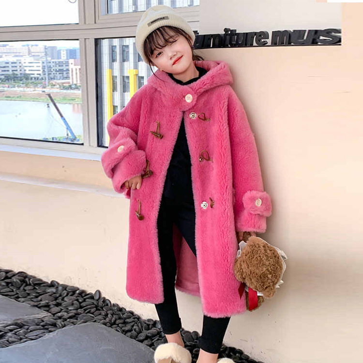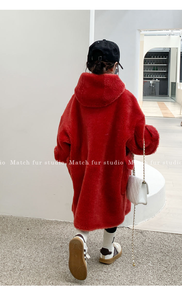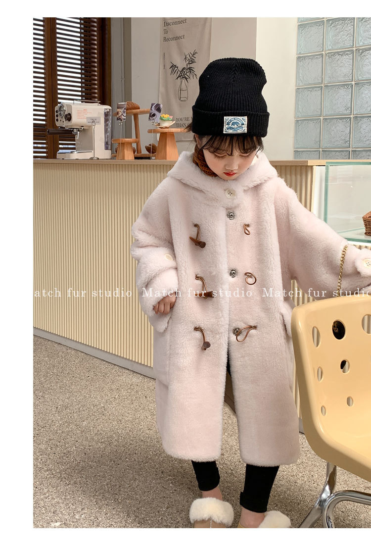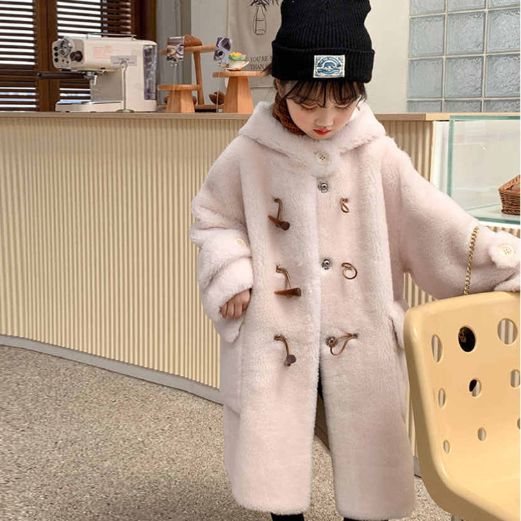 울 아동 모피 코트 모피 원피스 롱 여아 남성용 램 울 전단 코트 트렌디스토어 가기