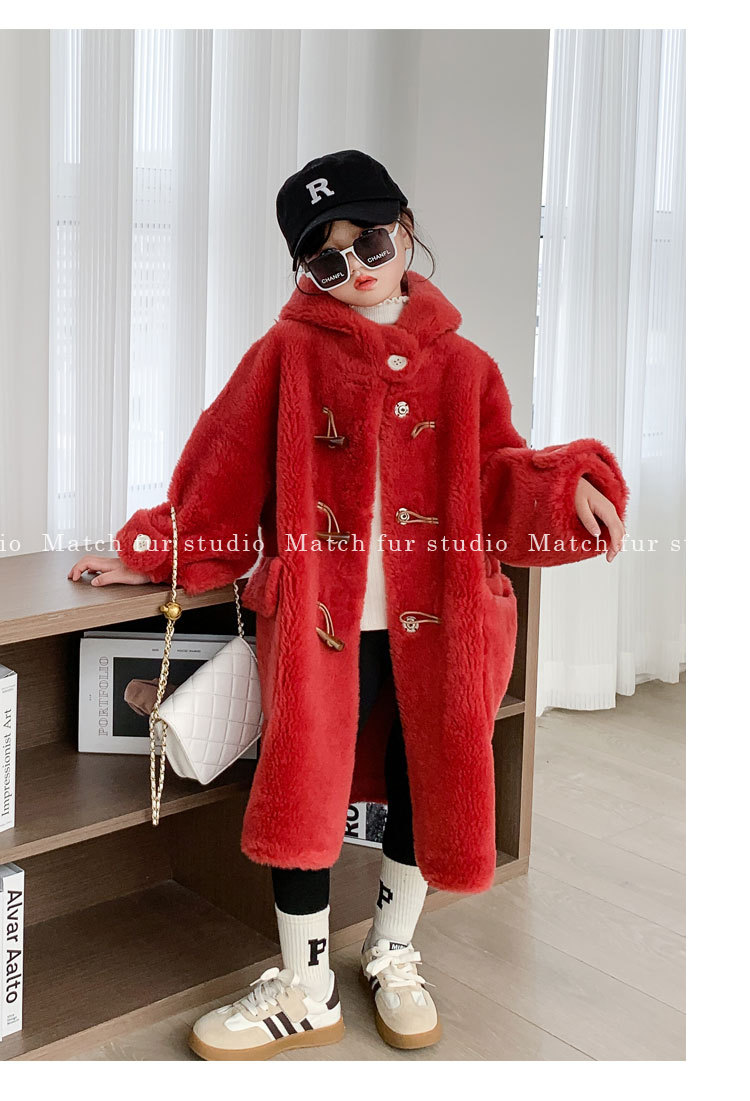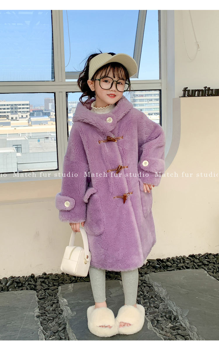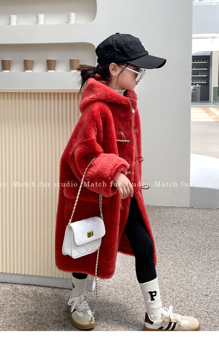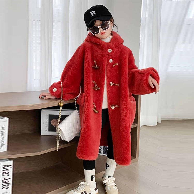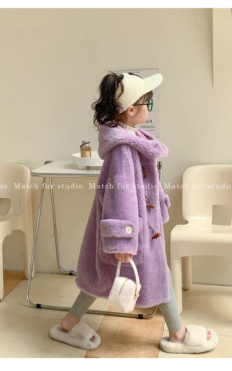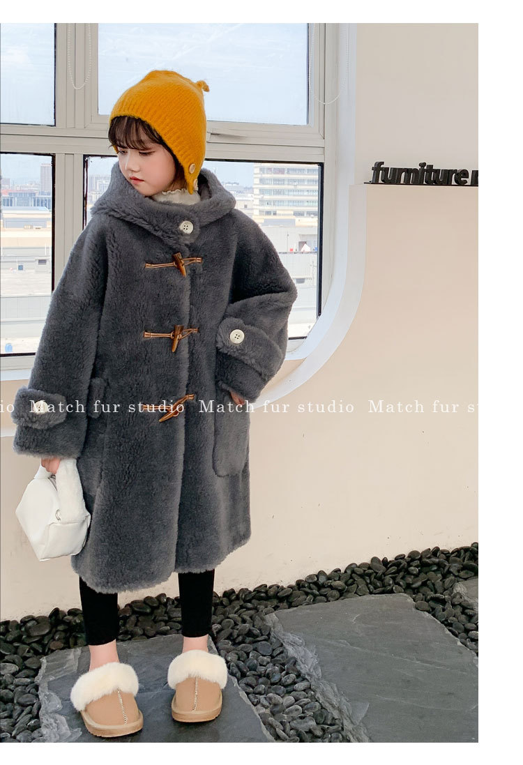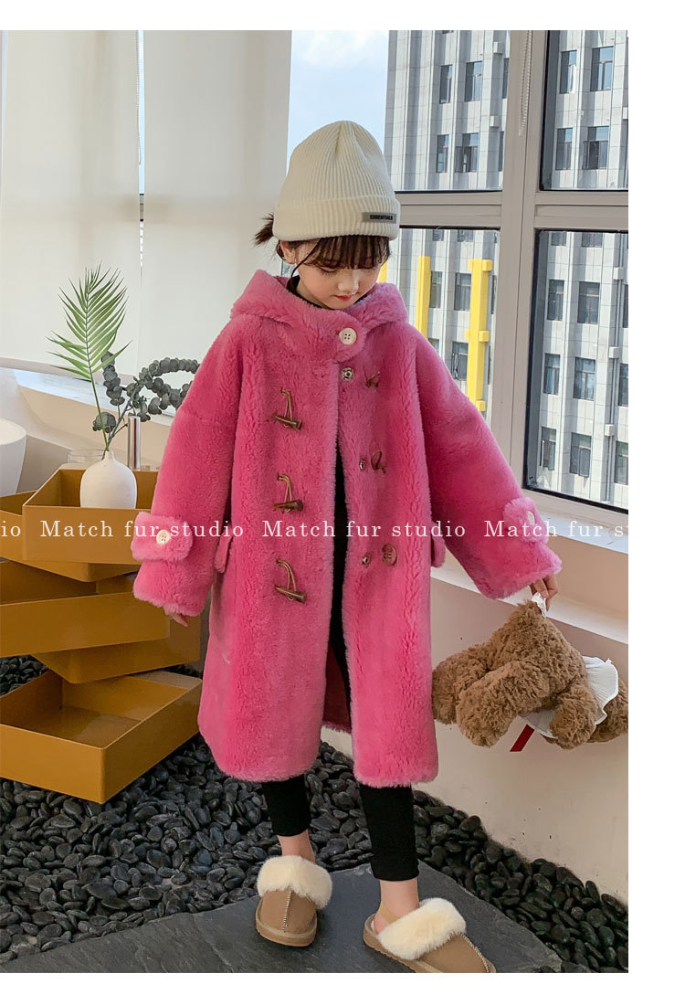 울 아동 모피 코트 모피 원피스 롱 여아 남성용 램 울 전단 코트 트렌디스토어 가기