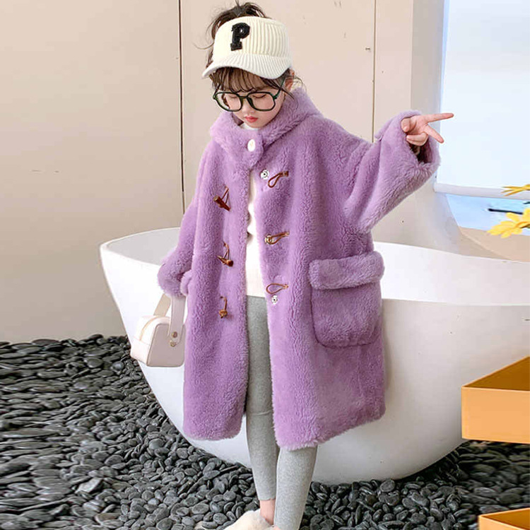 울 아동 모피 코트 모피 원피스 롱 여아 남성용 램 울 전단 코트 트렌디