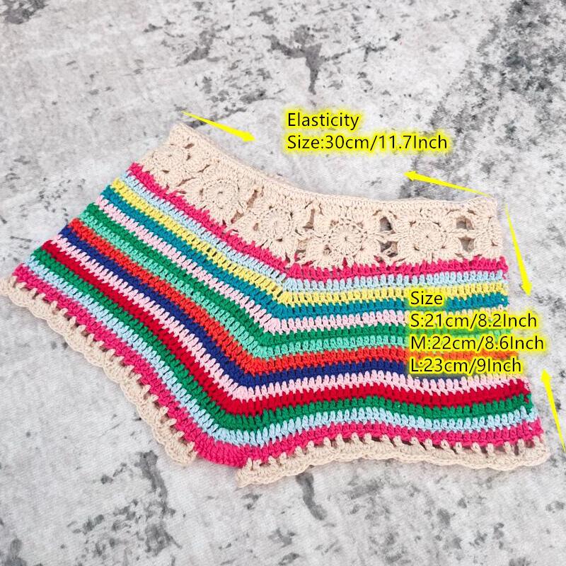 Handmade Attractive Women Openwork Crochet Shorts Stretch Waist Casual Beach Bandage Hot Pants