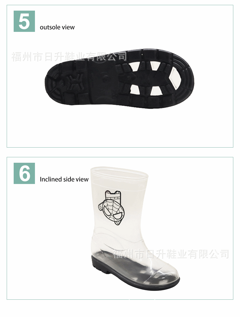 남학생과 여학생을 위한 제조업체 도매 맞춤형 어린이 장화, PVC 대외 무역 유럽과 미국의 투명 방수 신발 Rainshoes