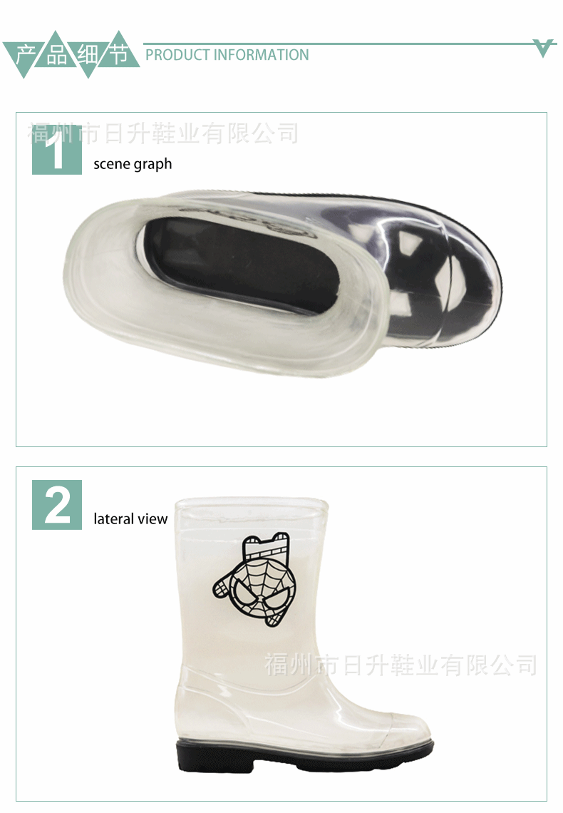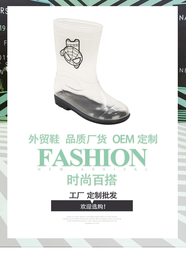 남학생과 여학생을 위한 제조업체 도매 맞춤형 어린이 장화, PVC 대외 무역 유럽과 미국의 투명 방수 신발 Rainshoes스토어 가기