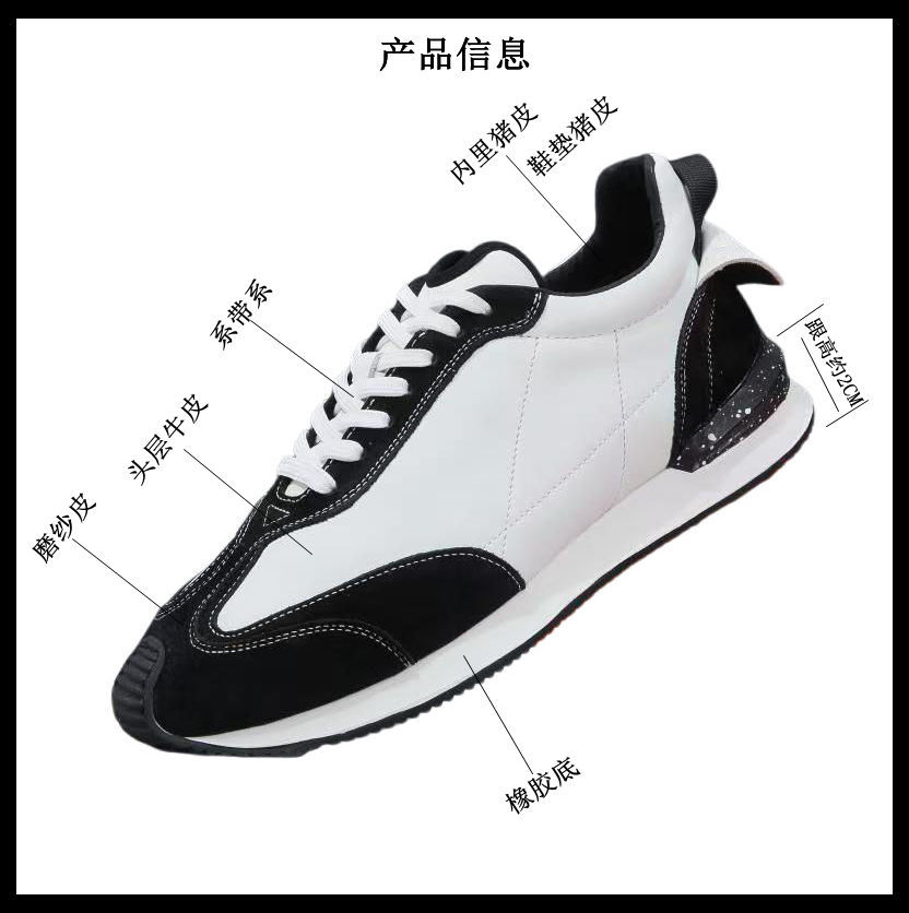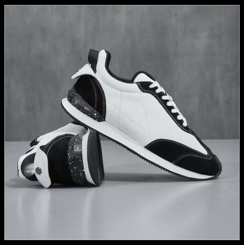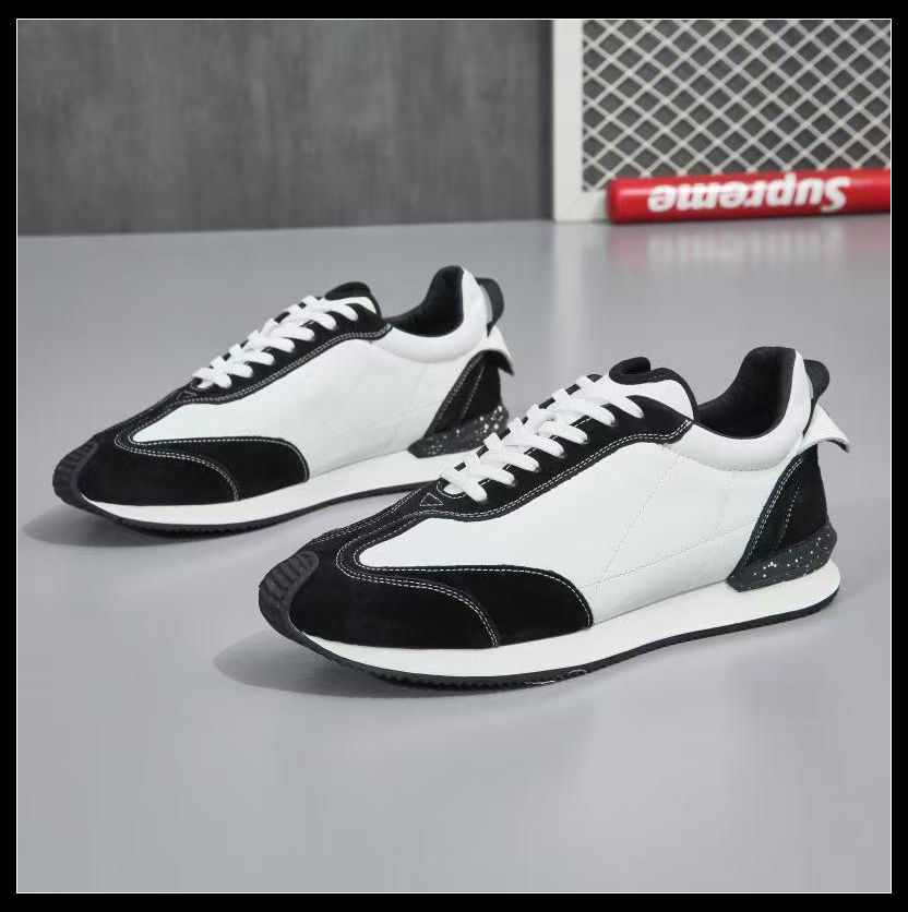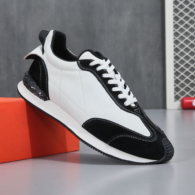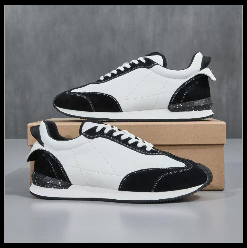 일본 스타일 스포츠 캐주얼 2025 신상 봄 트렌드 남성용 가죽 흑백 배색 조깅화 가벼운 키높이 운동화스토어 가기