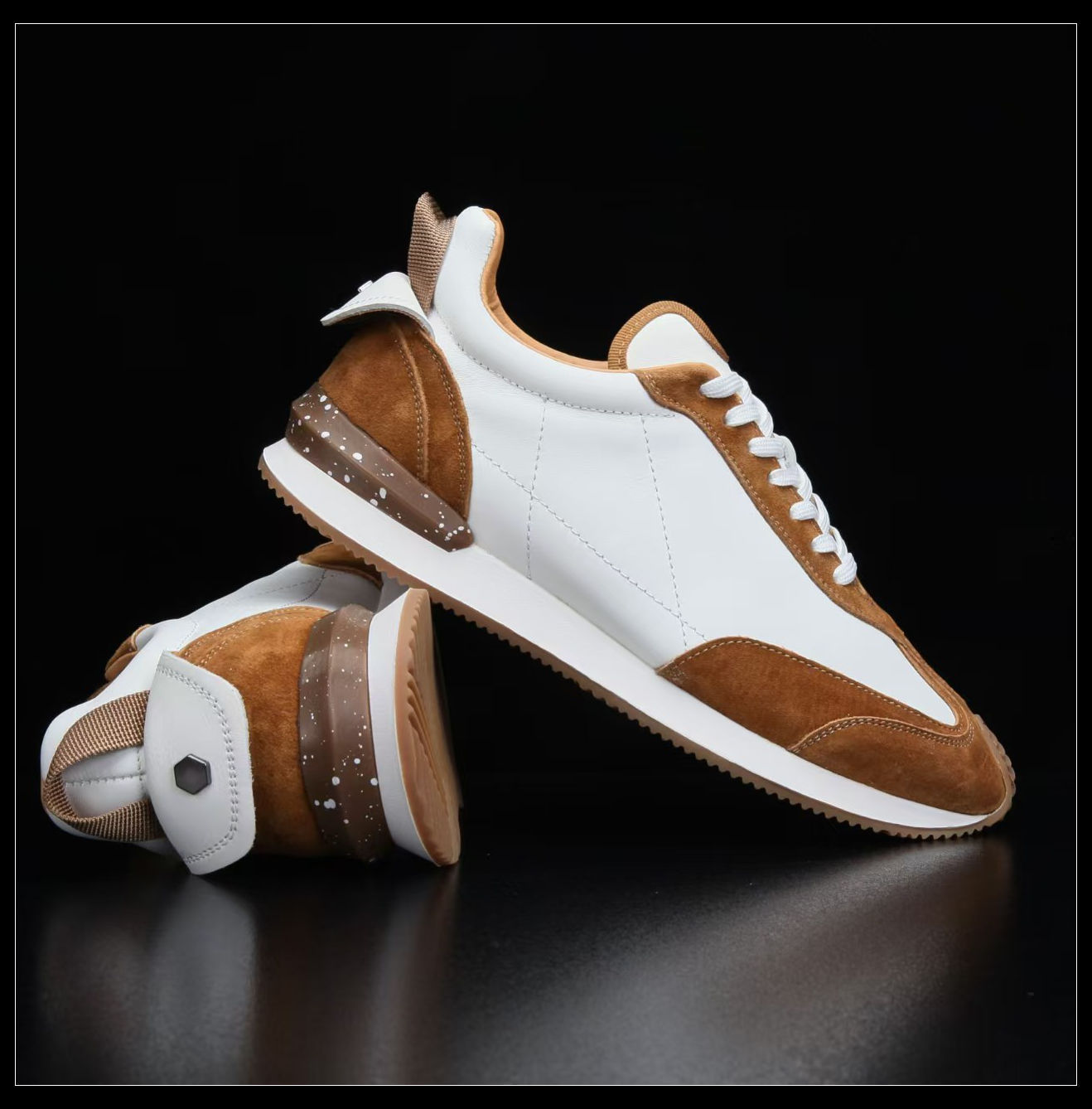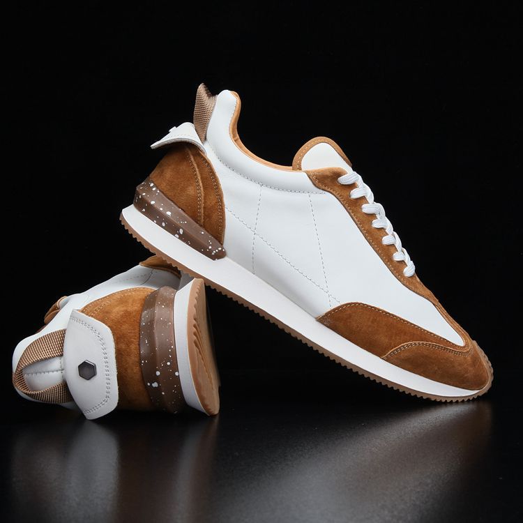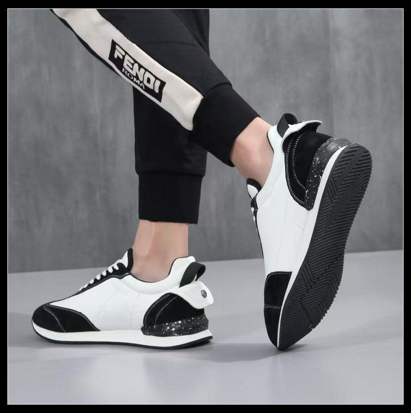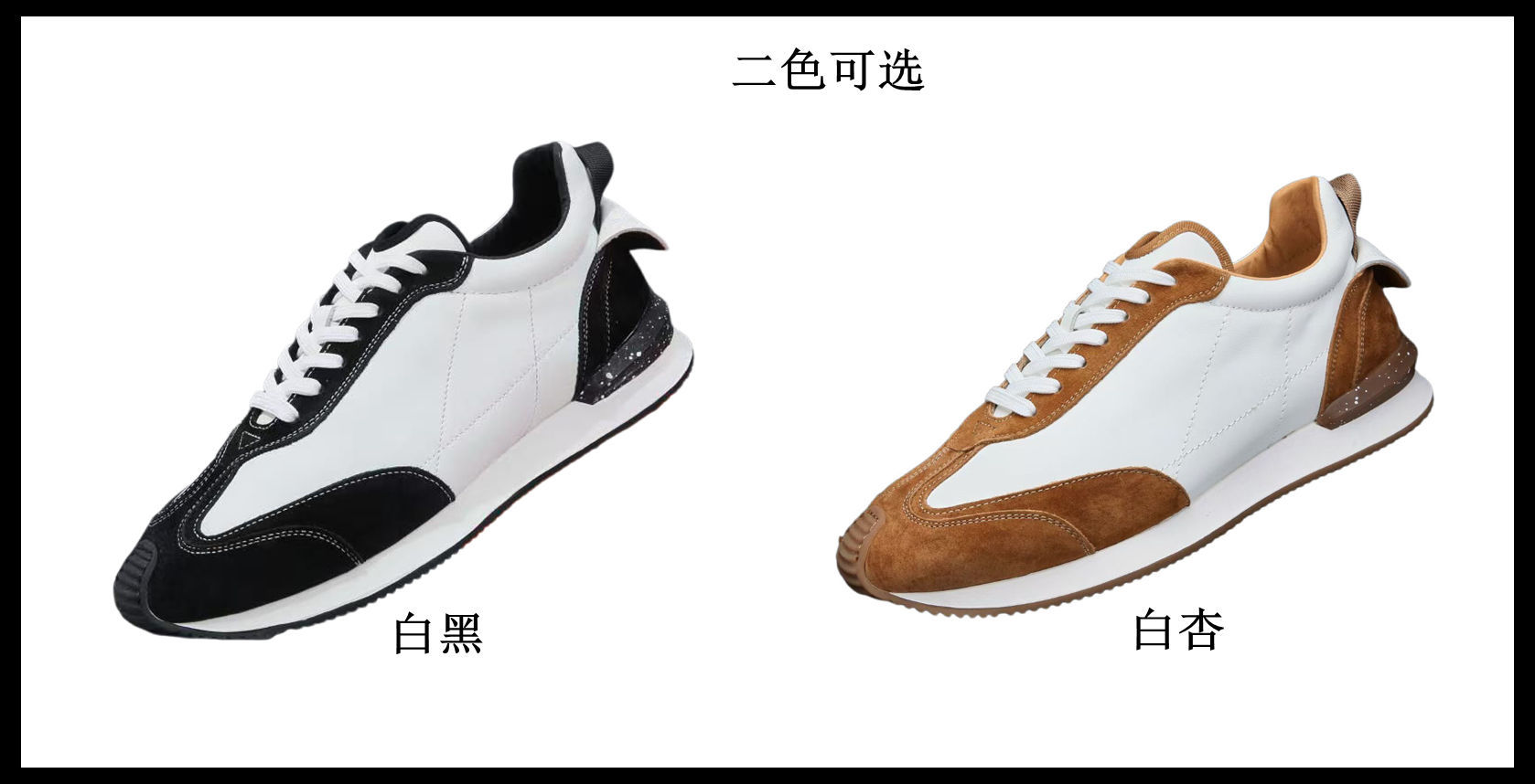 일본 스타일 스포츠 캐주얼 2025 신상 봄 트렌드 남성용 가죽 흑백 배색 조깅화 가벼운 키높이 운동화스토어 가기