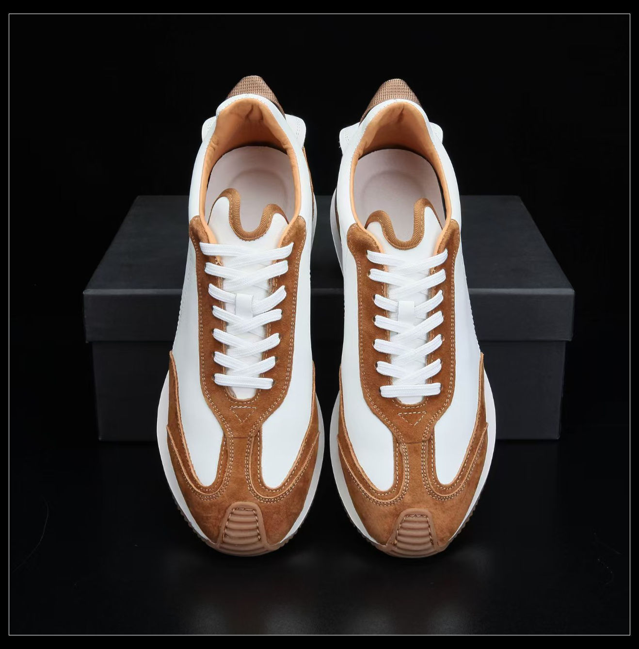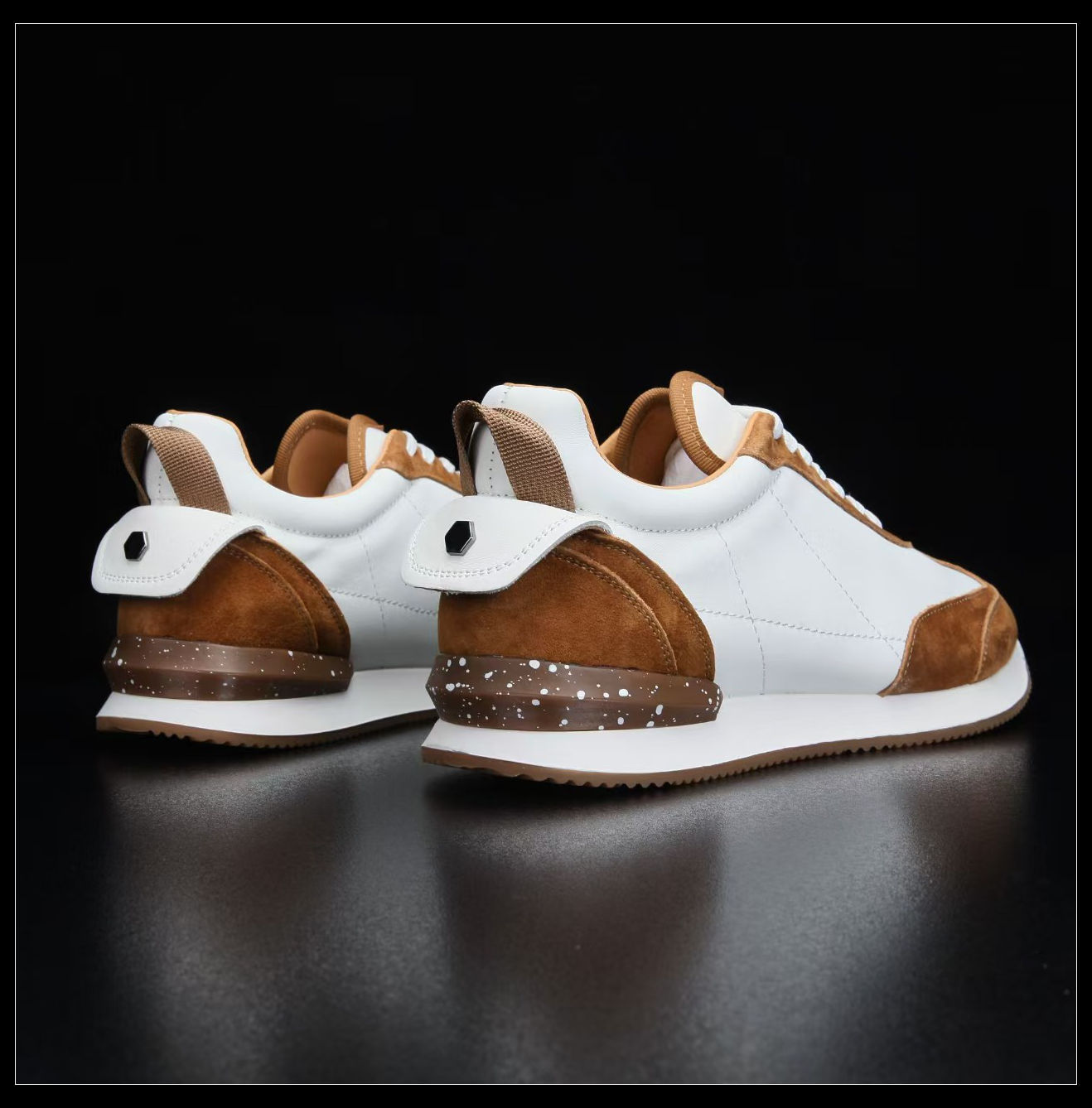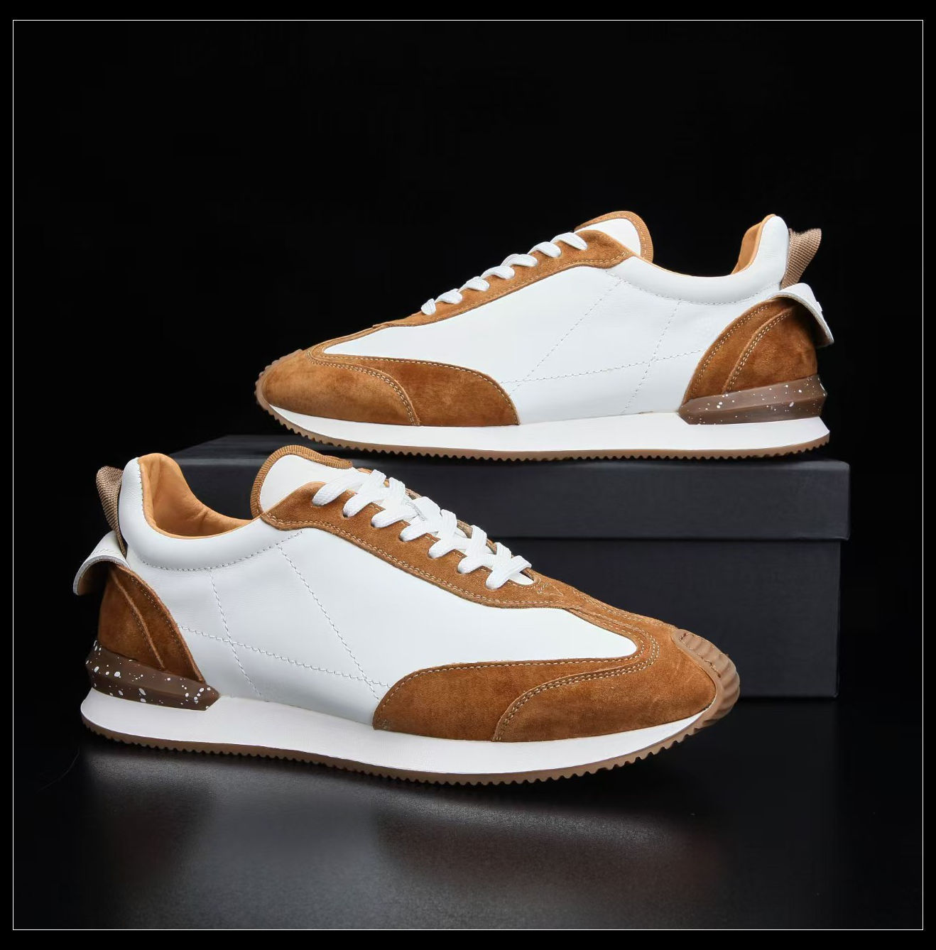일본 스타일 스포츠 캐주얼 2025 신상 봄 트렌드 남성용 가죽 흑백 배색 조깅화 가벼운 키높이 운동화