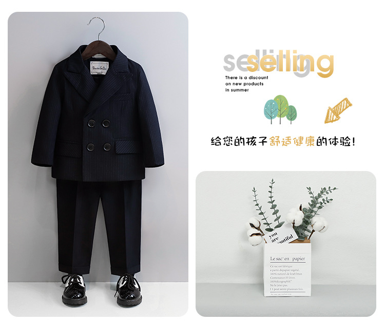 어린이 원피스 봄 새로운 영국 스트라이프 세트 세트 아기 한 살짜리 의상 소년 꽃 소녀 원피스스토어 가기