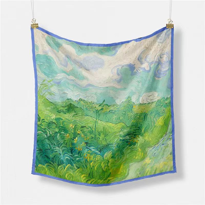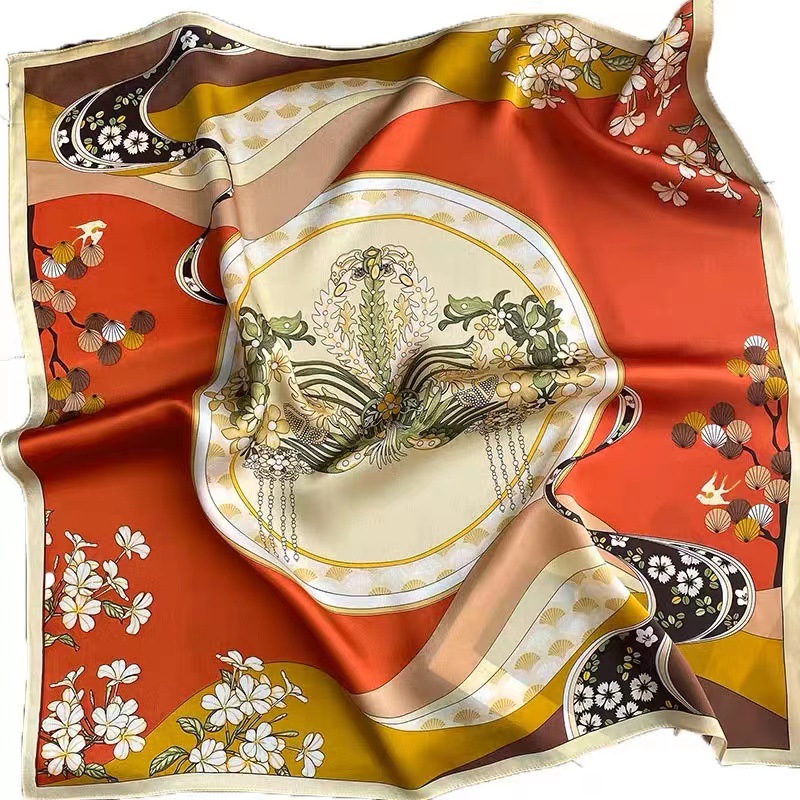 작은 실크 스카프 봄 여름 가을 한국 스타일 인쇄 줄무늬 스카프 목 보호 외국 스타일 목도리 스카프 장식 얇은 광장 스카프스토어 가기