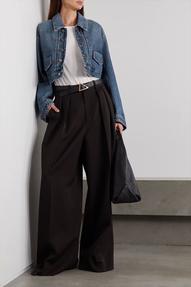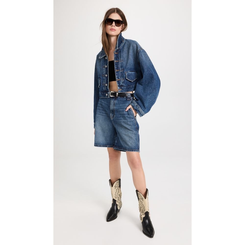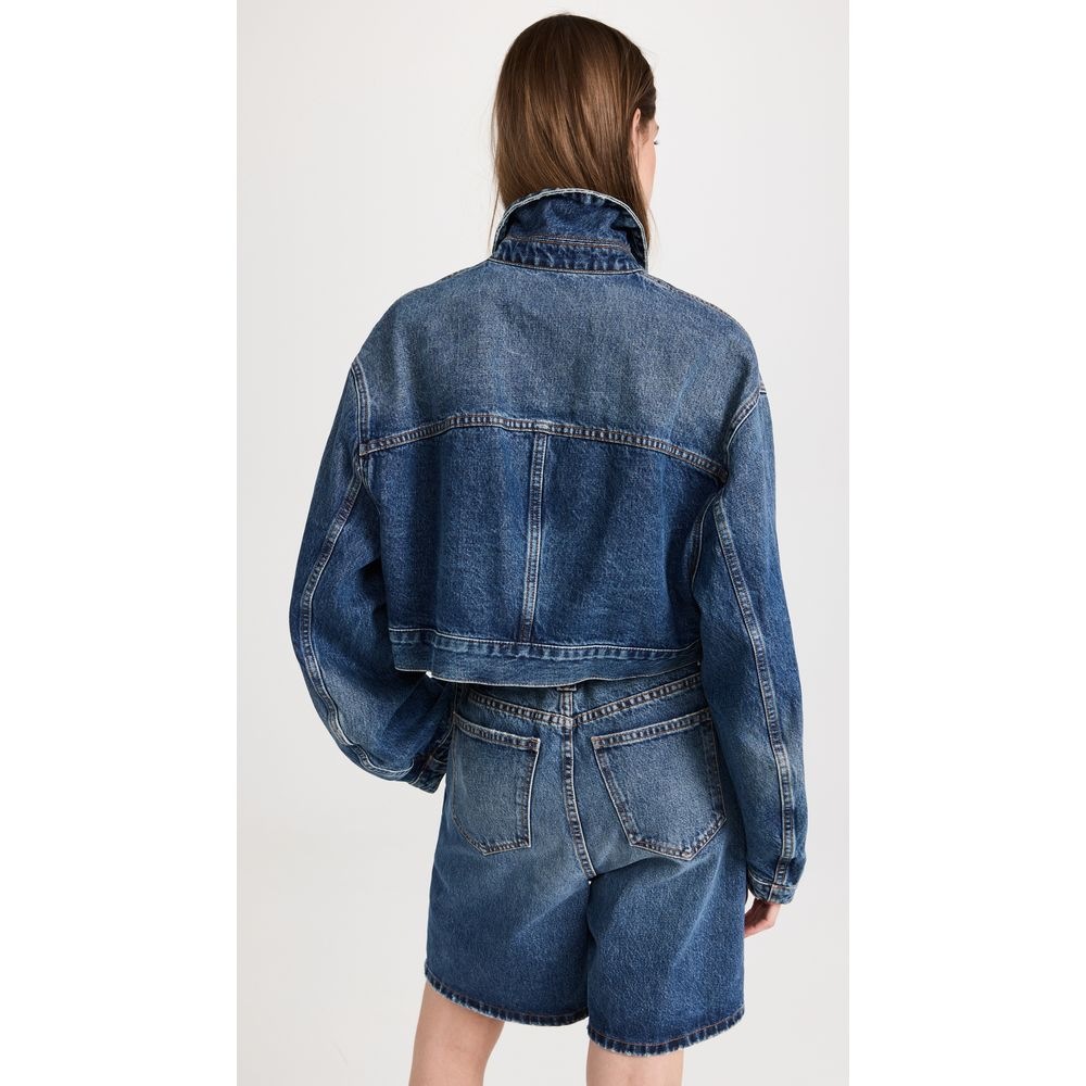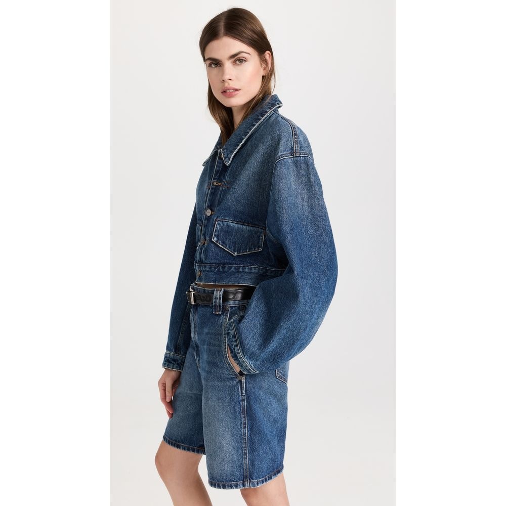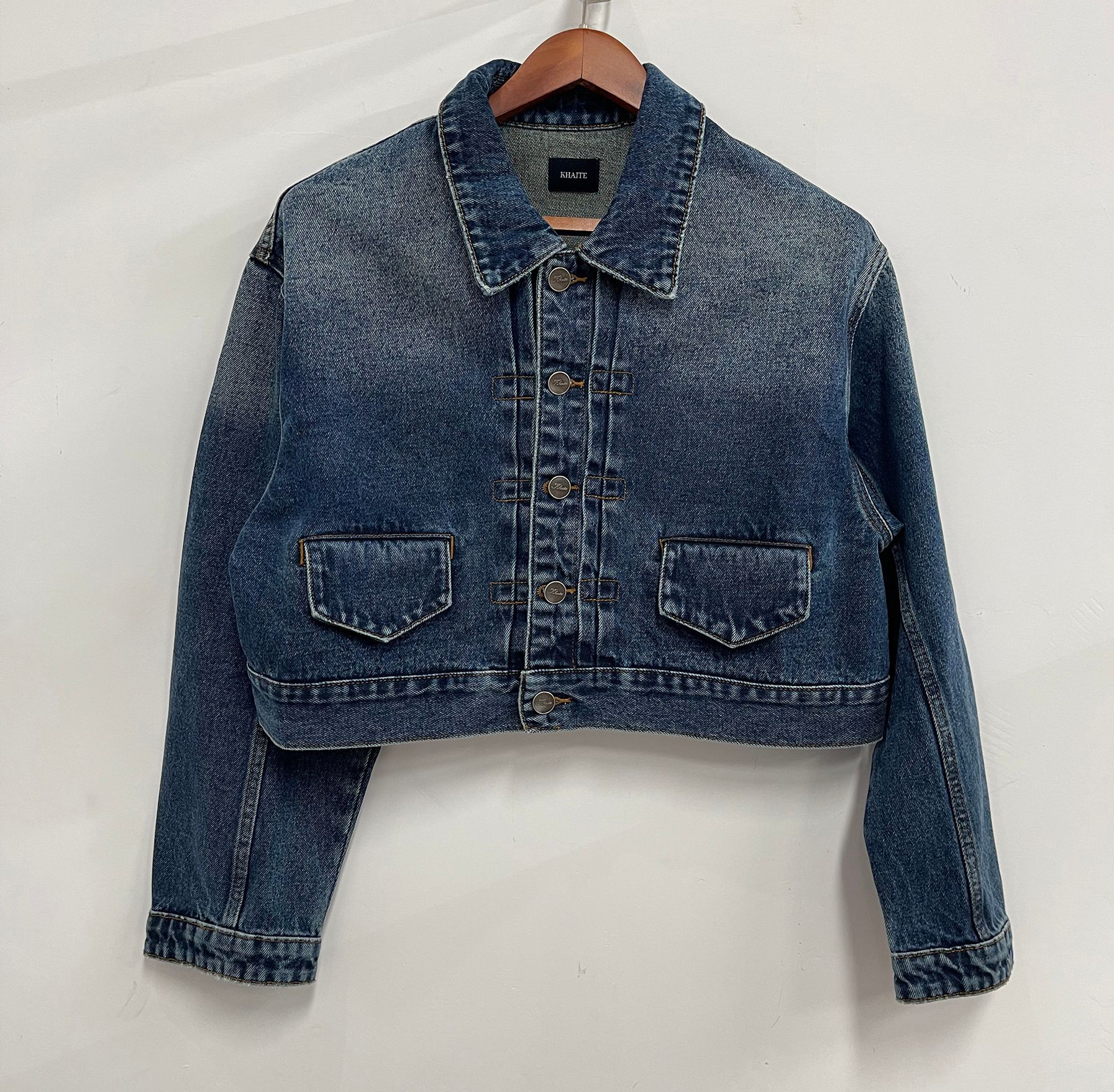 2023 이른 봄 새로운 유럽과 미국 KHAITE 같은 스타일 다크 블루 짧은 긴 소매 데님 재킷 데님 코트 여성