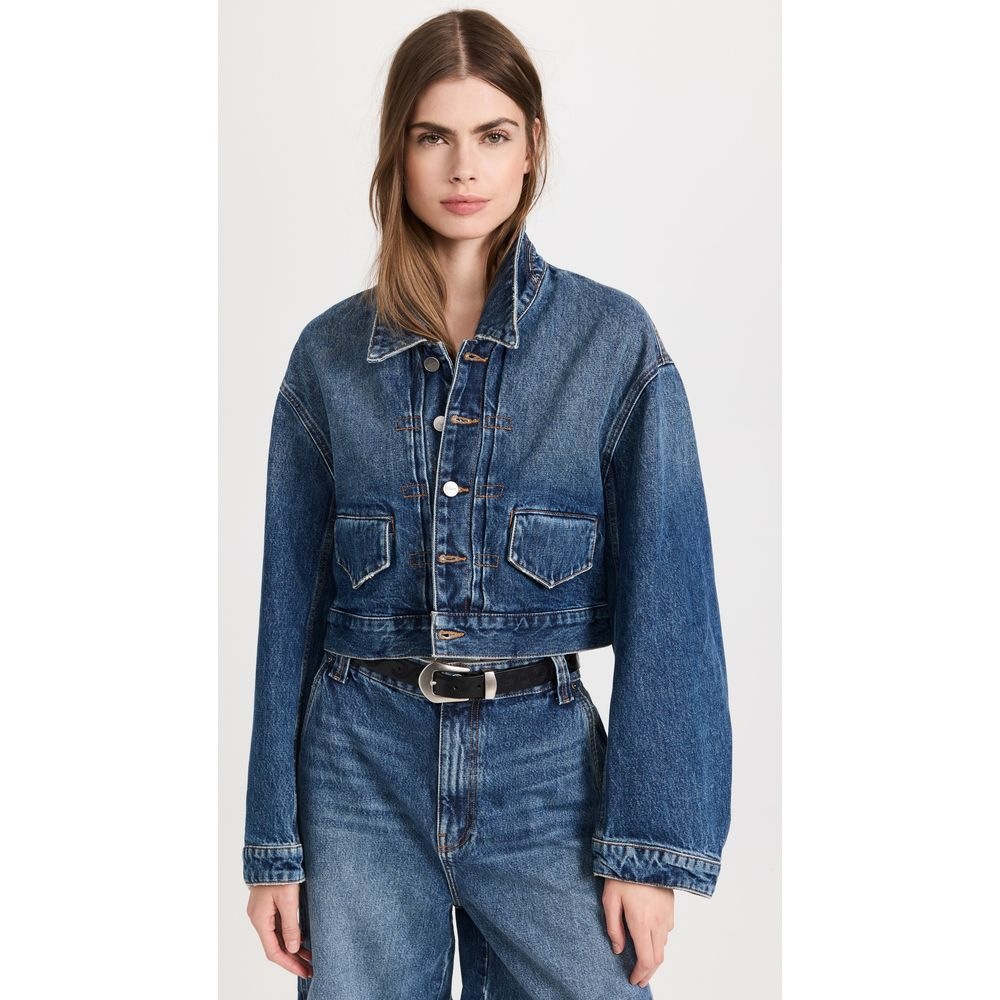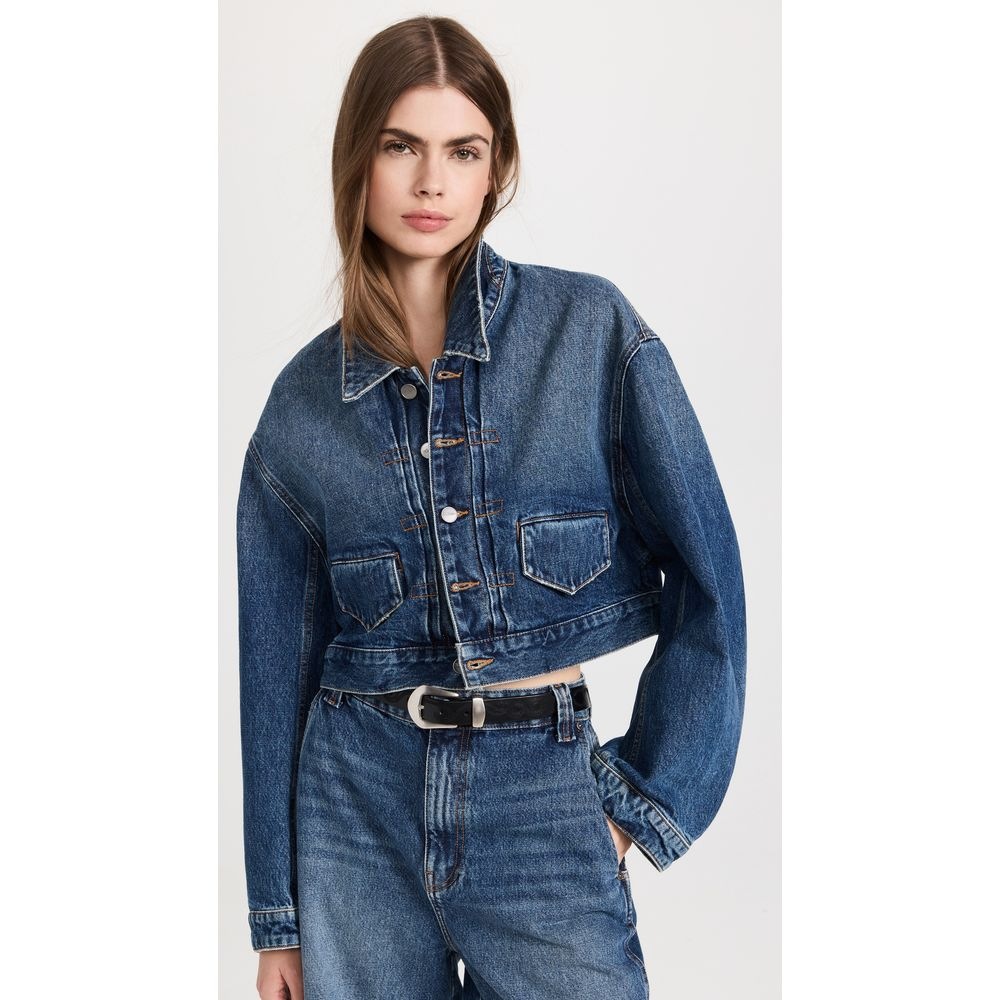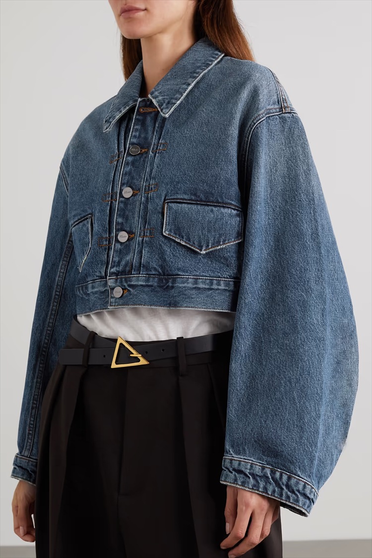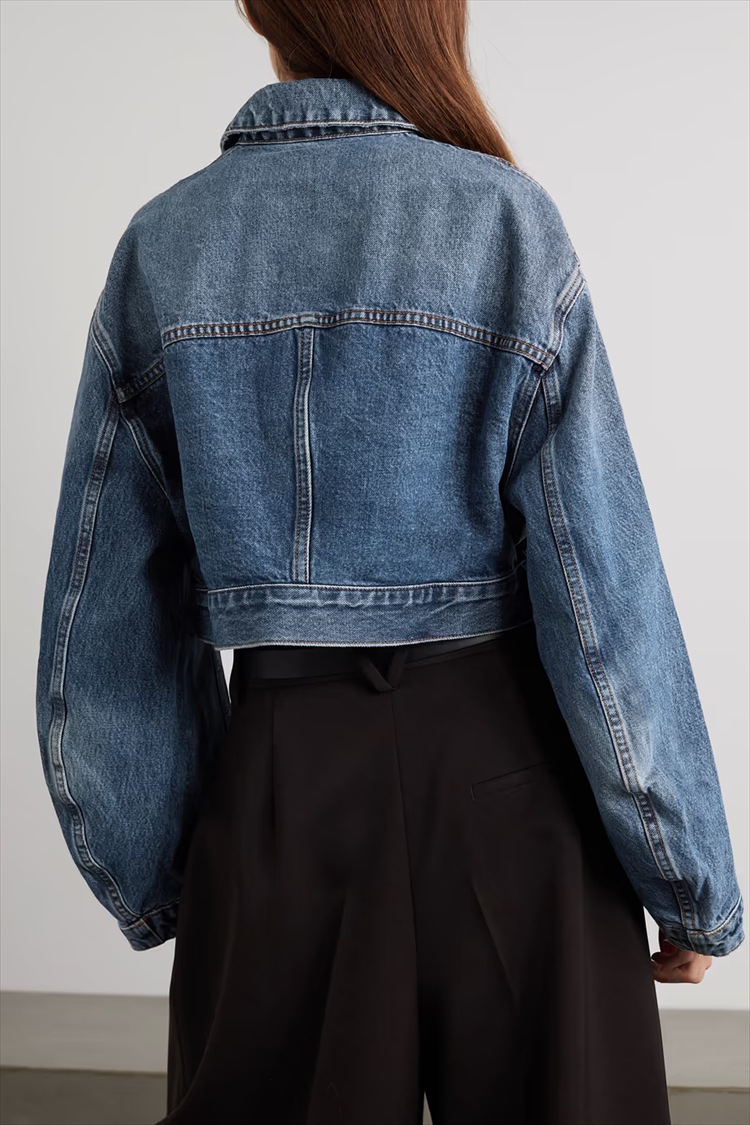 2023 이른 봄 새로운 유럽과 미국 KHAITE 같은 스타일 다크 블루 짧은 긴 소매 데님 재킷 데님 코트 여성스토어 가기