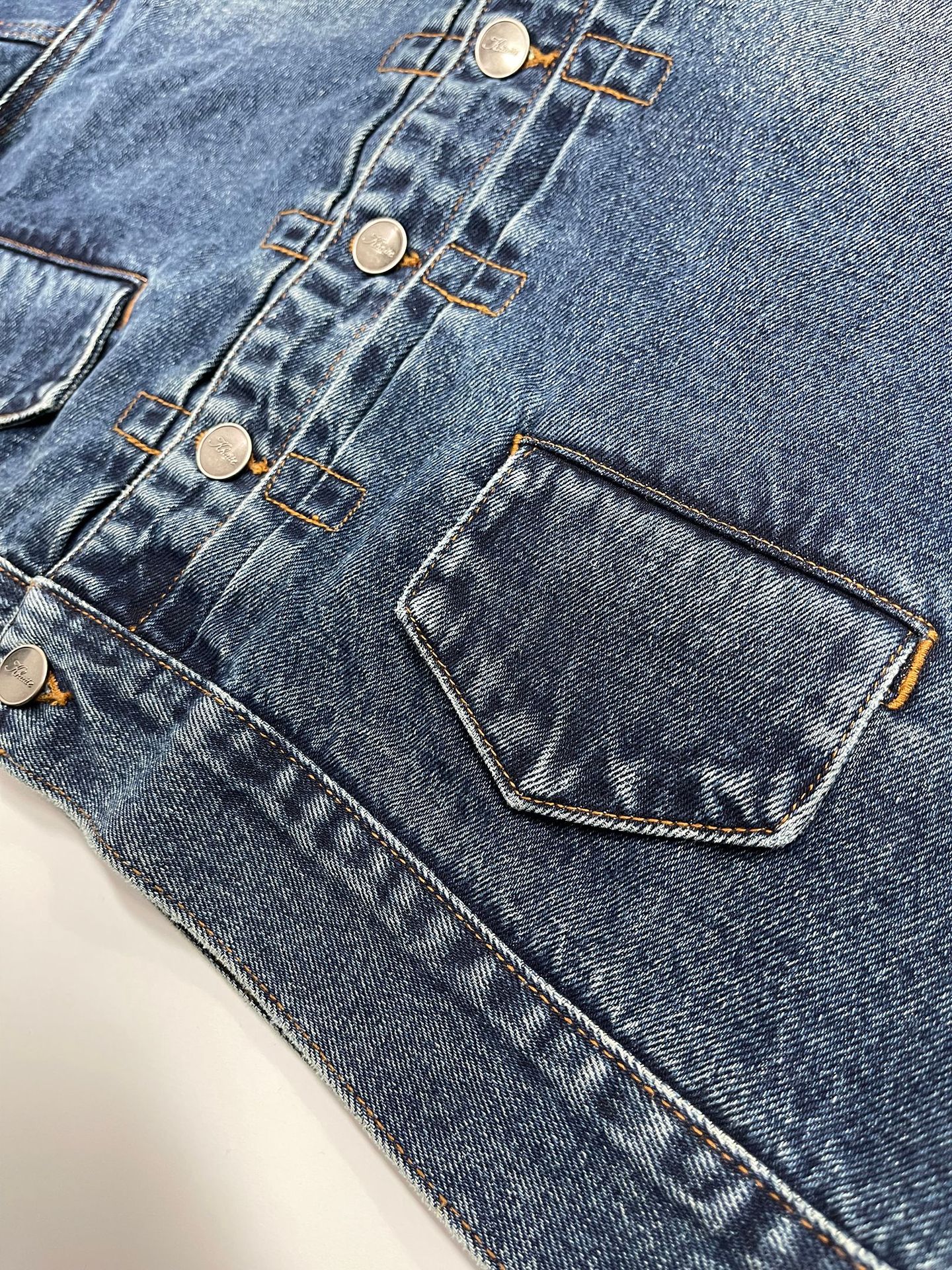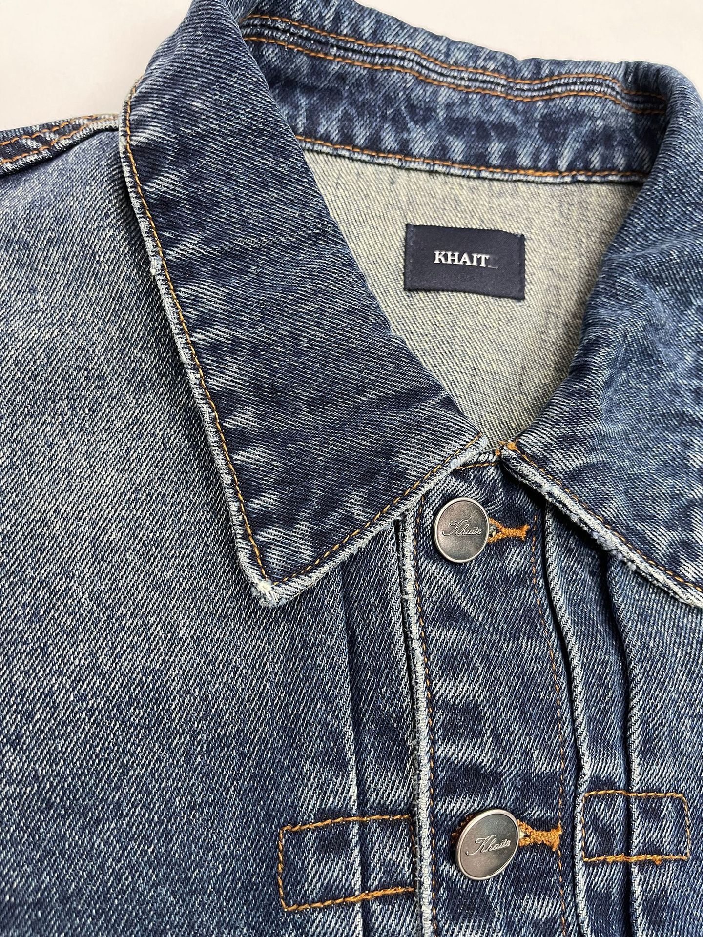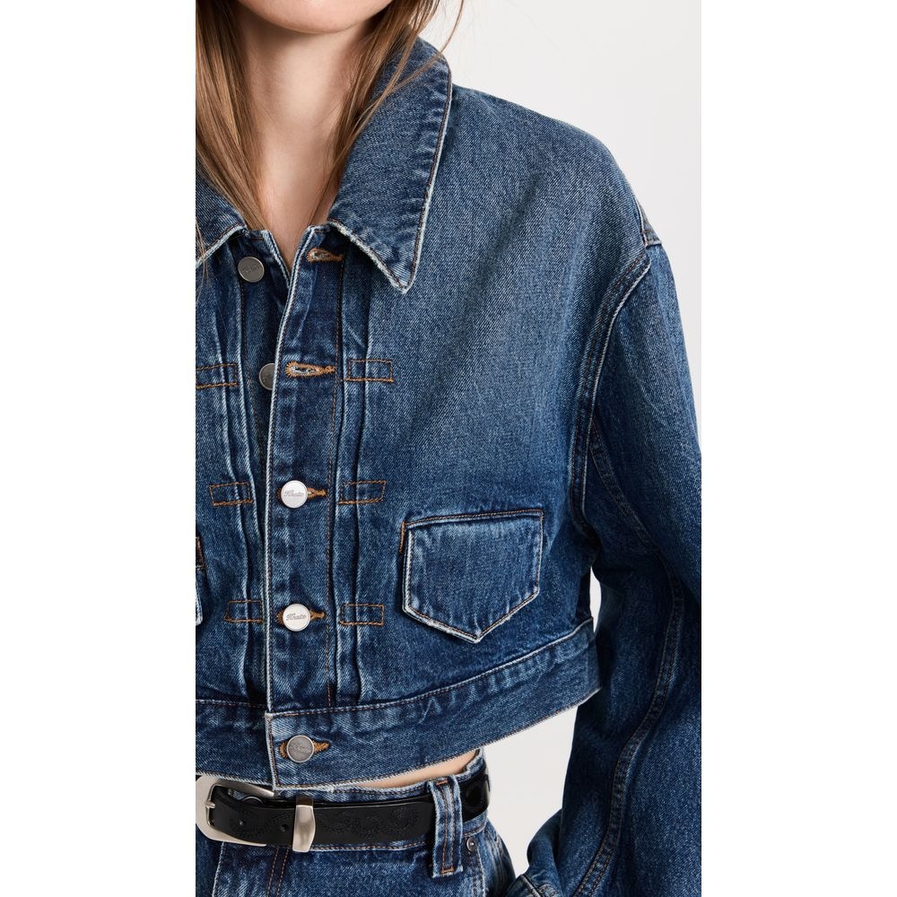 2023 이른 봄 새로운 유럽과 미국 KHAITE 같은 스타일 다크 블루 짧은 긴 소매 데님 재킷 데님 코트 여성스토어 가기